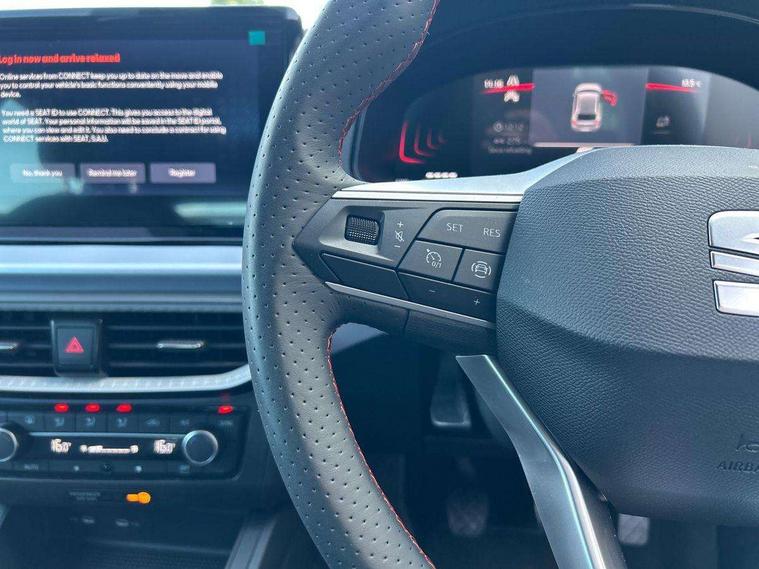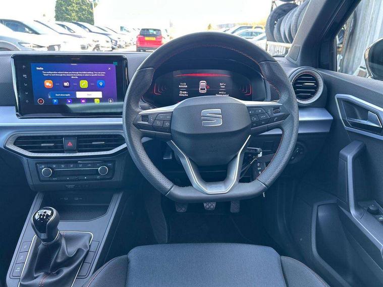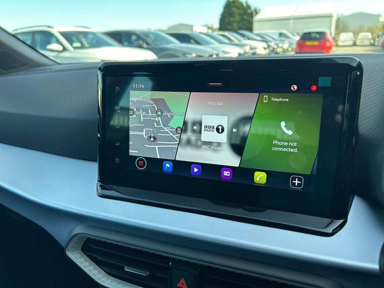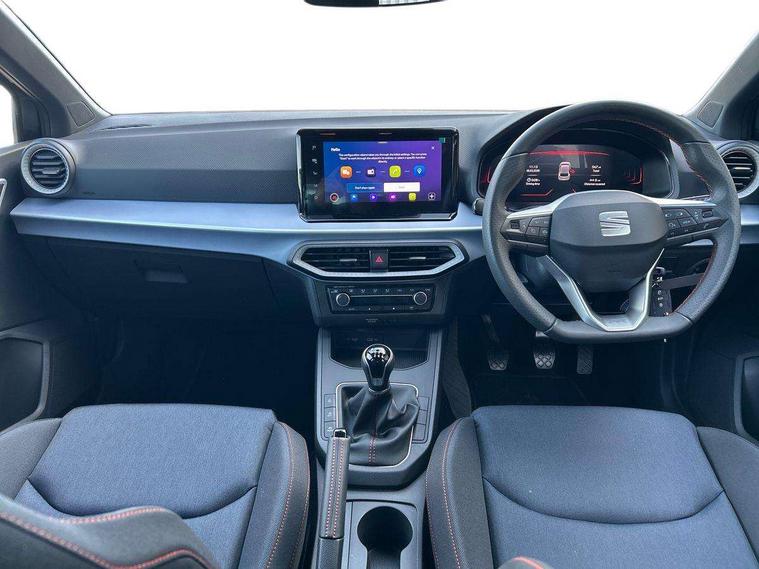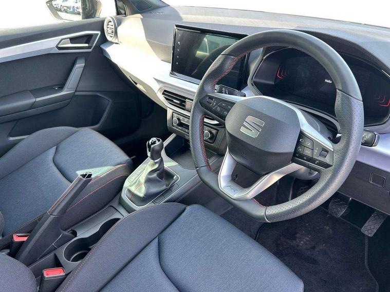 'Lights On' Reminder warning buzzer, 8" Digital cockpit, 9.2" touchscreen navigation system with type C USB socket, Voice control and DAB/AM/FM radio, Auto start and stop system, Bluetooth audio streaming with handsfree system, Digital clock, E-call, Full link smartphone integration with mirror link, wireless apple carplay, Google android auto + USB Type C cable for apple and android devices, Lane assist, Low fuel warning light, Outside temperature gauge, Power Steering, Rear parking sensor, Seat connect plus with safety, service, remote and online, SEAT drive profiles and ECO function, SEAT logo boot release, Speed limiter, Traffic sign recognition, Trip computer, Sports suspension, Auxiliary input socket, Radio/MP3 player, SD card slot, Steering wheel mounted controls, Anti theft roof antenna, Auto dimming rear view mirror, Automatic rain sensing wipers, Black door mirror caps, Body colour bumpers, Body colour door handles, Brilliant black window surrounds, Dark tinted rear windows, Electric adjustable/heated/folding door mirrors, Electric front windows, Electric headlight adjustment, Electric rear windows, Front/rear fog lights, FULL LED automatic headlights with dynamic headlight range control, coming and leaving home, LED daytime running lights, LED 3rd brake light, LED tail lights, Rear roof spoiler with FR twin exhausts, Rear side wing doors, Rear wiper, 3 seat bench in 2nd row, 60/40 split folding rear seat, Ambient interior lighting, Chrome detailing and black headlining, Cloth upholstery, Dual zone climate control with combination filter, Front courtesy lights, Front cupholders x 2, Front reading lights, Gear shift indicator, Glovebox, Height adjustable front and rear headrests (five), Height adjustable front seats, Height/reach adjust steering wheel, Illuminated air vent surrounds, Illuminated boot, Instrument lighting with brightness control, Isofix, Leather multifunction flat bottomed sports steering wheel, Passenger sunvisor, Single front passenger seat, Sports seats, Sunvisors with mirror and driver side card holder, Safety and driving pack (S) - Ibiza, 3 point seatbelts on all 3 rear seats, ABS, Active front headrests, Child locks on rear doors, Electronic stability control, Energy recovery system, Front driver and passenger side airbags with curtain airbag and front passenger airbag deactivation, Hill hold control, Multi-Collision braking, Seat belt reminder for front and rear seats, Tiredness recognition system, Tyre pressure monitoring system, Locking wheel bolts, Perimeter alarm and interior monitoring with backup horn and tow away protection, Remote central locking + deadlocks, 17" Alloy wheels in Brilliant silver,