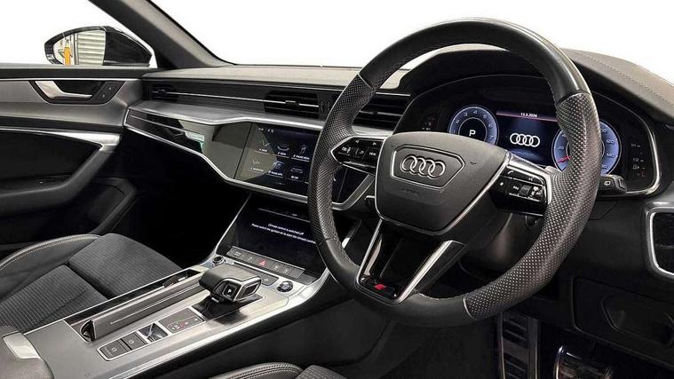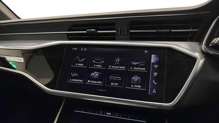 Audi connect safety and service (e-call), Audi connect with Amazon Alexa Integration, Audi drive select, Audi parking system plus - acoustic and visual park assist system for front and rear, Audi virtual cockpit, Automatic start/stop system with coasting functionality, Bluetooth interface, Camera based traffic sign recognition, Lane departure warning system, MMI navigation plus with 10.1" and 8.6" touch screens, Power operated tailgate, Progressive steering, Rear view camera, Service interval indicator, Smartphone interface includes wireless Apple carplay/Android Auto, Voice control system, Sports suspension, Audi front music interface, Audi sound system, Auxiliary input socket, DAB Digital radio, USB connection, Aluminium roof rails, Body colour rear roof spoiler, Body coloured door mirrors, Electric front/rear windows, Electrically adjustable heated and folding + automatically dimming exterior mirrors with memory function, Frameless auto dimming interior rear view mirror, Front intermittent wipers, Heat insulating darkened glass in side and rear windows, Heat insulating glass in windshield, LED rear lights with dynamic indicators, LED signature front daytime running light, LED third brake light, Matrix LED headlights, Matt black rear diffuser with diffuser strip and tailpipes in chrome, Matt black side air intake grille with inlay in matt aluminium, Privacy glass, Radiator grille in anthracite black matt, single frame in chrome and horizontal struts in matt aluminium silver, Rain and light sensors, Rear side wing doors, Rear wiper, 2 zone deluxe electronic climate control, 3 spoke high multi-function perforated leather steering wheel with contrast stitching and shift paddles, 40/20/40 split folding 3 rear seat bench in 3 parts with rear centre armrest, Audi phone box light, Black cloth headlining, Electrically adjustable front seats including seat height, fore/aft position, backrest angle and 4-way lumbar with memory for driver's seat, Front and rear floor mats, Front centre armrest, Front head restraints, Heated front seats, Height/reach adjust steering wheel, Illuminated door sill trims with S logo, Illuminated sun visors with vanity mirrors, Leather gear knob, Luggage compartment system, Rear headrests, Single front passenger seat, Stainless steel pedals and foot rest, Tool kit and car jack, LED Interior Ambient Lighting Pack - A6, Non smoking pack - A6, S line exterior style pack - A6, 3 point seatbelts on all seats, Airbags - Front side, front and rear including head, Audi pre-sense front, EBD - Electronic brakeforce distribution, Electromechanical parking brake, Electronic Stability Control (ESC) including ABS, ASR and EDL, Extended pedestrian protection measures, ISOFIX child seat mounting for front passenger seat and ISOFIX child seat mounting with Top Tether for outer rear seats, Manual child proof rear door locks, Seatbelt monitoring, Tyre pressure warning light, Warning triangle and first aid kit, Anti theft alarm with tow away protection, Anti-theft wheel bolts and wheel loosening detection, Immobiliser, Keyless Go, Remote central locking, Matt brushed aluminium inlays,