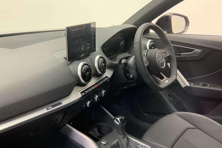 3D map display, Audi connect navigation and infotainment includes innovative services, Audi connect remote and control connects your vehicle to your smartphone, Audi drive select: S tronic - power steering assistance + engine + gearshift (modes: comfort, auto, dynamic, efficiency, individual), Audi smartphone interface - Apple carplay/Android Auto, USB connect, 2xSDXC card readers, voice control for navi, telephone, music and 3rd party apps, Audi virtual cockpit, Automatic start/stop system with recuperation, Bluetooth interface includes bluetooth audio streaming, Camera based traffic sign recognition, Cruise control, Distraction and Fatigue warning, E-call, Jukebox hard drive memory for music (10GB), Lane departure warning, MMI navigation plus with 8.8" touchscreen, Natural voice recognition, Power operated tailgate, Progressive steering, Rear parking sensors, Sport suspension, 6 passive loudspeakers, DAB Digital radio, USB type C port, Audi beam, Auto dimming rear view mirror, Black window trims, Bumper in full body colour paint finish, Electrically adjustable, folding, auto dimming and heated door mirrors with integrated LED side indicators, Front windscreen with grey tinted sunband, LED daytime running lights, LED headlights with dipped beam, high beam, position lights, indicators, LED rear lights, LED third brake light, Privacy glass - dark tinted rear and rear side windows from B-pillar backwards, Rear side wing doors, Rear wiper, Variable front intermittent wipers, Wheel arch trims in manhattan grey, 12V socket in front, 3 seat bench in 2nd row, 3 spoke flat bottomed multi-function leather sport steering wheel with gear shift paddles with S logo, 4-way electric lumbar support for front seats including manual seat height adjustment for both front seats, 60/40 split folding rear seat bench, Black carpets, Black cloth headlining, Front and rear head restraints, Front centre armrest, Front sport seats, Front/rear floor mats, Height/reach adjust steering wheel, Illuminated door sill trims with S logo, ISOFIX child seat mounting in front passenger and rear outer seats, Manual air conditioning, Single front passenger seat, Stainless steel pedals, Black styling pack - Q2, 3x3 point rear seatbelts, 6 airbags - Front, curtain and front side airbags, Electromechanical parking brake, Electronic stabilisation control including ABS, ASR and EDL, Front passenger airbag deactivation, Hill hold assist, Pre-sense front with pedestrian recognition, Seatbelt monitoring, Tyre pressure warning light with visual and acoustic warning, Warning triangle and first aid kit, Anti theft wheel bolts, Electronically operated child locks, Remote central door locking, Thatcham category 1 alarm, Aluminium interior element, Black dashboard, Gloss black centre console, Matt brushed aluminium trim inlays, Tool kit,