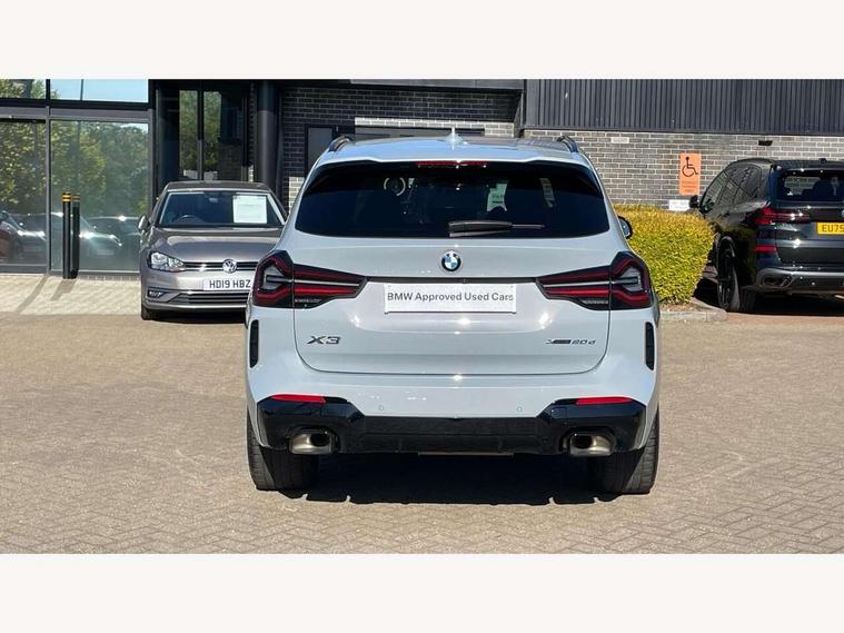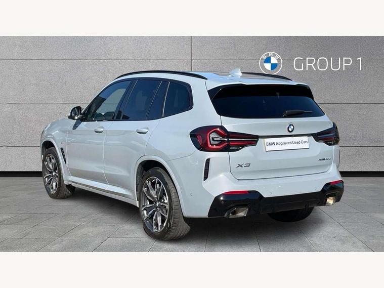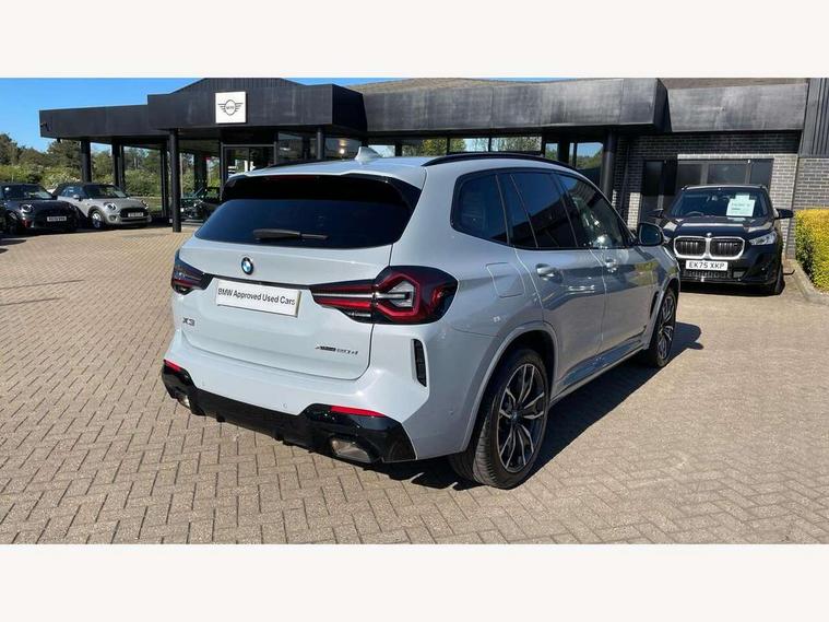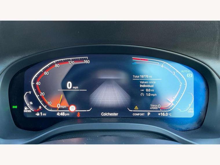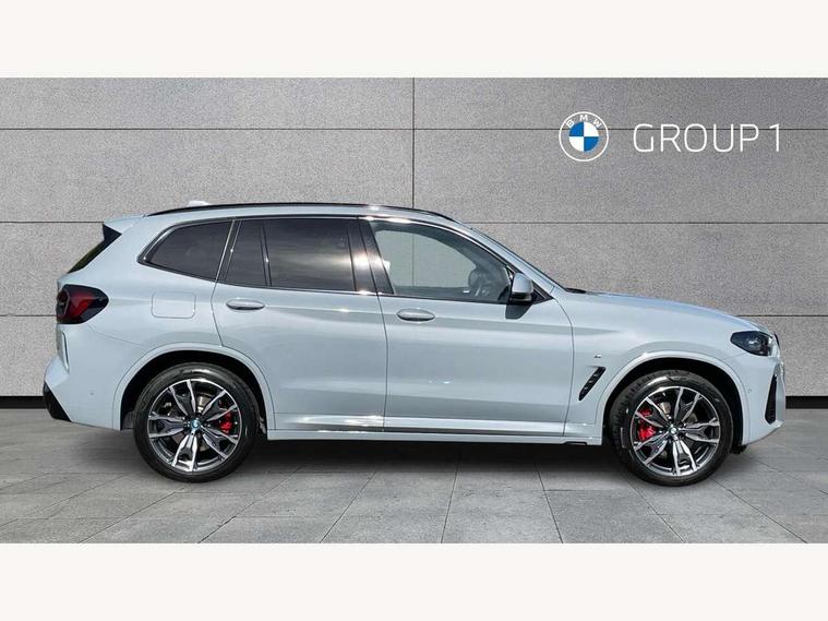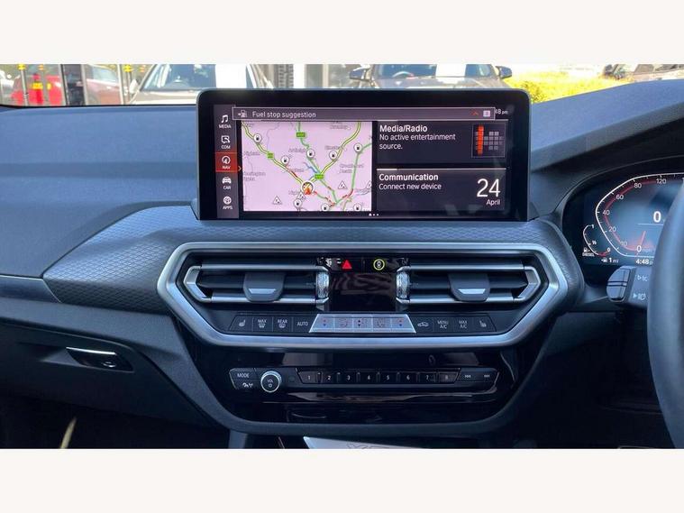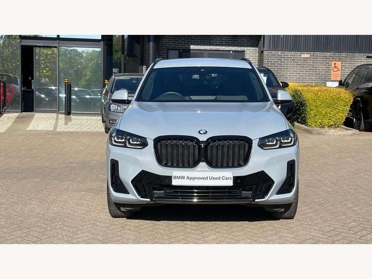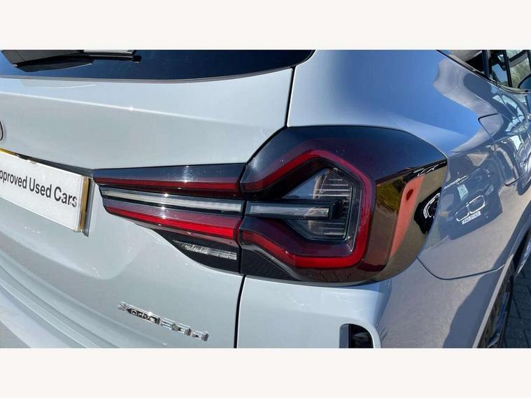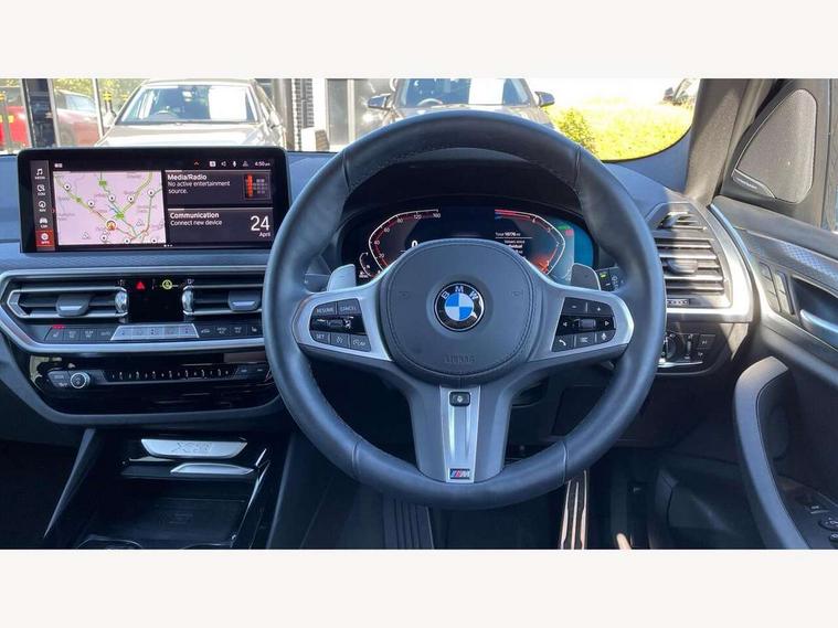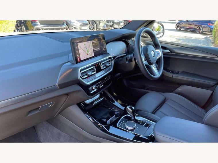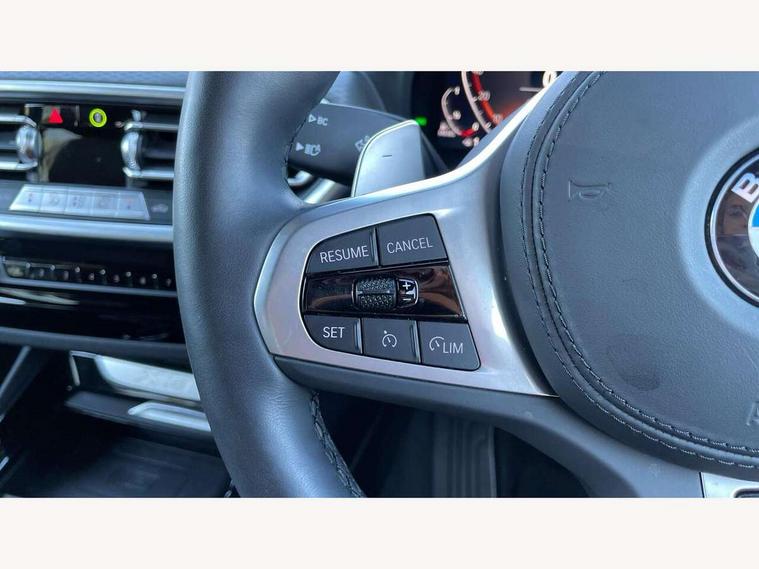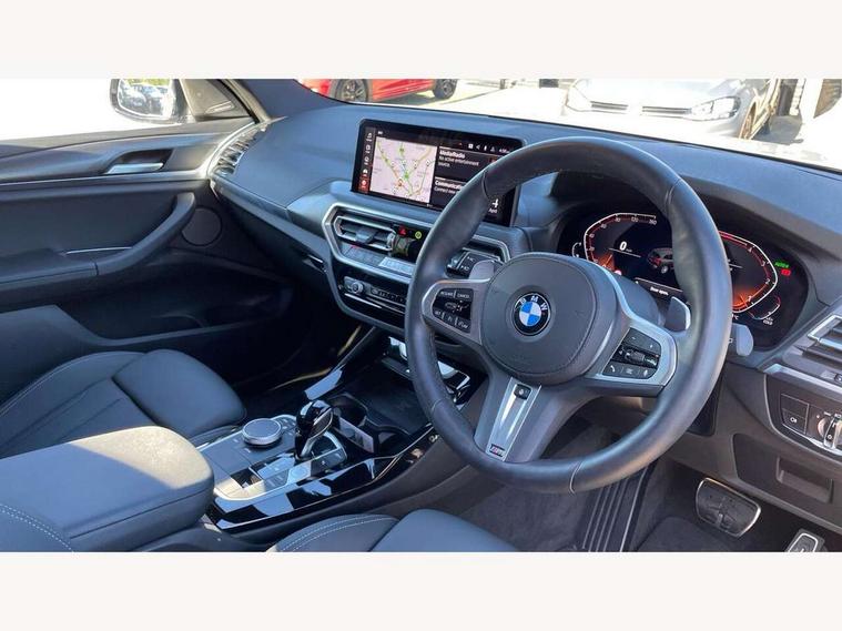Active Guard, Attentiveness assist, BMW Live Cockpit Professional nav system including 12.3" instrument display + 12.3 high resolution control display, BMW Online services, BMW Teleservices, Brake pad wear indicator in front and rear, Check Control warning system for monitoring of lights and door/luggage compartment open warning, Condition based service - BMW service history, electronic service booklet, integrated owner's handbook, Connected drive services, Electric boot lid, Front/rear Parking distance control, iDrive touch controller with 8 favourite buttons, Instrument cluster with speedometer with mph readout, tachometer, fuel gauge and oil temperature gauge, Lights on warning by audio warning signal when ignition is switched off, Oil sensor for level and grade, warning by check control system, On board computer - average speed+fuel consumption, service interval, clock/date, odometer/trip meter, outside temperature display and ice warning, Optimum shift indicator, Personal Profile - automatic lock when driving away selectable, Run flat indicator, Stop/start system, Variable sports power steering with drive performance control Sport+ mode, Automatic transmission with gearshift paddles, Diesel particulate filter, Incorrect fuelling protection, Larger capacity fuel tank, M sport suspension, Multi-link rear suspension, BMW professional radio/CD/MP3, DAB tuner, Acoustic glazing, Automatic windscreen wipers and automatic headlight, Black finish on B pillars, Body colour door handles, Body colour electric adjust heated aspherical door mirrors, Body colour roof mouldings, Body coloured bumpers, Direction indicator, side repeaters, integrated in exterior mirrors, Dynamic brake lights, Exhaust tailpipes - dual, round, split left and right with chrome finisher, Fingertip control / anti-trap function on electric window, Folding wing mirrors with auto dimming, Follow me home headlights, Front and rear bumper system with replaceable deformation elements, Front and rear electric windows, Gloss chrome tailpipes finishers, Green tinted heat insulating glass, Heated windscreen washer jets, High beam assistant, High gloss black shadow line roof rails, High gloss shadowline exterior trim in decorative moulding side frame/recess cover/guide rail/B, C pillars/mirror frame and triangle with mirror base, High level 3rd brake light incorporating LED Technology, Interior rear view electrochromatic mirror with automatic anti dazzle function, LED tail lights, Lightweight engineering, M aerodynamic bodystyling, M Sport entry door sill strips, Model designation, Rain sensor, Rear side wing doors, Rear wing door, Rear wiper, Shark fin antenna, Side exterior M designation badges, Visible VIN plate, Welcome lighting, Windscreen wipers with adjustable interval, 12V power point in luggage area, 12V power socket in front centre console, 2 x USB Type C ports for charging and data transmission (front centre console) and 2 x USB Type C ports for charging (rear centre console), 3 rear headrests, 3 seat bench in 2nd row, 3 zone automatic air conditioning, 4 lashing points to secure luggage, 40:20:40 split folding rear seat with loading system, Ambient lighting, Anthracite headlining, Automatic interior light when door is opened/ignition switched off or via remote key, Floor mats in velour, Foldable storage floor with compartment, Four grab handles integrated in roof lining, Front and rear bottle holders integrated into door trim storage compartments, Front and rear side armrests integrated into door trim, Front centre armrest with storage compartment, Front footwell lights, Front head restraints, Front passenger seat, Front sports seats, Front/rear courtesy lights with soft on/off dimming, Front/rear reading lights, Heated front seats, Isofix rear child seat preparation, Leather gear knob, Lockable glove compartment, Luggage area underfloor compartment, Luggage compartment lighting, M sport leather steering wheel, Multifunction steering wheel, Parcel shelf removeable and storable under boot floor, Reach and rake adjustable steering column, Rear centre armrest with 2 cupholders, Removable / retractable luggage cover, Slope adjustable rear seats, Storage compartment in rear centre console and front/rear door trims, Sun visors with vanity mirrors and ticket pocket, Toolkit located in luggage compartment, Two front cupholders with removable oddments tray/lid, Connected pro pack - X3, ADB - Automatic Differential Brake, Anti-lock braking system (ABS) with brake assist, Automatic Stability Control (ASC), Battery safety cut-off, BMW emergency call, Brake drying, Brake energy regeneration, Braking pre-tensioning, Child locks on rear doors, Cornering brake control (CBC), Crash Sensor - activation of central locking release, hazard warning light and interior lighting, Deactivation of fuel pump in the event of a crash, Driver and front passenger front and side airbags with passenger deactivation and ITS front and rear head airbags, Driver and front passenger knee airbag, DSC+, Dynamic brake control, Dynamic Traction Control - DTC, Electromechanical parking brake, Hill descent control, Hill start assist, Seatbelt security check for front seats, Side impact protection, Three point seatbelts to all seats with front and outer rear pyrotechnic belt tensioners and seat belt force limiters, Two tone horn, Tyre pressure sensor, Ventilated front and rear disc brakes, Warning triangle and first aid kit, Central locking switch for all doors, fuel filler cap and luggage compartment, Electronic engine immobiliser, Locking wheel nuts, Remote control including two integrated key - one button for open/close all lockable content, windows and separate button for open luggage compartment, Remote control Thatcham category 1 alarm, Start/stop button with Comfort Go keyless engine start and auto Start/stop deactivation button, Low rolling resistance tyres,