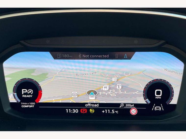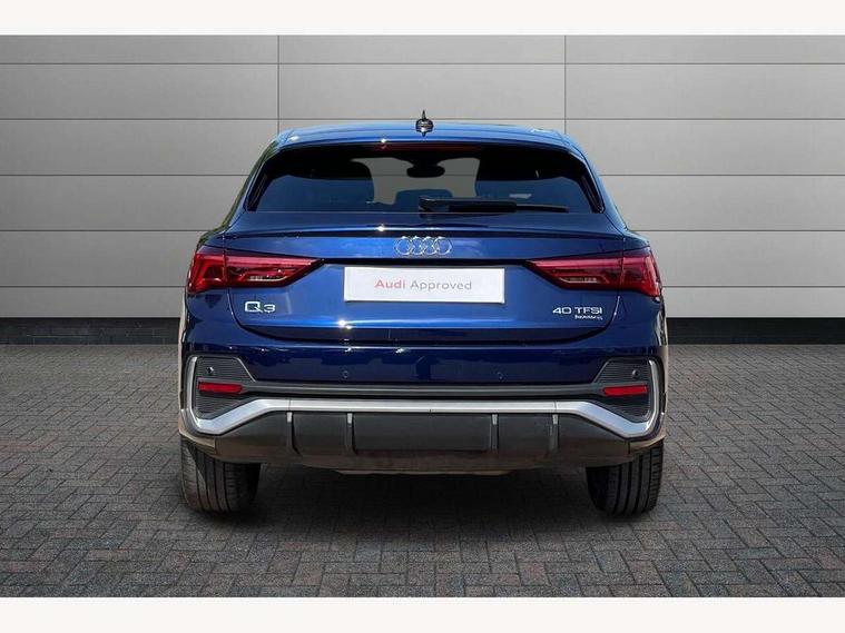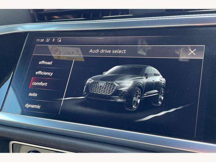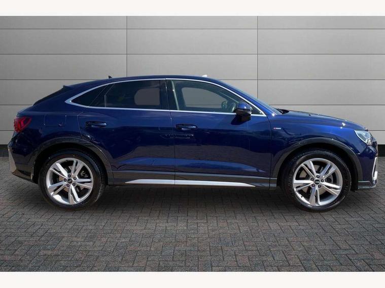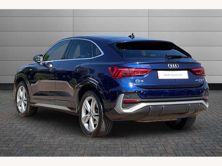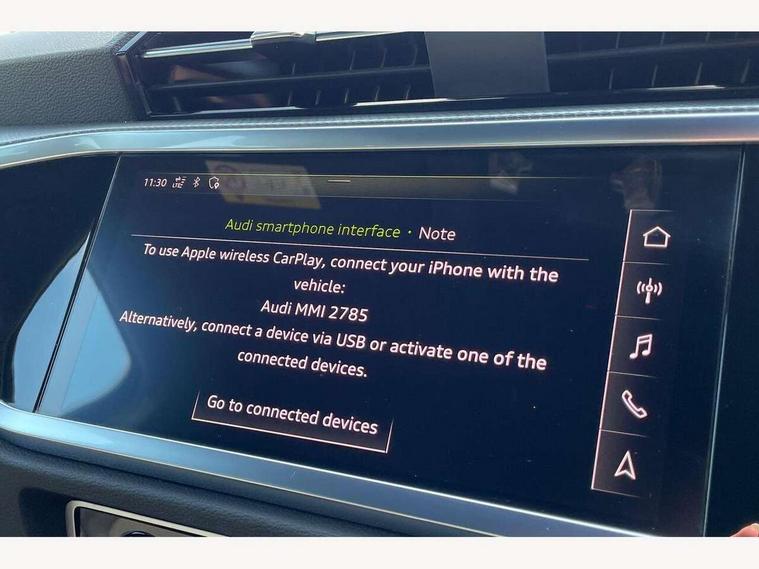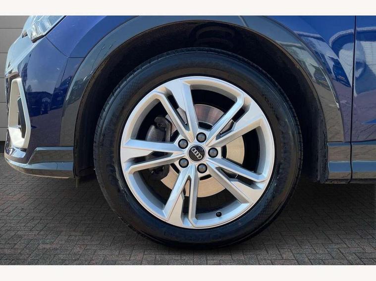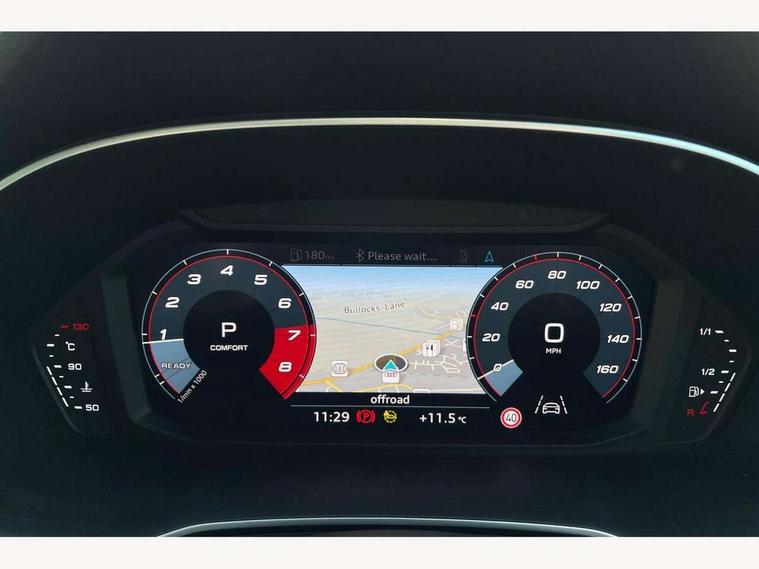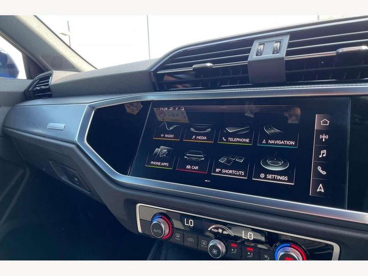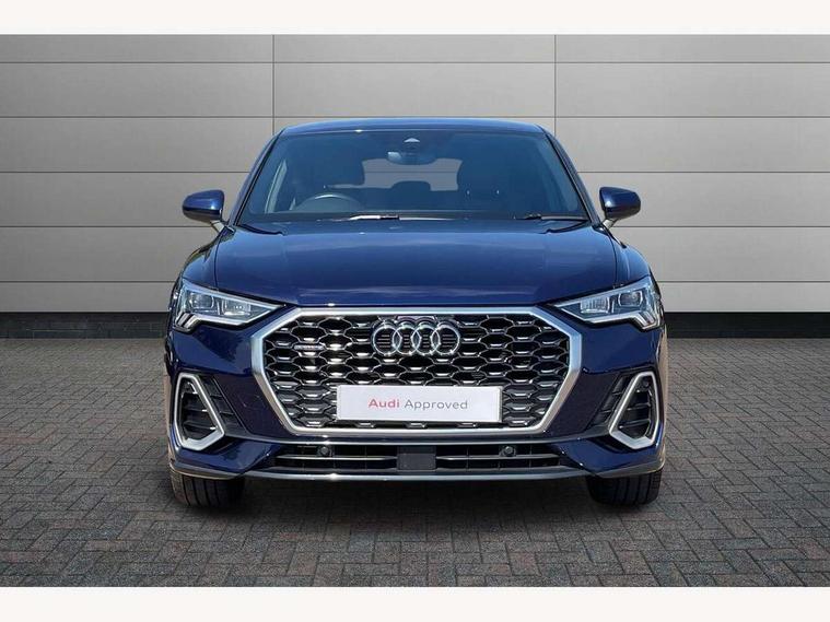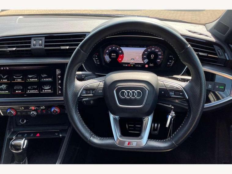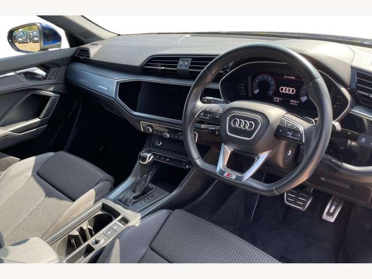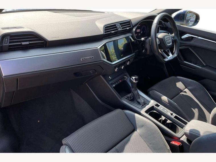 Audi connect safety and service (e-call), Audi drive select, Audi lane departure warning, Audi side assist, Audi Virtual Cockpit - 10.25" display, Bluetooth interface, Camera based traffic sign recognition, Cruise control + speed limiter, MMI Navigation Plus with high resolution 10.1 inch touchscreen colour display, Power operated tailgate, Progressive steering, Rear parking sensors, Service interval indicator, Smartphone interface includes wireless Apple carplay/Android Auto, Start stop system with recuperation, Voice control system with natural language interaction, Sports suspension, 2 USB-C ports with charge and data functions, 6 passive loudspeakers, DAB digital radio module, Acoustic windscreen, Aluminium window trim, Auto dimming frameless rear view mirror, Diffuser grille in grained matt black, Diffuser trim in selenite silver, Electrically folding, adjustable and heated door mirrors with integrated LED side indicators and kerb view function for passenger side, Front and rear electric windows, Front fog lights, Front side air inlets in selenite silver, Front underbody protection in manhattan grey paint finish, Grille surround in aluminium silver matt, High gloss black finish B and C pillars, LED headlights with LED daytime running lights and dynamic rear indicator, LED rear lights, Privacy glass dark tinted rear and rear-side windows (from B-pillar backwards), Radiator grille in titanium black with inlay in matt aluminium silver, Rain and light sensors, Rear underbody protection in matt black, S line badges on front wings, Side skirt insert in matt Platinium grey, 12V socket in rear centre console, 40:20:40 folding with manual adjustment for 60:40 forwards/backwards position and backrest angle, Adjustable rear seat bench/backrest with centre armrest and cupholder, Black cloth headlining, Dual zone electronic climate control, Front and rear black floor mats with contrast stitching, Front and rear headrests, Front and rear roof module including reading lights, Front centre armrest, Glove compartment lighting, Height and reach adjustable steering wheel, Illuminated door sill trims with S logo, ISOFIX child seat mounting for front passenger with airbag deactivation and outer rear seat including top tether attachment point for outer rear seats, Luggage compartment light, Manual front seats with height adjustment, Perforated leather gearknob, Stainless steel luggage compartment sill finisher, Stainless steel pedals, Non smoking pack - Q3, 3x3 point rear seatbelts, 6 airbags - Driver, front passenger, curtain and side windows, Audi pre-sense front with pedestrain and cyclist recognition, Electrically operated child locks on rear doors, Electromechanical parking brake, Electronic stabilisation control including ABS, ASR and EDL, Hill descent control, Hill hold assist, Pre sense basic, Seatbelt monitoring, Tyre pressure warning, Warning triangle and first aid kit, Anti theft alarm, Anti theft wheel bolts, Remote central locking, Black dashboard, Dark matt brushed aluminium inlay, Detail dashboard around MMI touch colour display in glass look, black with surround in aluminium look, Leatherette door armrest,