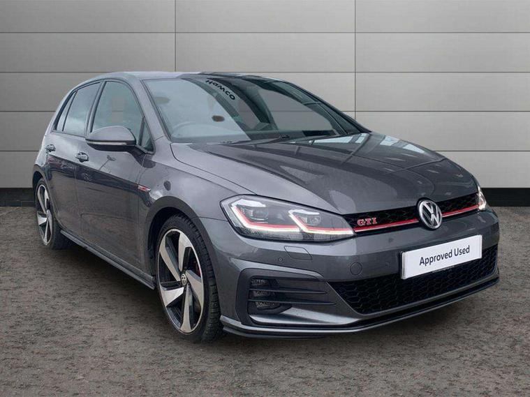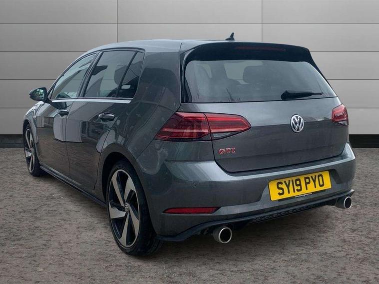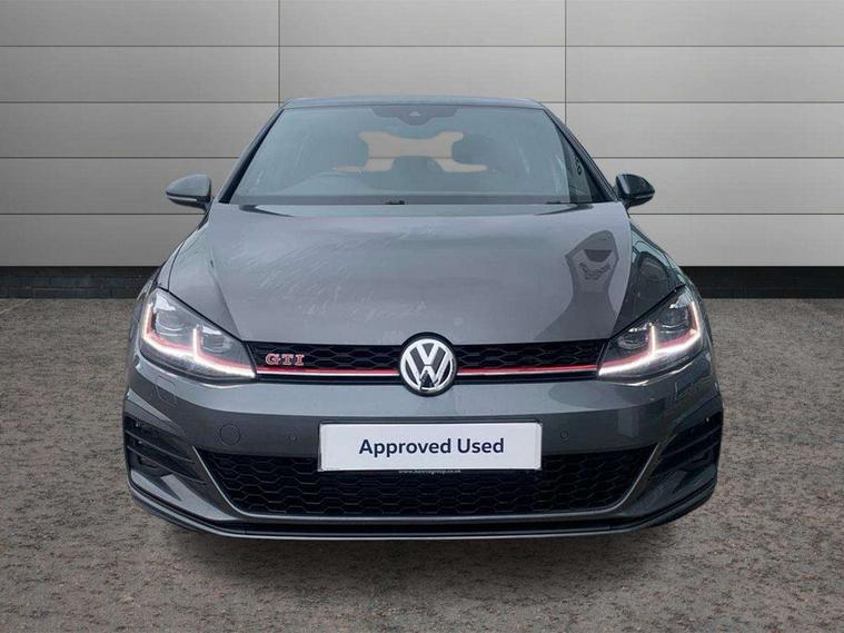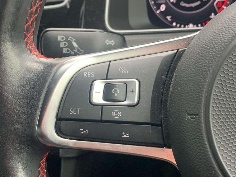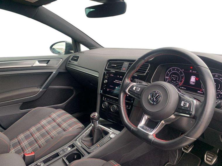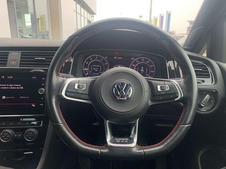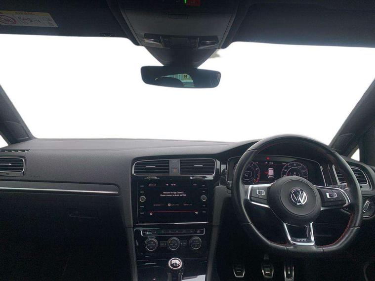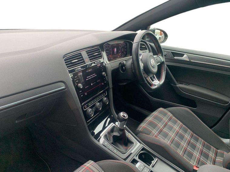 'Lights On' Reminder warning buzzer, ACC - Adaptive cruise control with front assist, forward collision warning, distance monitoring, city emergency brake and speed limiter, Bluetooth telephone and audio connection for compatible devices, Brake pad wear indicator warning light, Driver alert system, Driver profile selection, Driving Mode Selection with four preset modes - Eco, normal, sport or individual modes, Instrument cluster in white, Lane assist with dynamic light assist and traffic sign recognition, Multifunction computer with visual gear change recommendation for fuel consumption, Power assisted speed sensitive electro-mechanical steering, Push tank flap, Rear view camera, Speedo, rev counter, electronic odometer, trip, service interval display, exterior temperature and fuel gauge, Stop/start system, Warning buzzer and light for front seatbelts unfastened, Battery regeneration during braking, Limited slip differential, Lowered sports suspension, XDS electronic differential lock, Composition media system, DAB Digital radio receiver, MP3/WMA compatability, Multi device interface (MDI) with USB connection, Premium USB cable in choice of either Apple or Android smartphone compatibility, SD card slot, SMS Functionality, USB and SD card connectivity, Volkswagen media control, 3D-LED tinted rear light clusters with indicator sweep function, Black rear diffuser, Body colour door handles, Body colour door mirrors with integrated indicators, Body colour rear roof spoiler, Body colour sports bumpers, Dusk sensor + automatic driving lights, Electric front windows, Electric rear windows, Electrically adjustable and heated door mirrors, Fully galvanised body, GTI logo in red on front and back, GTI logo lettering on front wings on right and left, Heated rear windscreen, High level 3rd brake light incorporating LED Technology, Honeycomb radiator grille - black, LED daytime running lights, LED front fog lights with static cornering light function, LED headlights with dynamic light assist, Rear fog lamp, Rear window aerial, Rear window wash/wipe with intermittent wipe, Reflectors in all doors, Shiny black aerofoil downside, Sill extensions, Twin exhaust tailpipe, Windscreen wipers/ intermittent wipe + 4 position delay, 12V socket in luggage compartment, 3 rear headrests, 4 load lashing points in luggage compartment, 60/40 split folding rear seat backrest, Bag hook in luggage compartment x 2, Black headlining, Climate control - 2 zone electronic air conditioning with automatic air recirculation and allergy filter, Cooled glovebox, Dust/pollen filter, Front + rear carpet mats, Front centre armrest with storage compartment and two rear air vents, Front seat back storage pockets, Grab handles front x 2, rear x 2 with integrated coat hooks, Height and reach adjustable steering wheel, Illuminated door sills, Illuminated vanity mirrors, Instrument lighting white adjustable panel illumination, Interior light delay, Isofix preparation for 2 rear child seats, Leather gear knob and handbrake grip, Load through provision with rear centre armrest and cupholders x2, Luggage compartment lighting, Multifunction leather steering wheel with GTI logo and selector lever boot grip with red stitching, Overhead storage box, Stainless steel pedals, Storage box in luggage compartment, Storage compartment in roof console with cover, Storage compartments in front doors, Storage compartments in rear doors, Stowable luggage compartment cover, Sun visors, Variable boot floor, height adjustable and removable, Ambient lighting pack - Golf, Convenience Pack - Golf, Light and Sight pack - Golf, Mirror pack - Golf, 3 rear three point seatbelts, Airbags - Driver's and front passenger's, curtain airbag, Driver's knee, front side impact and passenger's airbag deactivation switch, Anti-lock Braking System (ABS) with Hydraulic Brake Assist (HBA), Automatic post collision braking system, Child locks on rear doors, Driver/Passenger optimised head restraints, Electronic parking brake with auto hold, Electronic stability control (ESC) including Electronic differential lock (EDL) and ASR (Traction control) with deactivation via infotainment system, Front ventilated disc brakes and rear disc brakes, Pre crash preventive occupant protection, Red brake calipers, Three point height adjustable front seatbelts with tensioners, Tyre pressure loss indicator, Alarm with interior protection and deactivation via infotainment system, Electronic engine immobiliser, Keyless entry with start/stop button on centre console, Remote central locking with 2 remote folding keys, Chrome plated air vent surround, Chrome plated electric mirror adjustment light switch surround, Honeycomb black decorative inserts, Piano black centre console, Steel space saver spare wheel,
