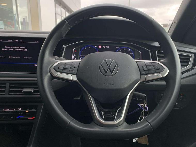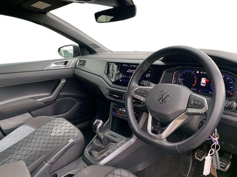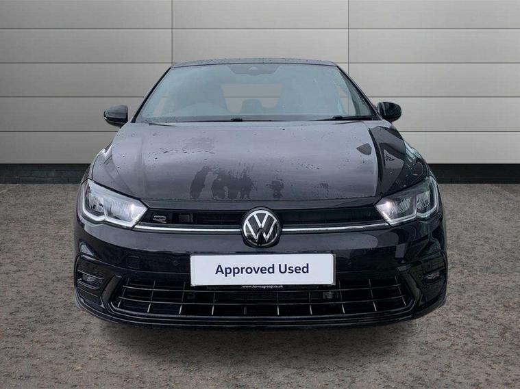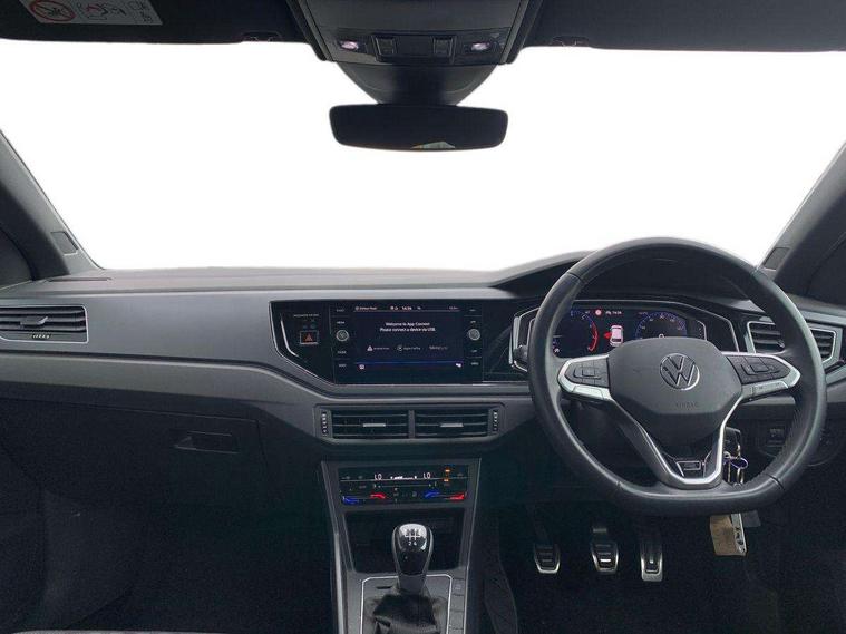 Adaptive cruise control without follow-to-stop and speed limiter, Bluetooth mobile phone interface, Digital Cockpit Pro with 10.25" Display, Driver alert system, Dynamic road sign display, Emergency call service, Power assisted speed sensitive steering, Preparation for We connect and We connect plus, Speedo and rev counter, electronic odometer, trip, service interval display and fuel gauge, Standard rear axle, Travel Assist - Lane keeping system and traffic jam assist, Travel assist including emergency assist, Trip computer, Warning signal and warning light for front and rear seatbelts not fastened, Washer fluid level indicator, Wireless app connect, Front wheel drive, Rear shock absorpion, Start-stop system with battery regeneration (recuperation - energy recovery during braking), DAB Digital radio, Diversity antenna for FM reception, Front and rear 6 speakers, Body colour bumpers, Body colour door handles, Body colour door mirrors, Electric front windows, Front scuff plates with R-Line logo, Heat insulating darkened glass in side and rear windows, Heat insulating glass windscreen, Power folding adjustable/heated exterior mirrors and front passenger exterior mirror lowering function, Rear electric windows, Rear fog light, Rear side wing doors, Rear tinted glass from B-pillar backwards approx 65% tinted, Rear windscreen washer and wiper with interval delay, Third brake light, 12V power socket in centre console, 2 USB-C ports in the front, 2 USB-C charging sockets on the center console in the rear, 3 rear head restraints, 60/40 split folding rear seat and rear seat bench not split, Air care climatronic air conditoning system with active combination filter and 2-zone temperature control, Black roof lining, Ceramique headliner, Chrome plated radiator grille inserts, air vent surrounds and light switch surrounds, Door and side trim panel, Driver and front passenger seat height adjustment, Driver/passenger sunvisors with illuminated vanity mirrors, Front + rear carpet mats, Front centre armrest, Front footwell illumination, Front seat backrest storage pockets, Front sports comfort seats, Handbrake lever handle in leather, Isofix child seat preparation easy-fit (for two outer rear seats, and front passenger seat) compatible with I-size, Karoso artvelours cloth upholstery, Leather trimmed gear knob, LED interior light with switch off delay and dimmer, 2 reading lights front and rear, Luggage compartment cover, Luggage compartment floor, Luggage compartment lighting, Lumbar adjustment for front seats, Multifunction steering wheel, Single front passenger seat, Stainless steel pedals, Standard pedal cluster, Light and sight pack - Polo R-Line/Black Edition, 3 point height adj front seatbelts + pretensioners, 3x3 point rear seatbelts, ABS, Driver and front passenger airbag with front passenger airbag deactivation, Drivers and front passengers safety optimised head restraints, ESC (Electronic stability control) + EDL (Electronic Differntial lock) and ASR (Traction control), Extended and predictive pedestrian/ cyclist protection, Front curtain and side airbags with center airbag, Hill hold control, Manual child lock in rear doors, Single tone horn, Tyre pressure loss indicator, Alarm with interior protection, Anti-theft alarm system with interior monitoring, backup horn, and towing protection, Anti-theft wheel bolts, Electronic engine immobiliser, Chrome applications on rotary light, mirror adjustment, window regulator switches, outlet with frame in black, Dark grey anodised matt decorative inserts in dash and front door panels, Low rolling resistance tyres,