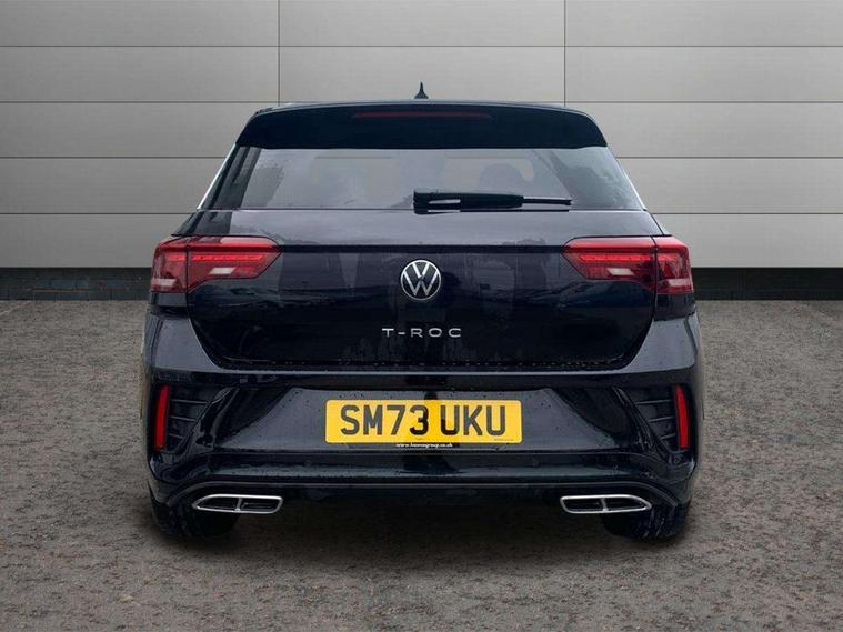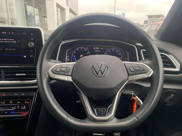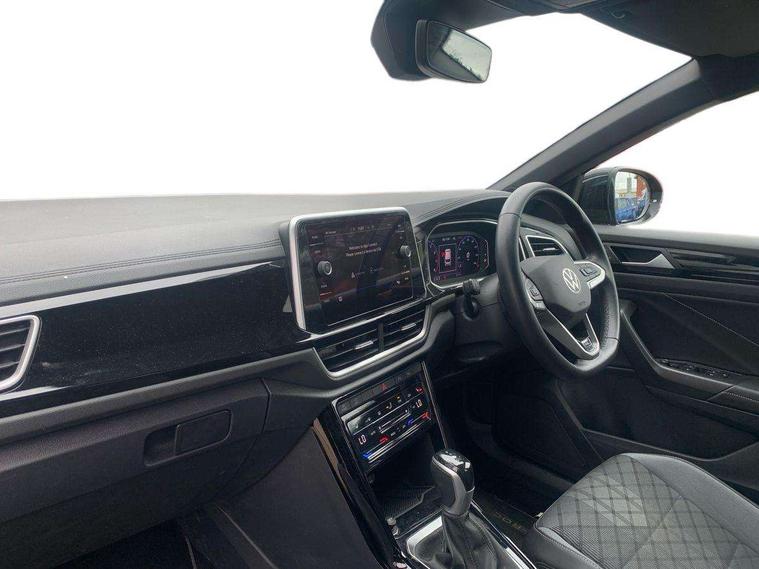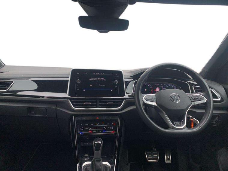 10.25" Digital cockpit pro, Advanced driver attention and drowsiness monitor, Bluetooth mobile phone interface, Emergency call service, Lane keeping system Lane Assist, Modified key software - reduce switch off time for key status change to Long no motion, Online services, Park assist including front and rear parking sensors, Service interval indicator, Tailgate/trunk lid release from outside, Think blue trainer driver tips and journey analysis, Warning sound and light for front seatbelts unfastened, Wireless app connect, Battery regeneration during braking, Start/stop function with battery regeneration, Diversity antenna for FM reception, Music playback - MP3, WMA and AAC files, Premium USB cable in choice of either Apple or Android smartphone compatibility, SD card slot, Simultaneous pairing of 2 compatible mobile devices, Title and cover art display, We Connect and We Connect Plus functionality, 3rd brake light, Auto dimming interior rear view mirror, Automatic hazard lights activation under emergency braking, Automatic headlight control with LED separate daytime running lights with coming/leaving home function, Electrically adjustable and heated door mirrors, Extended roof spoiler, Exterior mirrors aspherical on driver side, convex on front passenger side, External USB type C socket and charging sockets, Front windscreen wiper with intermittent wipe and 4 position delay, Heated rear window, LED rear combination lamps, LED rear number plate lights, Power windows with comfort operation and circuit breaker, R-Line design body coloured bumpers, Rain sensor, Rear exhaust tailpipe, Rear fog light on one side and reversing lights on both sides, Rear side wing doors, Rear wash/wipe with intermittent wipe setting, Remote electrically foldable door mirrors, puddle lights and reverse activated passenger's door mirror, 12V power socket in centre console, 3 rear head restraints, 3 seat bench in 2nd row, 4 load lashing points in luggage compartment, Air care climatronic air conditoning system with active combination filter and 2-zone temperature control, Black roof lining, Chrome plated radiator grille inserts, air vent surrounds and light switch surrounds, Door and side trim panel with leatherette insert, Front + rear carpet mats, Front centre armrest, Front cupholders x 2, Front footwell illumination, Front reading light, Front scuff plates with R Line logo, Front seat back storage pockets, Glove compartment door with light, Instrument lighting, white adjustable panel illumination, Interior ambient lighting and surround lighting, Interior light delay, Isofix child seat preparation, Leather gearshift handle, Load-through provision with cup holder when folded down ('Unsplit rear seat bench, split folding backrest, with centre armrest), Luggage compartment lighting, Single front passenger seat, Stainless steel pedals, Storage compartment in left and right luggage area, Storage compartment in rear doors, Storage compartments in driver and front passenger doors, Sunvisors with illuminated vanity mirrors, Variable boot floor, height adjustable and removable, Driver assistance pack without proactive passenger protection - T-Roc, 3 point height adj front seatbelts + pretensioners, 3 point seatbelts in outer rear with ECE label, ABS, Child locks on rear doors, City emergency braking and pedestrian monitoring, Driver and front passenger airbag with front passenger airbag deactivation, Driver and front passenger safety-optimised head restraints, Drivers seatbelt reminder, Electronic parking brake, Electronic Stability Control (ESC) inc EDL (Electronic Differential Lock) and ASR (Traction Control), Front and rear passengers curtain airbag system including front side airbags, Hill start assist, Predictive pedestrian protection, Rear disc brakes, Two tone horn, Tyre pressure loss indicator, Volkswagen roadside assistance, Anti-theft alarm system with interior monitoring, backup horn, and towing protection, Remote central locking with SAFELOCK, radio remote control with 2 remote control folding keys, Trims for alloy wheels,