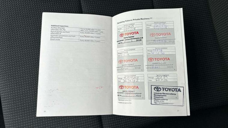 Adaptive cruise control, Bluetooth system, Electric boot release, Electric power steering, Front and rear parking sensors, Lane departure warning system, Rear parking camera, Touch 2 touchscreen satelite navigation + CD/Radio/MP3 player/ipod connectivity, Traffic sign recognition, Trip computer, Vehicle Stability Control (VSC), 6 speakers, Auxiliary socket for external MP3 player, DAB audio, Multimedia System, Steering wheel mounted audio controls, USB connection, Auto dimming interior mirror, Auto high beam, Automatic headlamp levelling, Automatic headlights, Automatic rain sensing wipers, Black front grille, Body colour door handles, Body colour door mirrors, Chrome strip on lower grille, Chrome trim to front bumper, Chromed back door plate, Dusk sensitive headlamps, Electric adjustable heated door mirrors, Electric windows + anti trap protection + one touch open/close drivers side, Follow me home headlights, Front and rear underruns, Front fog lights, Heated rear window, LED daytime running lights, LED Headlights, Privacy glass, Rear screen wiper - intermittent, Rear spoiler, Retractable door mirrors, 3 rear headrests, 3 spoke steering wheel, 3 x 12V power sockets, 60/40 split fold rear seat back, Assist grips, Cargo net, Chrome inner door handles, Coat hooks, Cupholders, Driver/passenger sunvisors and vanity mirrors, Dual zone climate control, Folding rear centre armrest, Footwell lights, Front centre armrest, Front seat and rear pockets, Glovebox, Height adjustable driver's seat, Illuminated entry system, Isofix child seat preparation, Leather door trim, Leather gear knob, Leather parking brake handle, Leather steering wheel, Luggage area lamp, Reach + rake adjustable steering column, Reclining rear seats, Sekkei cloth upholstery, Sliding centre console box, Sliding front seats, Sports seats, Tonneau cover, 3x3 point rear seatbelts, ABS/EBD, Active headrests, Brake assist function, Child proof door locks, Collision mitigation braking system, Driver/Front Passenger airbags, Driver/front passenger side airbags, Drivers knee airbag, Front and rear curtain airbags, Hill start assist, Passenger airbag cut-off device, Seatbelt pretensioners with load limiters, Traction control, Tyre pressure warning, Alarm/immobiliser, Folding key, Remote central locking, Smart entry + Smart start, Leather instrument panel, 17" alloy wheels, Space saver spare wheel,