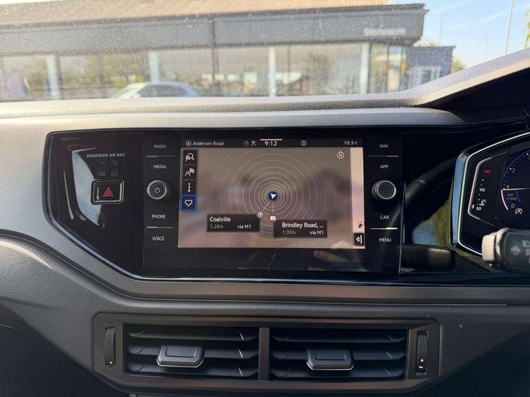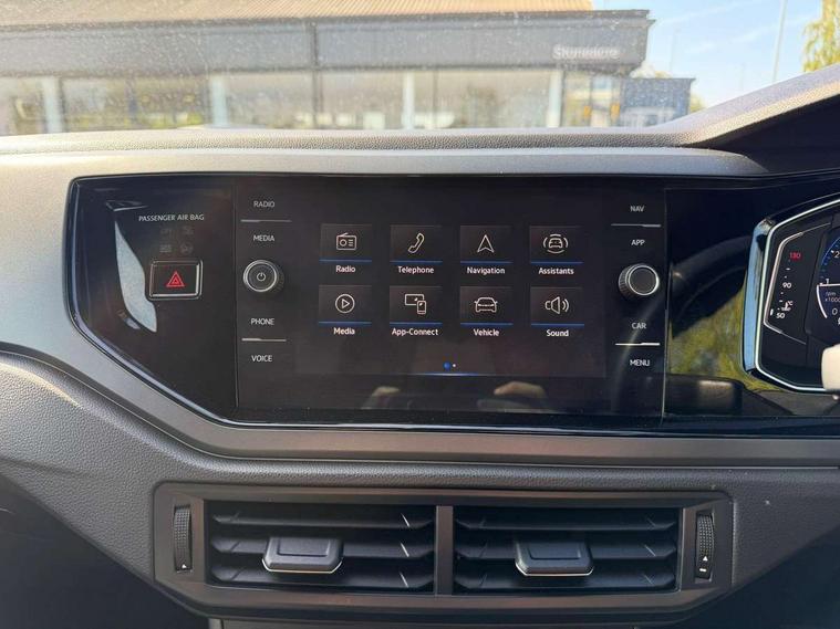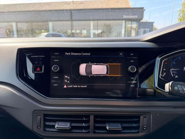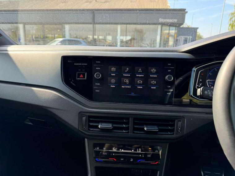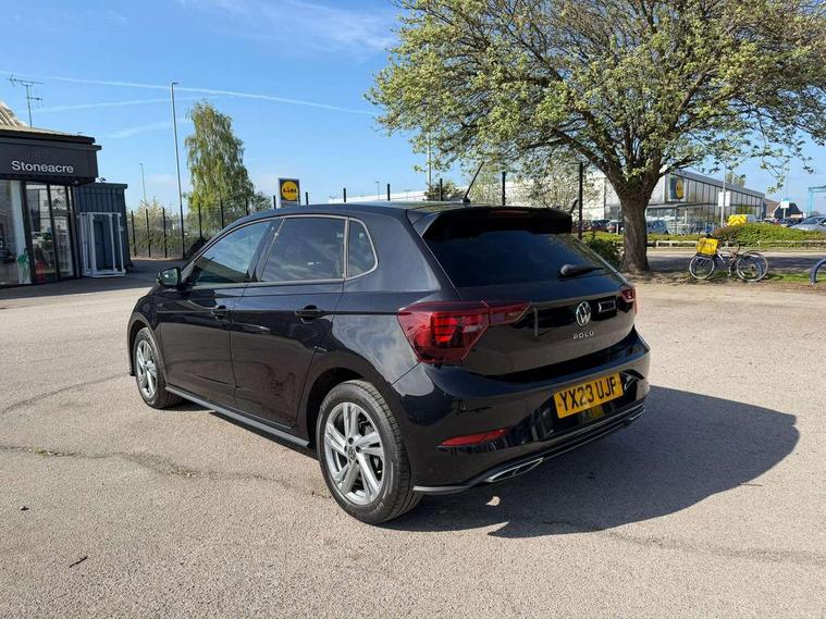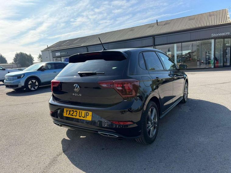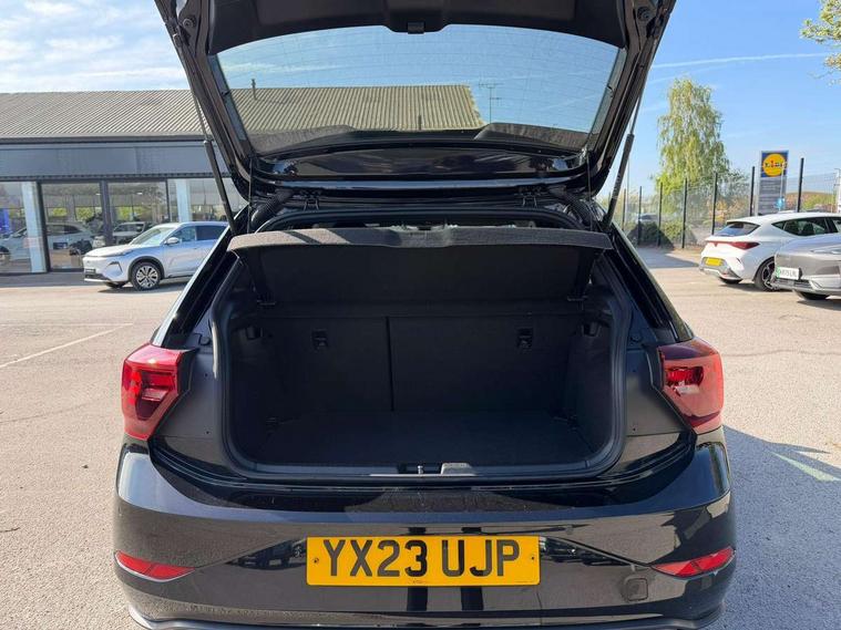 Adaptive cruise control with follow-to-stop and speed limiter, Bluetooth mobile phone interface, Digital Cockpit Pro with 10.25" Display, Driver alert system, Dynamic road sign display, Emergency call service, Power assisted speed sensitive steering, Preparation for We connect and We connect plus, Speedo and rev counter, electronic odometer, trip, service interval display and fuel gauge, Standard rear axle, Travel Assist - Lane keeping system and traffic jam assist, Travel assist including emergency assist, Trip computer, Warning signal and warning light for front and rear seatbelts not fastened, Washer fluid level indicator, Wireless app connect, Front wheel drive, Rear shock absorpion, Start-stop system with battery regeneration (recuperation - energy recovery during braking), DAB Digital radio, Diversity antenna for FM reception, Front and rear 6 speakers, Body colour bumpers, Body colour door handles, Electric front windows, Front scuff plates with R-Line logo, Heat insulating darkened glass in side and rear windows, Heat insulating glass windscreen, Power folding adjustable/heated exterior mirrors and front passenger exterior mirror lowering function, Rear electric windows, Rear fog light, Rear side wing doors, Rear windscreen washer and wiper with interval delay, Third brake light, 12V power socket in centre console, 2 USB-C ports in the front, 2 USB-C charging sockets on the center console in the rear, 3 rear head restraints, 60/40 split folding rear seat and rear seat bench not split, Air care climatronic air conditoning system with active combination filter and 2-zone temperature control, Black roof lining, Chrome plated radiator grille inserts, air vent surrounds and light switch surrounds, Door and side trim panel, Driver and front passenger seat height adjustment, Driver/passenger sunvisors with illuminated vanity mirrors, Front + rear carpet mats in recycled material, Front centre armrest, Front footwell illumination, Front seat backrest storage pockets, Front sports comfort seats, Handbrake lever handle in leather, Headliner in recycled material, Isofix child seat preparation easy-fit (for two outer rear seats, and front passenger seat) compatible with I-size, Karoso artvelours cloth upholstery, Leather trimmed gear knob, LED interior light with switch off delay and dimmer, 2 reading lights front and rear, Luggage compartment cover, Luggage compartment floor, Luggage compartment lighting, Lumbar adjustment for front seats, Single front passenger seat, Stainless steel pedals, Standard pedal cluster, Three spoke leather wrapped multifunction steering wheel with shifting paddles, Light and sight pack - Polo R-Line/Black Edition, 3 point height adj front seatbelts + pretensioners, 3x3 point rear seatbelts, ABS, Driver and front passenger airbag with front passenger airbag deactivation, Drivers and front passengers safety optimised head restraints, ESC (Electronic stability control) + EDL (Electronic Differntial lock) and ASR (Traction control), Extended and predictive pedestrian/ cyclist protection, Front curtain and side airbags with center airbag, Hill hold control, Manual child lock in rear doors, Single tone horn, Tyre pressure loss indicator, Alarm with interior protection, Anti-theft alarm system with interior monitoring, backup horn, and towing protection, Anti-theft wheel bolts, Electronic engine immobiliser, Chrome applications on rotary light, mirror adjustment, window regulator switches, outlet with frame in black, Dark grey anodised matt decorative inserts in dash and front door panels, Low rolling resistance tyres,