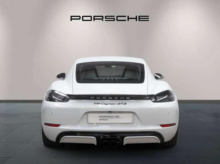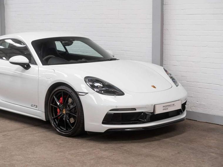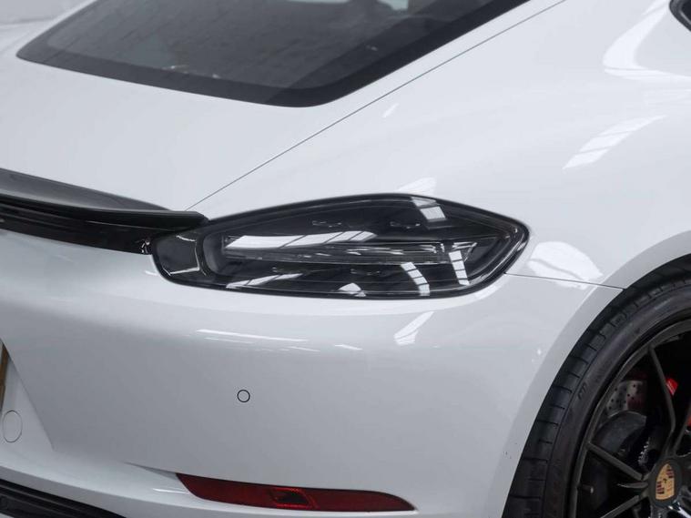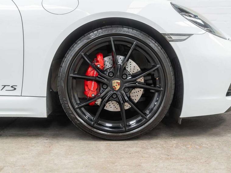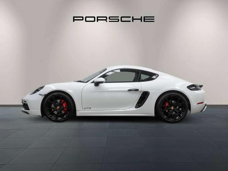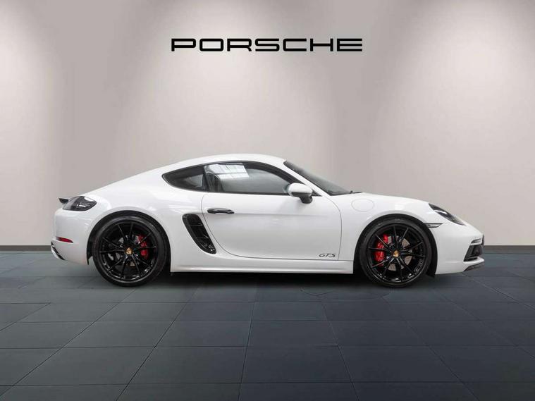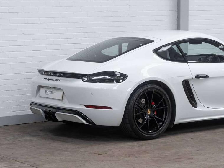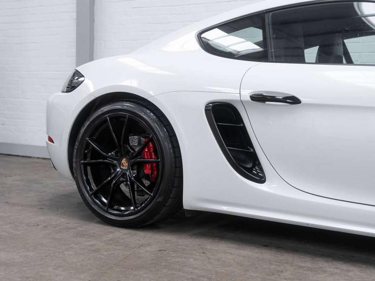 Black rev counter, Instrument cluster with high-resolution 4.6-inch TFT colour display, Mobile telephone preparation, PCM navigation module, Porsche communications management, Porsche Connect Plus, Sports button, Porsche Active Suspension Management (PASM), Porsche stability management (PSM), Porsche TORQUE Vectoring (PTV) with mechanical rear differential lock, Connect Plus with Apple CarPlay, wireless internet access, Carfinder, Remote Vehicle Status and Remote Services, DAB Digital radio, Aerodynamic wipers, Aspherical driver's exterior mirror, Automatic coming home lighting, Automatically extending rear boot spoiler, Black model designation on doors, Body colour bumpers, Door sill guards with logo, Electric windows one touch open/close, Electrically adjustable and heated door mirrors, Green tinted heat insulating glass, Heated rear windscreen, LED brake lights, LED daytime running lights, Painted Porsche logo and model designation, Painted rear apron, Sports exhaust system including sports tailpipes in black, Top tinted windscreen, Windscreen washer jets, 12V sockets in front centre console and passenger footwell, 2 cupholders, Air recirculation control, Clothes hooks on front seat backrests, Defrost switch, Door panel armrests and centre console main storage compartment lid in smooth finish leather, Driver/passenger electric backrest adjustment, Driver/passenger seats fore/aft adjustment, Front and rear luggage compartments, Front centre console storage box, Glovebox illumination, GT alcantara sports steering wheel and PDK gear selector, Ignition Lock illumination, Illumination of luggage compartment, Interior orientation lighting, LED reading lights, Lockable glovebox, Sports steering wheel with manual fore/aft/height adjust, Storage compartments in doors, Sport chrono pack PDK - Cayman (with dynamic transmission mounts), ABS, Electronic parking brake, Full size driver and passenger airbags, Head airbags, POSIP, Red painted brake calipers, Side (thorax) airbags, Tyre pressure monitoring system, Alarm system with interior protection, Anti-theft wheel bolts, Porsche vehicle tracking system (VTS), Remote central locking including luggage compartment, Transponder engine immobiliser, Sealing compound and compressor kit,