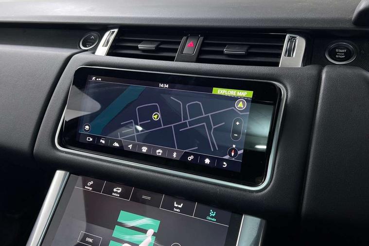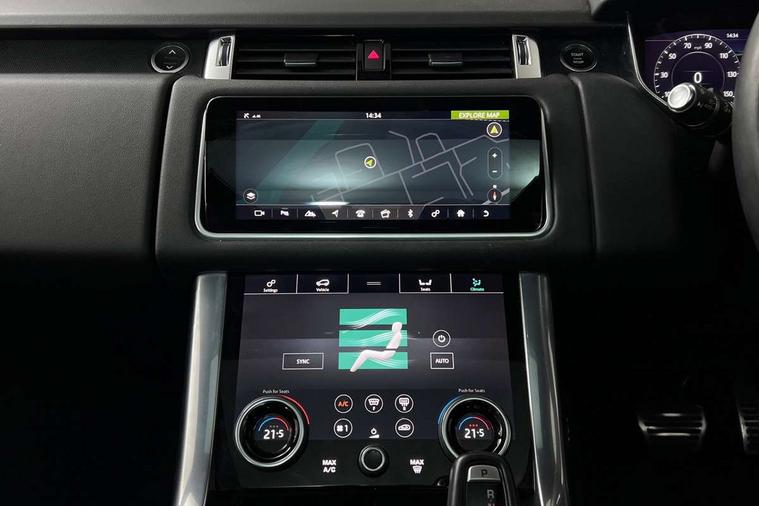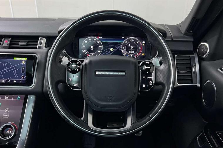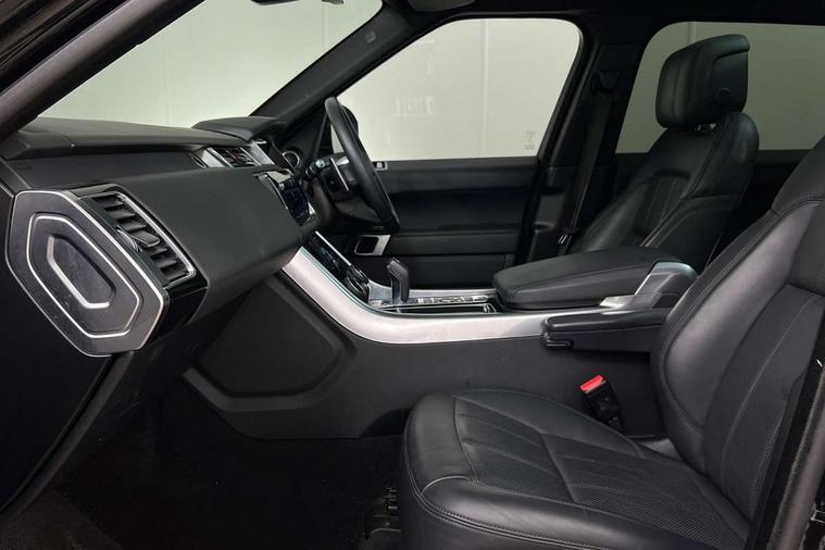 All Terrain Info Centre, Android Auto, Apple car play, Bluetooth connectivity, Electric power assisted steering (EPAS), Incontrol apps in vehicle touchscreen, Interactive Driver display instrument cluster, Mist sensor, Navigation pro system with 10" touch screen, app interface and media storage, Pro services and wifi hotspot, Push button start, Remote premium - Upgraded Incontrol remote app including remote climate control (engine dependent), remote lock + Unlock and remote beep + flash, TFT Virtual Instrument Panel, Touch pro duo system, Trip computer, Gradient release control (GRC), Bluetooth audio streaming, DAB Radio (Digital Audio Broadcasting), Incontrol protect - SOS emergency call with automatic collision detection, optimised assistance call and Incontrol remote app essential, USB/aux input socket, Acoustic front and toughened rear side glass, Acoustic laminated front windows, Adaptive brake lights, Auto dimming interior rear view mirror, Automatic headlights, Body coloured bumpers, Body coloured door mirrors, Centre high mounted stop light, Electric windows with one touch open/close and anti trap, Electrical towing preparation, Engine cover, Follow me home lighting, Front and rear recovery eyes, Front fog lights, Headlight power wash, Heated rear window, Heated windscreen includes heated washer jets, LED rear lamps, Privacy glass (Tinted glass rear of B pillar), Rain sensing windscreen wipers, Rear fog lights, Rear side wing doors, Rear wash/wipe, Remote window closing, Side repeater indicators in mirror, Sport Badge in silver, Standard bonnet, Trailer stability assist, 2 way active front head restraints, 2 way rear head restraints, 3 seat bench in 2nd row, 60/40 load through rear seats, Auto air recirculation, Bright metal foot pedals, Centre console with armrest, Climate control memory, Customer configurable single point entry, Driver's footrest, Front and rear cupholders, Front door storage space, Front map lights, Front seat back map pockets, Front stowage pocket, Front/rear passenger grab handles, Heated steering wheel, Isofix child seat preparation, Leather steering wheel with Atlas inserts, Loadspace light, Loadspace mounting provisions, Lockable glovebox, Multifunction steering wheel, Pollen filter, Power socket, Reach/rake electric adjustable steering column + entry/exit tilt away, Rear centre armrest, Rear ISOFIX, Roller blind loadspace cover, Satin chrome gearshift paddles, Single front passenger seat, Three 12V accessory power outlets, Smartphone pack - Range Rover Sport, 3 point seatbelts on all seats, Anti-lock braking system (ABS), Brake pre-fill technology, Cornering brake control (CBC), Curtain airbags, Customer configurable autolock, DSC - Dynamic Stability Control, Dual stage driver/passenger airbags, EBD - Electronic brakeforce distribution, Electric parking brake, Electronic traction control, Emergency braking includes city, urban AEB and pedestrian, Front seatbelt pretensioners, Gradient acceleration control, Grey anodised brake calipers, Height adjustable front seatbelts, Hill descent control, Hill launch assist, Low traction launch, Passenger seat occupant detector with front airbags, Power operated child locks, Roll stability control, Seatbelt warning, TPMS (Tyre pressure monitoring system), Immobiliser, Intrusion sensor, Keyless entry, Locking wheel nuts, Perimetric and volumetric anti theft alarm, Remote locking, Grand black veneer,
