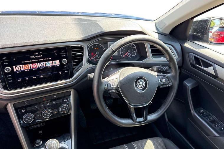 Limestone grey decorative inserts in dash and door panel, Steel space saver spare wheel, Alarm with interior protection and deactivation via infotainment system, Electronic engine immobiliser, Remote central locking with 2 remote folding keys, DAB Digital radio, Multi device interface (MDI) with USB connection, Music playback - MP3, WMA and AAC files, Premium USB cable in choice of either Apple or Android smartphone compatibility, SD card slot, Simultaneous pairing of 2 compatible mobile devices, SMS functionality - read, compose and send SMS messages using touch-screen display, Title and cover art display, 3 rear three point seatbelts, ABS, Curtain airbags, Driver and front passenger safety-optimised head restraints, Drivers and front passengers airbags with passengers deactivation switch, Electronic parking brake with auto hold, Electronic stability control (ESC) includes ASR, EDL, EDTC and trailer stabilisation function, Front seat side impact airbags, Predictive pedestrian protection, Rigid safety cell with front and rear crumple zones, Three point height adjust front seatbelts + pretensioners, Tyre pressure loss indicator, Ventilated front and rear disc brakes, Volkswagen roadside assistance, Auto dimming interior rear view mirror, Automatic hazard lights activation under emergency braking, Black grained lower door protectors, Black grained wheel arches, Body colour bumpers with silver metallic underbody fascia, Body colour door handles, Chrome trim on upper and lower radiator grille, Electrically foldable, adjustable and heated door mirrors with puddle lights and reverse activated kerb-view adjustment on passenger's door mirror, Front and rear electric windows, Front windscreen wiper with intermittent wipe and 4 position delay, Fully galvanised body, Heated rear window, High level 3rd brake light, LED rear number plate lights, Manual coming/automatic leaving home lighting function, Rain sensor, Rear wash/wipe with intermittent wipe setting, 12V socket in centre console storage area, 2 front reading lights, 3 rear head restraints, 4 load lashing points in luggage compartment, Climate control - 2 zone electronic air conditioning with automatic air recirculation and allergy filter, Drawer under drivers seat, Front centre armrest with storage compartment, longitudinal and height adjustable and two rear air vents, Front cupholders x 2, Front seat back storage pockets, Glovebox, Height adjustable front seats, Height/reach adjust steering wheel, Illuminated vanity mirrors, Instrument lighting, white adjustable panel illumination, Interior light delay, Isofix easy fit child seat preparation for 2 outer rear seats, Load through provision with single cup holder when folded down, Luggage compartment cover, removable, Luggage compartment lighting, Split folding rear seat backrests with centre armrest, Storage compartment in left and right luggage area, Storage compartment in rear doors, Storage compartments in driver and front passenger doors, App-Connect, 'Lights On' Reminder warning buzzer, 2 USB connection charging sockets, Adaptive cruise control with front assist, radar sensor controlled distance monitoring, city emergency braking, Automatic start/stop system, Bluetooth telephone and audio connection for compatible devices, Car information display, Driver tips and journey analysis, Dusk sensor, Lane assist, Multifunction computer with visual gear change recommendation for fuel consumption, Service interval indicator, Think blue trainer driver tips and journey analysis, Warning sound and light for doors and tailgate open, Warning sound and light for front seatbelts unfastened, We Connect Go Dongle, Battery regeneration during braking,