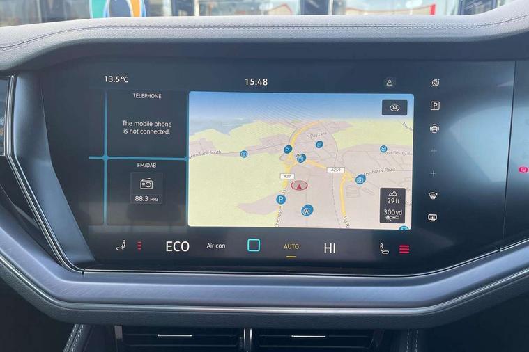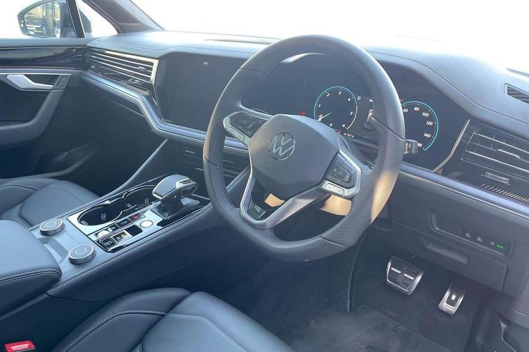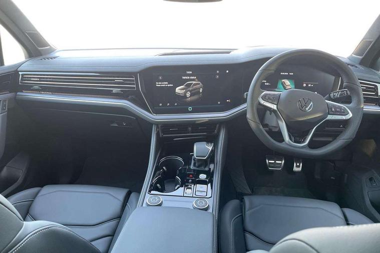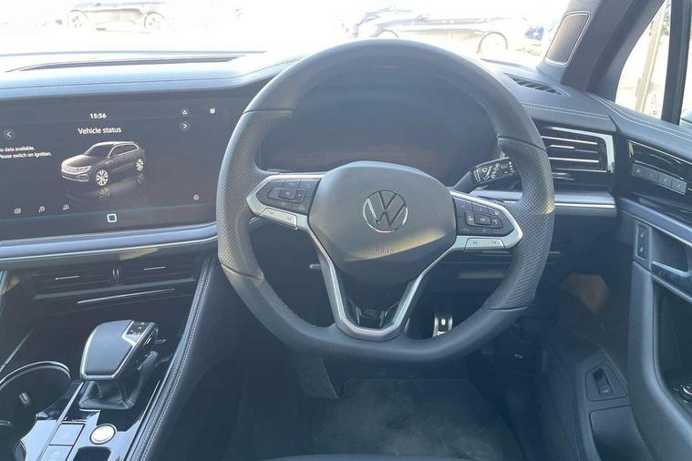 15" Screen Top infotainment system Premium (MIB3), Adaptive cruise control, Advanced driver attention and drowsiness monitor, Driver profile selection, Dynamic road sign display, E-Sim card for online connectivity, eCall emergency system, Innovision cockpit, Intelligent park assist, Mobile phone interface with inductive charging, Multi-colour Active Info display, Park Assist - Sensor controlled steering aid to assist parallel or bay parking, PAS, Warning signal and warning light for front and rear seatbelts not fastened, Wireless app connect, Adaptive chassis control, DAB Digital radio, Diversity antenna for AM/ FM reception, We Connect and We Connect Plus functionality, Automatic coming/leaving home lighting function, Automatic headlights, Black door mirrors, Black style comfort bumpers, Dynamic headlight range control with dynamic cornering light, Electric front tilt/slide panoramic sunroof and fixed rear sunroof, Electrically power adjustable, heated, folding, auto dimming, front passenger exterior door mirror lowering function, External USB type C socket and charging sockets, Gloss black roof rails, HD LED Matrix beam plus digital headlight projection with variable light distribution, Headlight washers, Heat insulating darkened glass in side and rear windows, Highway light, LED 3rd brake light, LED daytime running lights, LED rear combination lamp with variable lighting functions and special styling, Poor weather light, Privacy glass for rear side windows and rear window, tinted glass from B pillar backwards - 80%, Rain sensor, Rear exhaust tailpipe, Rear fog light with back up light on both sides, Rear light bar and illuminated logo, Rear side wing doors, Rear wiper, Stainless steel door sill protection, 12V socket in centre console, 3 rear headrests, 3 seat bench in 2nd row, 4 zone climate control, Airbag label on sun visor and B-pillar, Brushed stainless steel pedals, Double sun visors with illuminated vanity mirrors, Front + rear carpet mats, Front centre armrest, Leather wrapped multifunction sports steering wheel, heated, with touch control and shift paddles, Mechanical rear seat release, Power adjustable lumbar support in front, Power seats in front, right side with memory features and seat cushion depth adjustment, Rear seat backrest and split folding with center armrest, Single front passenger seat, Extra acoustics pack - Touareg, Memory pack plus - Touareg, 3 point seatbelts, outer rear with ECE lable, ABS, Child locks on rear doors, Curtain airbags, Driver and front passenger safety-optimised head restraints, Driver/Front Passenger airbags, Extended pedestrian protection measures, Front assist, Front seat side impact airbags, Generative braking with start and stop system, Height adjustable 3 point front seatbelts with pre tensioners, Passenger airbag deactivate switch, Three 3 point rear seatbelts, Two tone horn, Warning triangle and first aid kit, Alarm system with interior protection, Easy open and close sensor controlled luggage compartment opening and closing with remote unlocking, Keyless Access Keyless locking and starting system with SAFELOCK, Aluminium decorative inserts, Black decorative trims, Gloss black decorative inserts in centre console, Tool kit,