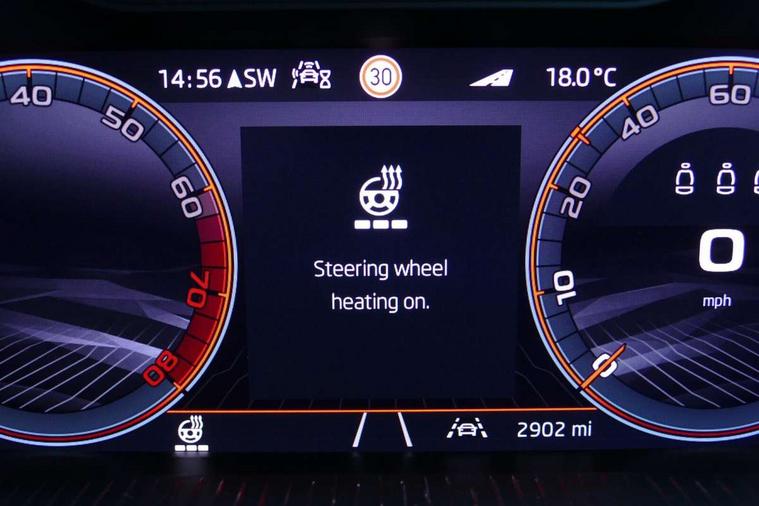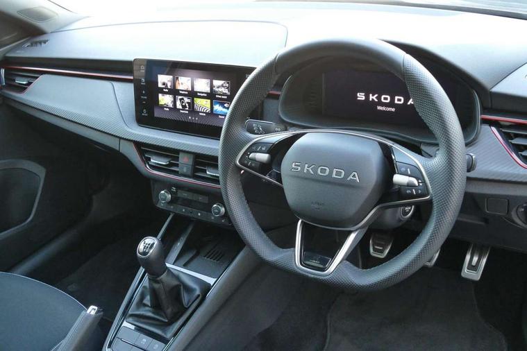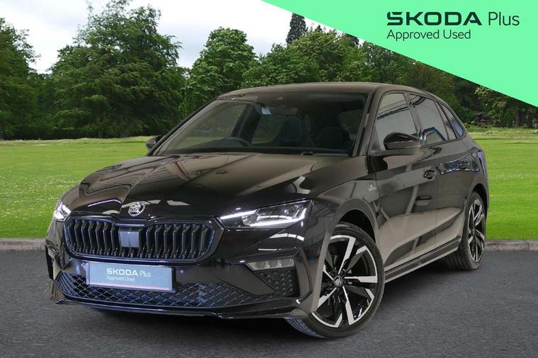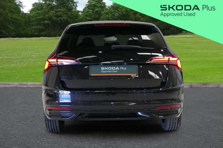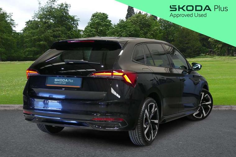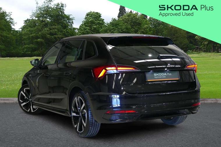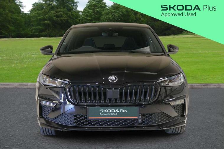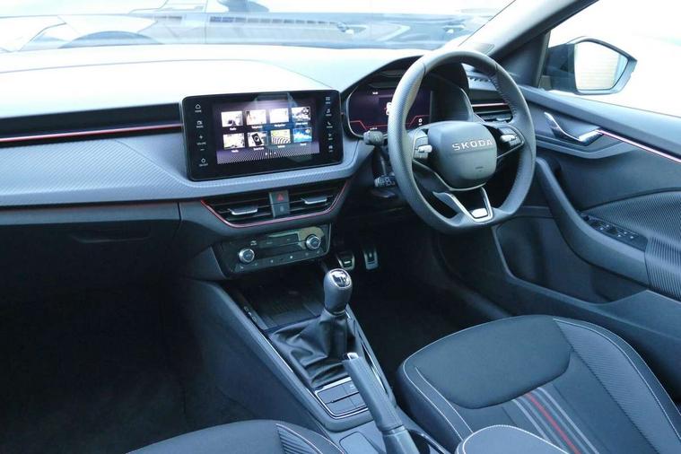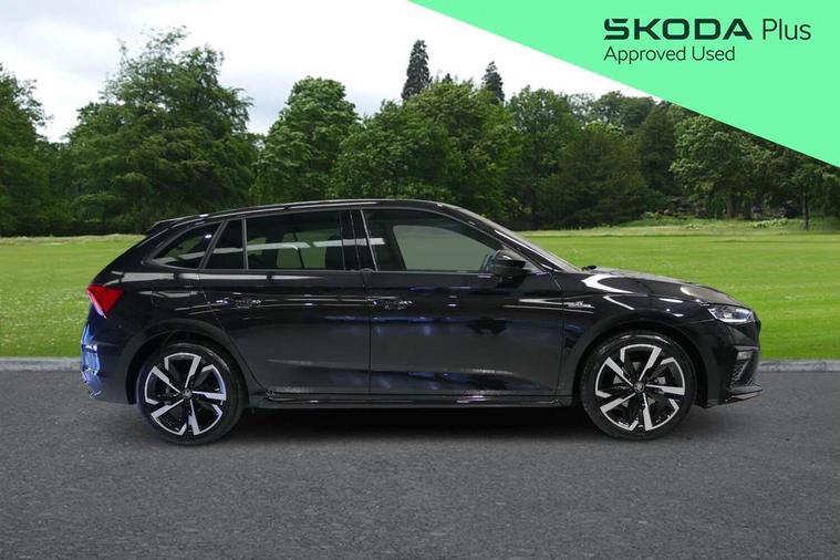 Advanced driver attention and drowsiness monitor, Bluetooth, e-Call (emergency call), Front assist system, PAS, Rear parking sensors, Rear view camera, Speed limiter, Tailgate, Traffic sign recognition, Virtual Cockpit - 10.25" digital display, Voice control system, Wireless smartlink, Drive mode select with Sport Chassis Control and ECO mode, 4 USB C ports, 8 Speakers, 9.2" Skoda navigation display, DAB radio, Auto dimming rear view mirror, Automatic headlight control with manual coming and leaving home feature, Automatic intermittent wipers, Black door mirrors, Black lettering on boot lid, Black radiator grille, Black rear diffuser, Black roof spoiler, Black window frames, Body colour bumpers, Body colour door handles, Extended tailgate glass, Front and rear electric windows, Heated rear window, LED 3rd brake light, LED daytime running lights, LED high beam, LED low beam, Light sensors, Monte carlo plaque, Panoramic glass roof, Privacy glass, Rear LED fog light, Rear side wing doors, Rear wiper, Tinted windows, Unique dark chrome design logo on alloy wheels, 12V socket in luggage compartment, 3 seat bench in 2nd row, Aluminium pedals, Ambient lighting in white/red, Black / White armrest stitching, Black roof headlining, Cargo elements, Chrome inner door handles, Door inserts in art.leather carbon, Driver and passenger sun visors with vanity mirror, Dual zone climate control, Front and rear roof lights, Front centre armrest, Front head restraints, Height adjustable driver seat, Height adjustable passenger seat, Ice scraper, Illuminated glove compartment, Inner circulation control with pollen filter, ISOFIX for front passenger seat, Isofix preparation for back seats, Leather gearknob and handbrake lever, Luggage net under rear parcel shelf, Manual lumbar support for front seats, Monte Carlo cloth upholstery, Net package and top tether hooks in boot space, Pocket on the back of both front seats, incl. mobile phone pockets, Rear centre armrest, Red hotstamping, Single front passenger seat, Skoda lettering on steering wheel, Sport seats, Textile floor mats, Third rear headrest, Ticket holder, Top tether for front passenger seat, Umbrella in driver's door, Light and view plus pack - Scala, 3x3 point rear seatbelts, ABS, Child locks, Curtain airbags and front side airbags, Disc brakes, Driver and front passenger airbags, ESP, Hill hold control, Manual leather parking brake, One tone horn, Passenger airbag switch off function, Seatbelt reminder for driver and front passenger, Tyre pressure monitoring system, Anti theft alarm system with interior monitoring, backup horn and towing protection, Anti-theft wheel bolts, Remote central locking with 2 remote folding keys, SAFE function for remote central locking, Carbon effect decorative inserts, 18" Ursa black diamond cut alloy wheels,