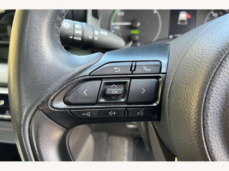 4.2" coloured TFT multi information display with analogue speedometer, Adaptive cruise control, Adjustable speed limit with speed warning, Bluetooth connectivity, E-call, Electric power steering, Hybrid energy display, Multi information display switches on steering wheel, Reversing camera, Smartphone integration with Apple CarPlay and Android auto, Voice recognition, Vehicle Stability Control (VSC), 4 speakers, 7" Multimedia display touch screen, Toyota Touch 2 with DAB, USB connection, Acoustic windscreen glass, Auto windscreen wipers, Automatic headlights, Body coloured door mirrors, Bulb indicators, Chequered front grille, Daytime running lights, Electric adjustable heated door mirrors, Follow me home headlights, Front auto power windows with anti jam protection, Halogen projector headlights, LED High mounted stop lamp, Manual headlight levelling, Rain sensor, Rear side wing doors, Rear spoiler, Rear wiper, Shark fin antenna, Turning signal integrated indicators in door mirrors, 3 adjustable rear headrests, 3 seat bench in 2nd row, 3 spoke leather steering wheel, 60/40 split folding rear seat, Adjustbale boot height, Auto air conditioning, Coat hooks in rear grab handles, Cup holders (2 front & door), Data Communication Module (DCM) connected services, Fabric upholstery, Front armrest, Glovebox, Grey roof lining, Height adjustable driver's seat, Isofix seat fixing, Leather gearshift, Pollen filter, Shopping bag hooks, Single front passenger seat, Tilt/telescopic steering column, 3 point seatbelts on all rear seats, ABS+EBD+Brake assist, Active headrests, Electronic parking brake, Emergency brake light system (EBS), Front passenger airbag on/off switch, Front seatbelt reminder, Hill start assist control (HAC), Rear child proof door locks, Rear seat belt reminder, Supplemental Restraint System (SRS) 8 airbags: Driver & passenger's airbags, dual side curtain airbags, side impact airbags, front centre airbag, Toyota Safety Sense 2, Precollison + Night time Pedestrian & Cyclist Detection, Lane Trace Assist, Auto High Beam, Intelligent ACC & Road Sign Assist, Tyre pressure warning system, 2x Master key, Alarm/immobiliser, Remote powered central double locking doors, Soft touch instrument panel, 16" silver alloy wheels, Space saver spare wheel,