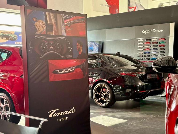 7 - inch colour TFT instrument cluster, 8.8" screen colour display, Alfa Connect 3D Nav 8.8" Infotainment system (radio, 3D Nav, MP3, aux-in, bluetooth), Alfa Romeo DNA driving mode selector, Apple car play/Android Auto, Forward collision warning, Front and rear parking sensors, Lane departure warning system, PAS, Remote tailgate release with key fob button, Rotary pad, Stop/start system, Trip computer, 2x USB sockets in front, DAB digital audio broadcast, Steering wheel mounted audio controls, 35W Bi-xenon headlamp with AFS function, Automatic headlamps with dusk sensor, Automatic rain sensing wipers, Automatic windscreen wipers, Chrome door scuff plates, Chrome window surround, Daytime running lights, Headlamp washer, LED brake lights, LED rear lights, Power folding outside rear view mirrors, Rear privacy glass, Twin chrome exhaust tailpipes, 4 way lumbar support, 6 way power front seats, Aluminium kick plate, Dual zone auto temp control with humidity sensor, Front head restraints, Front/rear floor mats, Rear climate control vent, Third rear headrest, Cold weather pack - Stelvio, Sport pack - Stelvio, 3x3 point rear seatbelts, ABS, Autonomous emergency braking, Electronic parking brake, Electronic stability control, Hill descent control, Integrated brake system, Manual passenger airbag deactivation function, Traction control, Tyre pressure monitoring system in EVIC display, Immobiliser, Perimeter alarm, Remote central locking, Thatcham vehicle theft alarm with hood protection and intrusion sensor, Aluminium trim, Summer tyres,