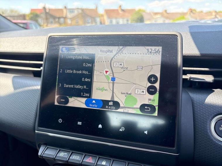 4.2" colour instrument display, Cruise control + speed limiter, E-call, Easy link 7"screen with nav, 4x20W amp, DAB double tuner, 2xUSB, 1xJack/Bluetooth, and smartphone integration plus - Apple CarPlay/Android Auto, Eco mode driving function, Gear change indicator, Lane departure warning system, Lane keep assist, Over speed prevention, Rear parking sensors, Traffic sign recognition, Trip computer, Variable assistance electric PAS, Body colour door handles, Body colour door mirrors, Body coloured bumpers, Body coloured rear spoiler, Chrome insert on lower side doors with Clio embossing, Drivers one touch window with anti-pinch feature, Electric adjustable/heated/folding door mirrors, Electric front windows, Electric rear windows, Exterior rear hidden door handles, Full LED front and rear headlamps integrating daytime running lights at the front and rear, Rear fog lights, Rear wiper, Tinted rear windows, Variable speed on front windscreen wipers, 12V Accessory socket, 3 rear height adjustable headrests, 6.2L front glovebox, 60/40 split rear seats, Air recirculation control, Auto climate control, Centre console with armrest, Cloth upholstery, Driver's seat height adjustment, Front cupholders, Front door storage bin, Height adjustable front headrests, Height adjustable passenger seat, Height/reach adjust steering wheel, Isofix system on outer rear seats, Multi function steering wheel, Pollen filter, Synthetic leather steering wheel, System for Restraint and Protection SRP-front seats, Comfort pack - Clio HB, 3 point seatbelts on all rear seats, ABS+EBD+Brake assist, Automatic emergency braking system, Curtain airbags, Distance warning alert, Driver and passenger front and side airbag deactivation, Driver/Front Passenger airbags, ESC - Electronic Stability Control + traction control, Front side airbags(head+thorax), Height adjustable driver's seatbelt, Hill start assist, Seatbelt warning, Tyre pressure warning, Central door locking, Deadlocking system, Hands free key card with push button, start and stop function, Locking fuel filler cap, RAID (Renault Anti-Intruder Device) with automatic door locking, Rear side wing door and window child locking function (front driver door control panel), Remote central locking with thatcham approved immobiliser, 16" Philia diamond cut alloy wheels,