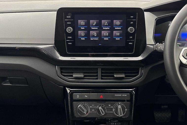 'Lights On' Reminder warning buzzer, Advanced driver attention and drowsiness monitor, Blind spot monitoring, Car information display, Dynamic road sign display, E-Sim card for online connectivity, eCall emergency call system, Front and rear parking sensors, Front assist, forward collision warning, autonomous emergency braking and speed limiter, Low washer fluid warning light, Multifunction computer with visual gear change recommendation for fuel consumption, Multifunction front facing camera for distance control, Operating permit alteration, Power assisted steering, Predictive adaptive cruise control, Preparation for navigation system with media and internet package, Preparation for We connect and We connect plus, Rear view camera, Semi-automated driving assistance, travel assist including lane keeping system Lane Assist and emergency assisst, Speedo, rev counter, electronic odometer, trip, service interval display, exterior temperature and fuel gauge, Warning sound and light for doors and tailgate open, Warning sound and light for front seatbelts unfastened, Wireless Car net app connect with Apple CarPlay, combined functionality of Apple CarPlay/Android Auto and MirrorLink, Wireless charging, Misfuel prevention device, Start-stop system with battery regeneration (recuperation - energy recovery during braking), 2 USB C ports in front, 2 USB charging sockets on the centre console in the rear charging capacity upto 45W, Diversity antenna for FM reception, Music playback - MP3, WMA and AAC files, Radio, Automatic dimming interior rear view mirror, Automatic hazard lights activation under emergency braking, Automatic headlight control with LED separate daytime running light and coming home and leaving home feature, Black roof rails, Body colour door handles, Body colour door mirrors, Body coloured bumpers, Dynamic headlight range control with self adjusting whilst driving, Electric folding door mirror, adjustable, heated with front passenger exterior mirror lowering function, Exterior mirrors convex on the left and aspherical on the right, Front and rear electric windows, Galvanised body, Heat insulating and laminated safety glass windshield, Heat insulating darkened glass in side and rear windows, High Beam Assist, automatic sensing for switching between dipped and main beam, LED Headlights, LED rear combination lights, LED third brake light, Lower door sills and door pillars in black, Rain sensor, Rear fog light on one side, reversing light on both sides, Rear side wing doors, Rear window aerial, Rear window wiper with intermittent control, Reflectors in all doors, Scuff plates, Tailgate with integrated roof spoiler, 12V Accessory socket in centre console, 3 rear head restraints, 3 seat bench in 2nd row, 60/40 split folding rear seat backrest, Ambient lighting and logo projection, Ceramique roof lining, Cloth upholstery, Door and side trim panel, Drawer under drivers seat, Driver and front passenger sunvisor with vanity mirror, Dust and pollen filter, Front and rear reading lights X 2, Front centre armrest with storage compartment, Front seat back storage pockets, Glove compartment door with light, Heating and fresh air system with 4 stage blower, Height/reach adjust steering wheel, Instrument lighting white adjustable panel illumination, Interior light with switch off delay and dimmer, Isofix anchors for child seats on outer rear seats and front passenger seats, Leather gearshift handle, Leather wrapped multifunction steering wheel, Luggage compartment floor, Luggage compartment lighting, Manual front seats with height adjustment, Padded dashboard, Removable luggage compartment cover, Single front passenger seat, Storage compartment in drivers and front passengers door, Unsplit sliding rear seat bench, 3 point outer rear seat belts with ECE label, 3 Point seatbelt for centre rear seat, Anti-lock Braking System (ABS) with Hydraulic Brake Assist (HBA), Automatic post collision braking system, Disc brakes in front, Driver and front passenger safety-optimised head restraints, Drivers and Front Passengers airbags with front passengers airbag deactivation switch, Drum brakes in rear, ESC with EDL and ASR (traction control), Extended and predictive pedestrian/cyclist protection, Front and rear passenger curtain airbag system including front side airbags, Height adjustable front 3 point seatbelts + pretensioners, Hill start assist, Pre crash preventive occupant protection, Proactive passenger protection system in combination with front assist, Rear door child safety locks, Rigid safety cell with front and rear crumple zones, Single tone horn, Tyre pressure loss indicator, Volkswagen roadside assistance, Alarm with interior protection, Anti theft alarm system, Electronic engine immobiliser, Remote keyless entry using key fob including Start/Stop button on centre console with SAFELOCK, Remote tailgate unlocking using key fob, Low rolling resistance tyres,