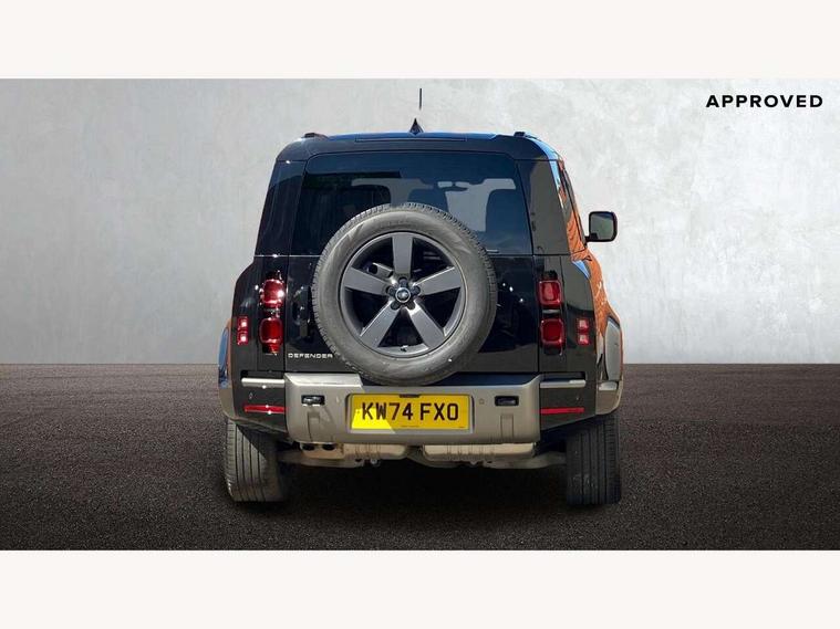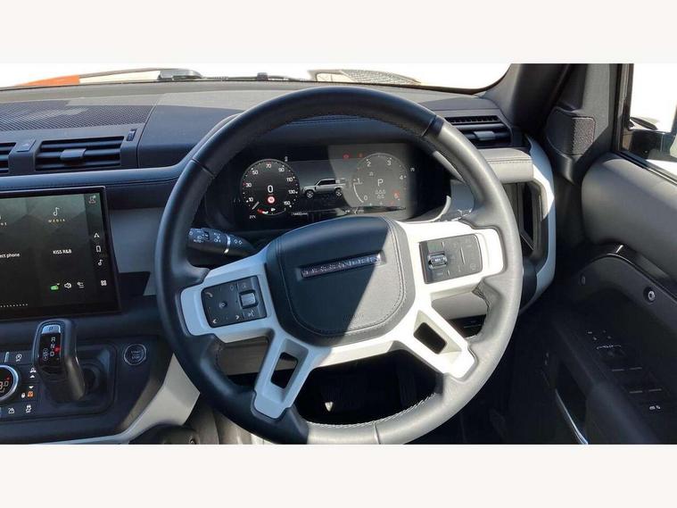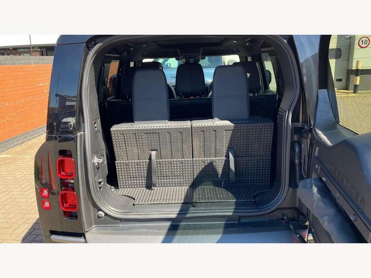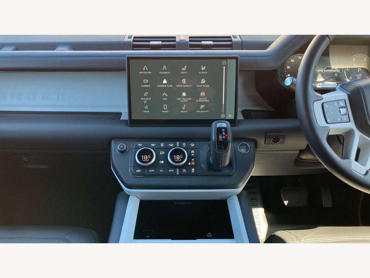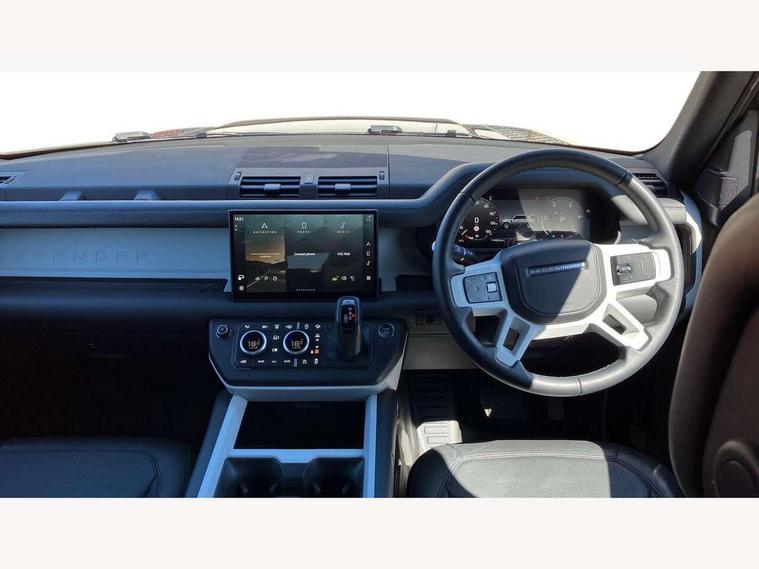 1 x USB-C (power only) & 1 x USB-C (power & data) in Row 1, 2 x USB-C in Row 2, 11.4" touchscreen, 2 x USB-C in Row 3, 360 degree parking aid, 3D Surround Camera with 360 View, 180 Rear View, Front Traffic Detection, Forward Vehicle Guidance, Tow Hitch Assist and clear sight Ground View, Adaptive cruise control, Android Auto, Apple CarPlay, Blind spot assist, Bluetooth system, Brake pad wear indicator, Clear exit monitor, Connected navigation pro, Driver condition monitor, Electric power assisted steering (EPAS), Interactive driver display, Lane keep assist, Push button start, Rear collision monitor, Rear traffic monitor, Traffic sign recognition with adaptive speed limiter, Trip computer, Wireless device charging, 8 speed automatic transmission, All wheel drive system, Twin speed transfer box, DAB Radio (Digital Audio Broadcasting), Meridian 700w surround sound audio system with 15 speakers, Pivi pro connected, Automatic headlight levelling, Automatic headlights, Black exposed rear recovery eyes, Body coloured bonnet, Centre high mounted stop light, Electric heated/power fold door mirrors with approach lights and auto dimming driver side, Electric windows with one touch open/close and anti-trap, Follow me home lighting, Front fog lights, Heated rear window with timer, Heated windscreen, Illuminated metal treadplates with brand name script, LED tail lights, Matrix LED headlights with signature DRL, Privacy glass, Puddle lights, Rain sensing windscreen wipers, Rear fog lights, Rear side wing doors, Rear wiper, Side hinged tailgate, Sliding panoramic roof, Standard tail door, Trailer stability assist, X-Dynamic badge, 12V power socket in loadspace, 2 seat bench in 3rd row, 3 seat bench in 2nd row, Alpine lights, Configurable cabin lighting, Durable rubber cabin flooring, Durable rubber loadspace flooring, Electric reach + rake adjustable steering column, Electrically adjustable steering column, Extended leather upgrade, Footwell lights, Front head restraints, Front passenger isofix child seat attachment, Heated steering wheel, Loadspace cover, Loadspace Hook, Multifunction steering wheel, No flat load floor storage, Overhead stowage for sunglasses, Rear headrests, Rear ISOFIX, Rear reading lights, Single front passenger seat, Soft close tail door, Storage glovebox, Sunvisors with illuminated vanity mirrors, Twin front cupholders, Air suspension pack - Defender SE/HSE/X-Dynamic SE/X-Dynamic HSE, Non-smoker package, Online pack with data plan - Defender, 7 three point seatbelts, ABS, Brake hold function, Cornering brake control (CBC), Customer configurable autolock, Driver and passenger airbags, DSC - Dynamic Stability Control, EBD - Electronic brakeforce distribution, Electric parking brake (EPB), Emergency brake assist, Emergency braking, ESP + traction control, Front airbags with passenger seat occupant detector, HDC - Hill descent control, Hill launch assist, Low traction launch, Power operated child locks, Remote for (e-Call, Optimised assistance call, InControl app, Climate, beep and flash and door), RSC - Roll stability control, Seat belt reminder, TPMS (Tyre pressure monitoring system), Alarm, Immobiliser, Intrusion sensor, Keyless entry, Locking wheel nuts, Secure tracker pro,