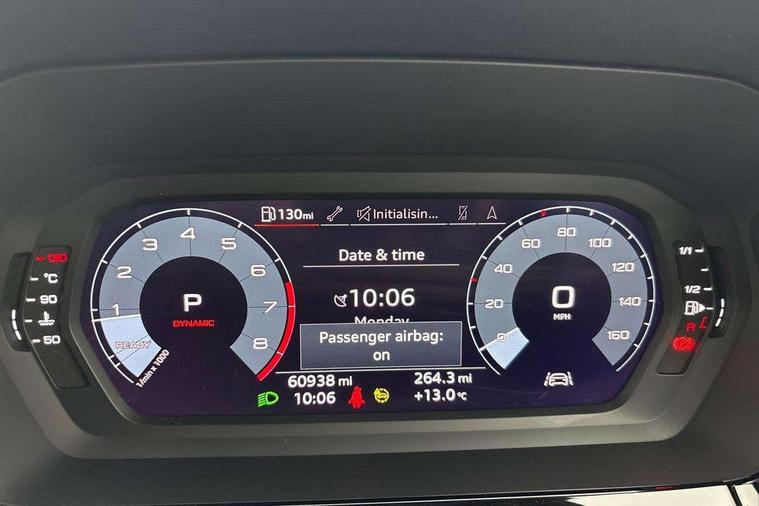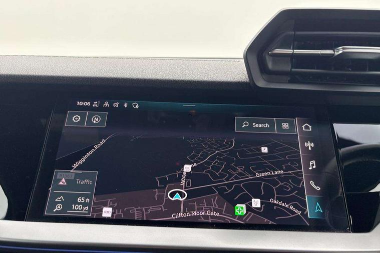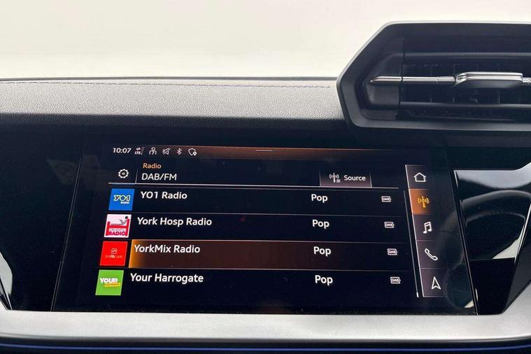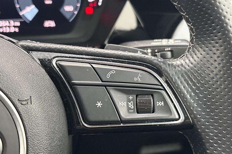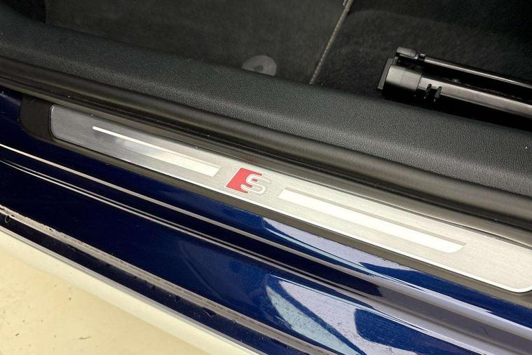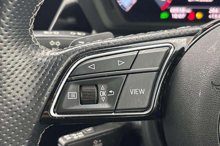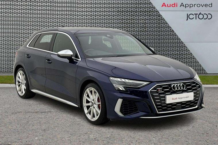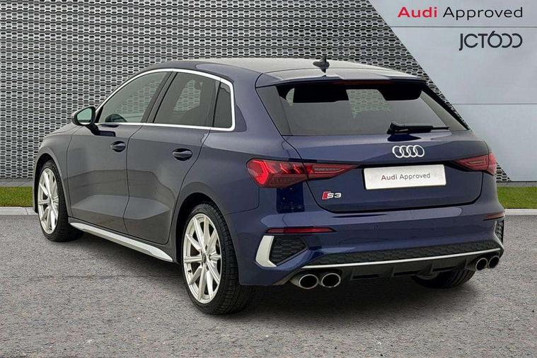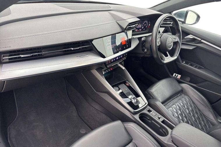 Accent surfaces in the dashboard and centre console in platinum grey silk effect paint finish, Dark spectrum aluminium inlays, Aluminium interior elements pack - A3 Sportback, Design body styling - A3 Sportback, Storage pack - A3 Sportback, 3x3 point rear seat belts, Driver and front passenger airbag with passenger airbag deactivation, Electronic Stabilisation Control (ESC) including ABS, ASR and EDL, First aid kit with warning triangle and 2 safety vests, Front side airbags with head airbags and interaction airbag, Hill hold assist, Pre-sense front with pedestrian and cyclist detection, Seatbelt monitoring, Tyre pressure loss indicator, Anti theft alarm, Anti-theft wheel bolts, Electronically operated child lock, Immobiliser, Remote control central locking, Quattro permanent all wheel drive, S sports suspension, 2xUSB-C connection with data and charging functions, 6 passive loudspeakers, DAB Digital radio, Acoustic glass windscreen, Aluminium window trim, Audi Beam uses LEDs to project the Audi S3 logo, Auto dimming frameless rear view mirror, Dual branch oval twin tailpipes in chrome plated finish, Exterior mirror with aluminium look housing, Front electric windows, Illuminated aluminium inserts front door sills with S logo, LED daytime running lights, Light and rain sensors, Privacy glass - dark tinted rear window, rear door and side windows, Rear electric windows, Rear side air outlets in grained matt black, Rear wiper, 12V socket and storage compartment in front centre console, 3 spoke flat bottomed multifunction plus sports contour leather wrapped steering wheel with shift paddles, 40/20/40 split folding rear seat bench with cupholder, Black cloth headlining, Dual zone electronic climate control, Front and rear centre armrest in leather, Front and rear headrests, Front/rear floor mats, Heated front seats, Height and reach adjustable steering wheel, Interior lighting - glove compartment light and right hand side, Luggage compartment floor covering, Seat side bolsters, Stainless steel pedals and front footrest, Audi connect emergency call and service, Audi drive select (Auto, Comfort, Dynamic, Efficiency and Individual), Audi smartphone interface, Audi Virtual Cockpit - 10.25" digital and colour instrument cluster, Automatic start/stop system with recuperation, Bluetooth interface, Collision avoidance assistant, Lane departure warning system, MMI Navigation Plus with high resolution 10.1" colour touch screen display, Progressive steering, Service indicator, Trip computer, Voice control system with natural language interaction,