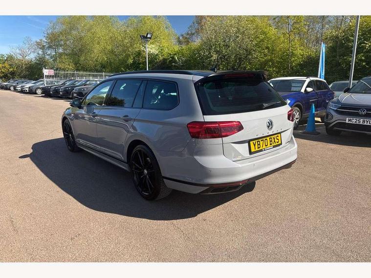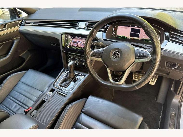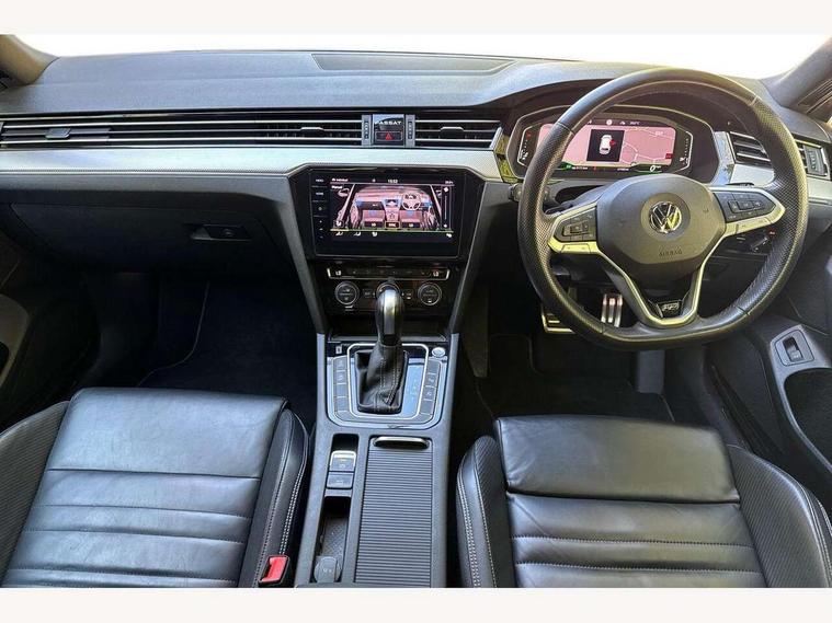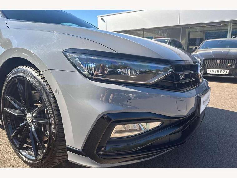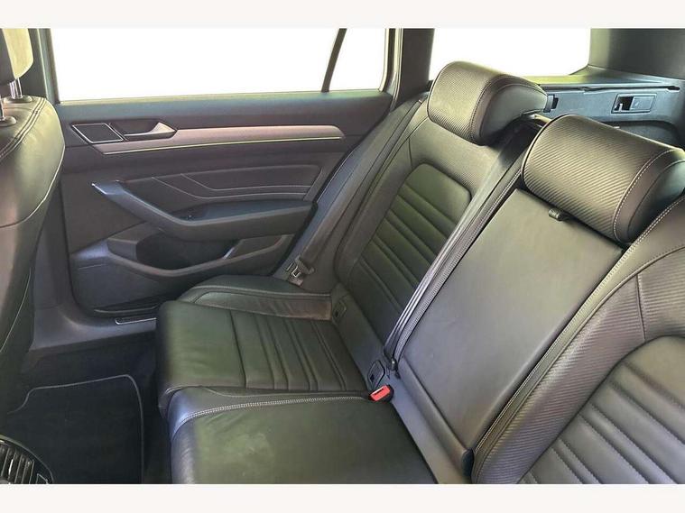 Adaptive cruise control including Front Assist, radar sensor controlled distance monitoring system, City emergency braking system, Area view, Driver alert system, Driver profile selection, Exterior temperature gauge with frost alarm, Front and rear ultrasonic parking sensors, audible with audio volume reduction when activated + optical parking display via vehicles infotain system, Lane assist, Low washer fluid warning light, Multifunction computer includes visual gear, One touch indicator turn signal, Proactive occupant protection, Security and service including e-call, Speed sensitive power steering, Speedo and rev counter, electronic odometer, trip, service interval display and fuel gauge, Start/Stop function, Traffic jam assist, Warning buzzer and light for front seatbelts unfastened, Wireless app connect, Battery regeneration during braking, Diesel particulate filter, Dynamic chassis control, Misfuel prevention device, XDS electronic differential lock, Aerial for radio integrated into rear windscreen, DAB Digital radio receiver, Auto dimming interior rear view mirror, Automatic headlights with dusk sensor, Automatic leaving home and manual coming home lighting functions, Black door mirrors with integrated indicators, Black radiator grille with chrome louvres, Body colour bumpers, Body colour door handles, Front and rear electric windows, Fully galvanised body, Gloss black finish on B pillar, Heated rear window, Heated windscreen washer jets, High level 3rd brake light, IQ.LED matrix projection technology headlights w. washers, dynamic curve lighting, dual U-shaped LED DRL, LED indicators, static cornering fog lights, LED rear lights, LED rear number plate lights, Plastic load sill protection, Rain sensor, Rear tinted glass from B pillar backwards, approx 65% tinted, Rear window wash/wipe, Remote electrically adjustable and foldable heated door mirrors including automatic dimming function on drivers side door mirror puddle lights, Signature solid paint, Silver anodised roof rails, Warning lights for open tailgate and doors, White instrument lighting, 12V socket in front centre console, 12V socket in luggage compartment, 40:20:40 split folding rear seats with backrest, Carbon optic side bolsters, Climate control - 3 Zone electronic air conditioning with automatic air recirculation, Driver's door storage compartment for 1.0 litre bottle, Driver/front passenger seat height adjustment, ergoComfort seat with seat cushion tilt adjustment, thigh support and electric backrest adjustment on the driver side, Extending luggage compartment cover with convenience opening, stowable, Front and rear interior lighting with delay and dimming function, Front centre armrest with storage compartment and two rear air vents, Front cupholders x2 with covers, Front passenger storage compartment for 1.5 litre bottle, Front seats with embroidered R Line logo on backrest, Front seats with lumbar adjustment, Heated front seats, Height adjustable and removable variable boot floor, Height adjustable rear seat head restraints (x3), Height/reach adjust steering wheel, Illuminated vanity mirrors, Isofix child seat preparation, outer rear seats, Load lashing points x 4 in luggage compartment, Load through provision, Lockable, illuminated, cooled glovebox, Luggage compartment lighting, Nappa leather upholstery, Rear seat centre armrest with storage compartment, Stainless steel pedals in clutch, brake and accelerator, Storage compartment in rear doors, Storage compartment in roof console with cover, Three spoke leather trimmed multifunction steering wheel with aluminium inserts and R Line Logo including paddle shift, Unique R Line front and rear carpet mats, Ambient lighting plus pack - Passat, Black styling pack - Passat R Line Edition, Discover navigation pro pack - Passat, Easy open package with full electric tailgate/ boot - Passat (Estate), 3x3 point rear seatbelts, ABS (Anti locking brake system) includes BAS (Brake assist) and EBD (Electronic brake pressure distribution), Automatic post collision braking, Disc brakes front and rear, Door open warning reflectors, Driver/Front Passenger airbags, Drivers and front passengers safety optimised head restraints, longitudinal and height adjustable, Drivers knee airbag, Electronic parking brake with auto hold, ESC (Electronic stability control)and ASR (Traction control), EDTC (Engine drag torque control), First aid kit, Front airbags with deactivation switch, Front and rear passenger curtain airbags, Front side impact airbag, Height adjustable front 3 point seatbelts + pretensioners, Hill hold function, Pre crash preventive occupant protection, Rear seat side impact airbags, Rigid safety cell with front and rear crumple zones, Tyre pressure loss indicator, Volkswagen roadside assistance, Warning light for rear seat belts if unfastened, Alarm with interior protection and deactivation via infotainment system, Electronic engine immobiliser, Keyless entry system including start/stop button on centre console, Chrome air vent and instrument surround, Unique R Line dark diamond flag decorative inserts in dash and door panels, 19" Pretoria dark graphite alloy wheels and low rolling resistance tyres + anti-theft wheel bolts, Steel space saver spare wheel,