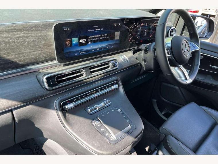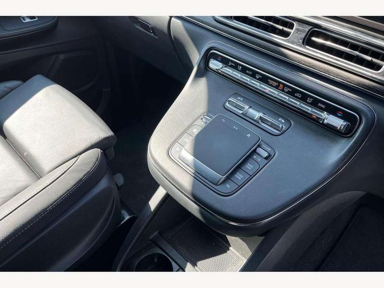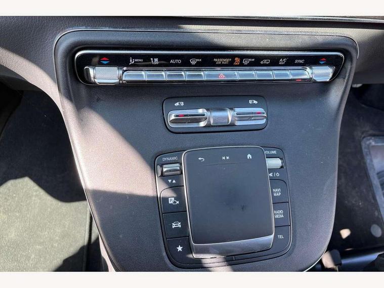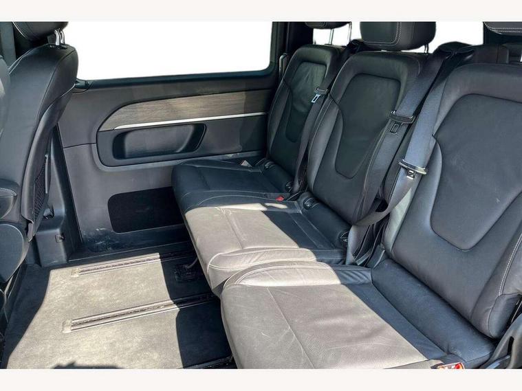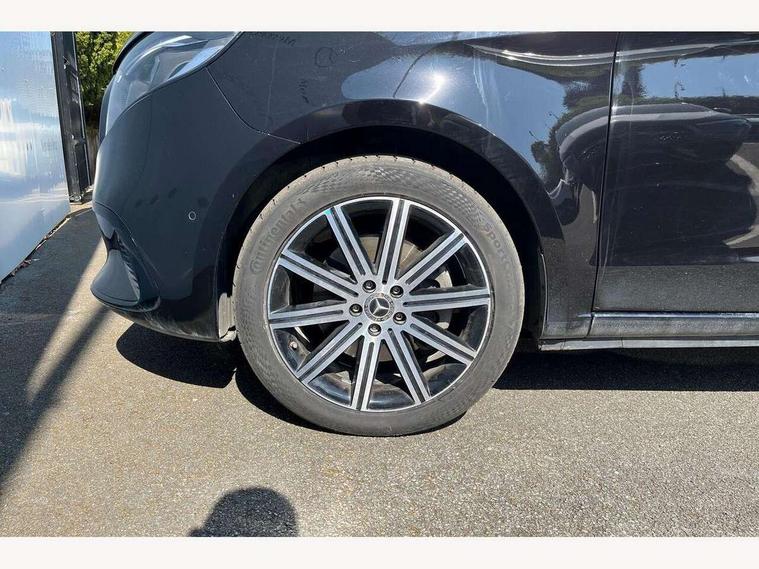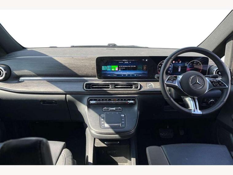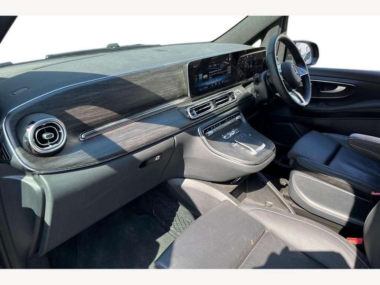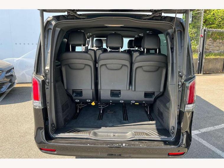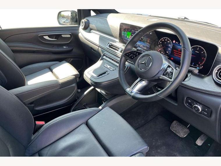 Active distance assist DISTRONIC, Active lane keeping assist, Agility select with a choice of driving modes (Comfort, ECO, Sport, Individual), Attention assist, Blind spot assist, Comfort closure incl. boot, Crosswind Assist, Cruise control, Direct steer speed sensitive steering, e-Call (emergency call), ECO start/stop function, Intelligent speed assistance, MBUX augmented reality for navigation, MBUX multimedia nav with 10.25" touchscreen, Hey Mercedes intelligent voice control, 2 USB-C ports and mobile connectivity for up to 15 devices, MBUX navigation with 2 x 12.3" widescreen cockpit display with touchscreen, MBUX personalised vehicle profiles, Mercedes me connect, Service indicator assist, Sidewind assist system, Status display for rear seat belts in instrument cluster, Traffic sign assist, Wireless charging for smartphone, 57 litre fuel tank, 9G TRONIC automatic transmission, Absorbed glass mat battery 12 V 92 Ah, Agility control comfort suspension, 2 USB ports and one SD card slot centre console, 2-way speakers in the front and rear, DAB radio, Frontbass loudspeakers, Adaptive brake lights, Anodised roof rails, Automatic lights, Bumpers and attachments painted in the vehicle colour, H7 reflection-type headlamps, Heat-insulating windows all round, Heated exterior mirrors, electrically adjustable, with integral indicator lamp, Illuminated exits, Illuminated mirror for sun visor, LED DRL, LED tail lamps/brake lamps and indicators, Multibeam LED headlights with adaptive highbeam assist plus, Privacy glass, Radiator shell with Mercedes-Benz pattern, Rain sensing windscreen wipers, Separately opening rear window, Sport body styling, Tailgate surround lighting, Window in tailgate with wash and wipe system, 3 seat bench in 2nd row, 3 seat bench in 3rd row, Air conditioning - semi-automatic, TEMPMATIC in rear, Ambience lighting 64 colours cockpit + rear passenger compartment, Armrests for seating in the passenger compartment, Carpeting in rear passenger compartment, Centre console with storage/cupholders, Comfort drivers seat, Comfort overhead control panel, Front and rear footwell lighting, Hot air duct to the passenger compartment, Illuminated grab handle with reading light, Lighting in the rear grab handles, Lugano leather upholstery, Lumbar support for driver's and front passengers seat, Multifunction 3-spoke leather steering wheel with touch controls, adjustable in inclination and height, Reach and rake adjustable steering column, Rear head restraints, Single front passenger seat, Stowage nets behind individual seats, THERMOTRONIC automatic climate control, Touchpad, Aerodynamics package - V class, Comfort seat package - V class, Electric package - V class, Mirror package - V class, Navigation package - V class, Parking package with 360 degree camera - V class, Smartphone integration package - V class, Sport package - V class, Winter package - V class, 3 point seatbelts on all seats, ABS, Active brake assist, Automatic front passenger airbag deactivation, Centre airbag, Child safety locks in passenger compartment doors, CO2-optimised brake system, Driver and front passenger thorax/pelvis side airbags, Dual airbags for driver and front passenger, Electric parking brake, ESP, Hill start assist, Pedestrian protection, Pre safe, Rear seat belt pretensioners, Seat belt warning device for front passenger seat and rear seats, Seat occupancy sensor, Tyre pressure monitoring system, Window airbags for driver, front passenger and rear passenger, Active lock for sliding door, Keyless start, Full wheel covers, Summer and comfort tyres,