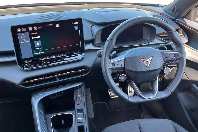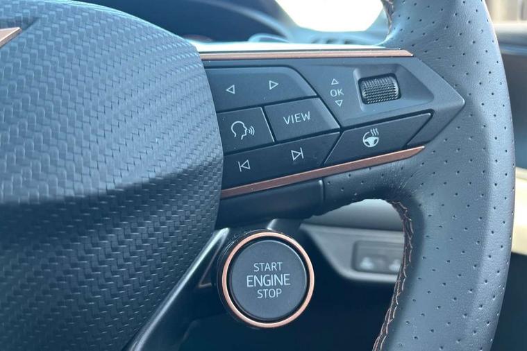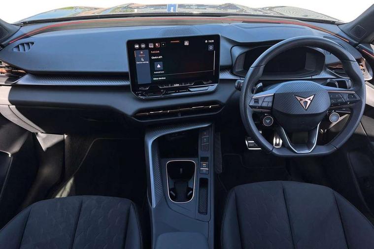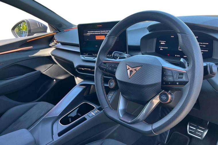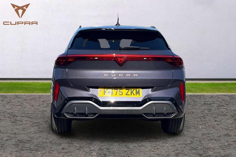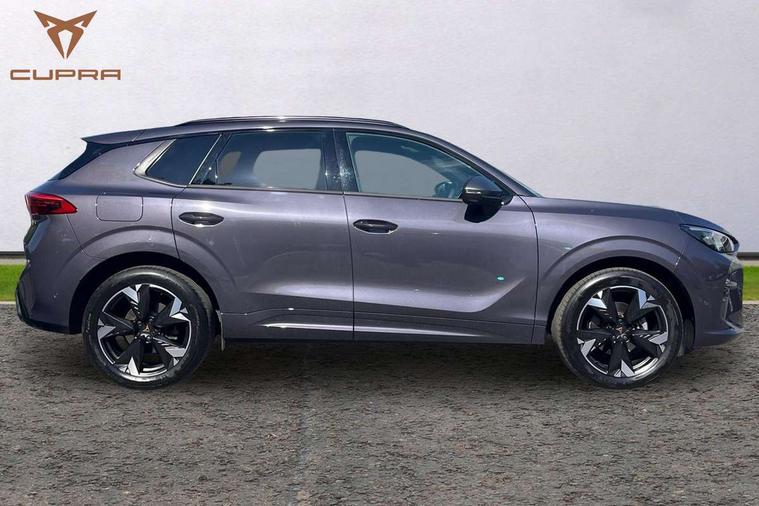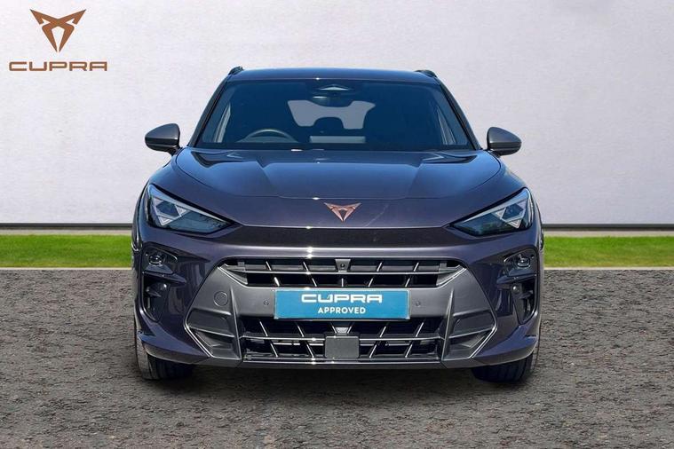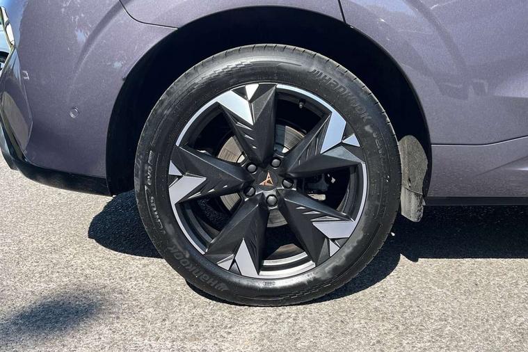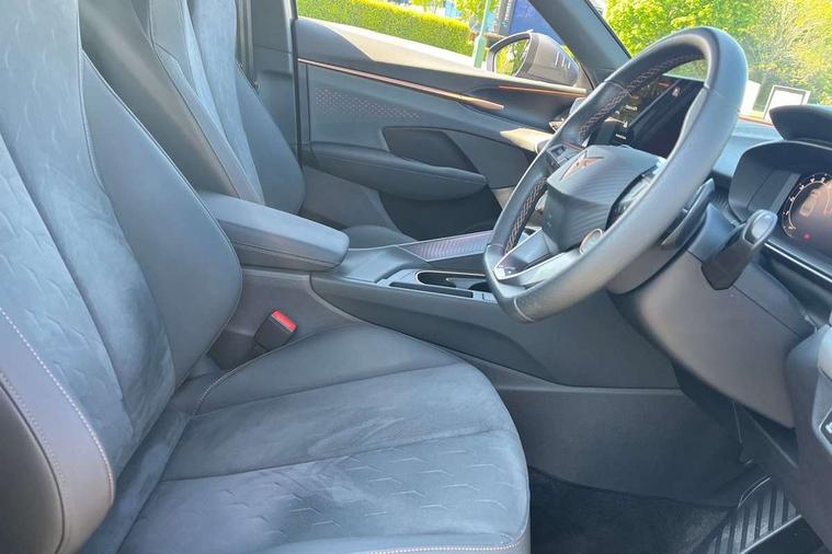 10.25" digital cockpit and configurable dashboard, Adaptive cruise control with follow-to-stop and speed limiter, Advanced driver alert system, Advanced lane assist with semi-automatic vehicle control in a medical emergency and traffic jam assist, Driving profile selection and conventional shock absorber, Dynamic road sign display, E-call, Electric tailgate with virtual pedal, Emergency steering support with turn assist, Front and rear parking sensors, Front assist (Forward collision warning with automatic braking) with multifunction camera and front cross traffic assist, Head up Display, Intelligent park assist, Media system with Nav - 12.9" touch display, voice control, full link phone (wired/wireless), DAB and Steering wheel mounted controls, Rear traffic assist, Side and exit assist, Speed sensitive power steering, Start/stop system with regenerative braking, Top view camera (front camera, rear camera, 2 side cameras), Wireless phone charger, Auto dimming rear view mirror, Black roof rails, CUPRA 3D rear lights with ceremony & swiping indicator and illuminated logo, Dark tinted rear windows, Daytime running lights with automatic headlight control and Coming and Leaving home function, Door mirrors with memory function and lowing function on passenger mirror, Dynamic headlight range control, Electric front/rear windows, Electrically adjustable, heated and folding door mirrors, Front fog lamps with cornering function, Heat reflecting windscreen, High beam assist, LED headlamps with signature "CUPRA LED", Rain sensing wipers, Rear fog light on one side, back up light on both sides, Rear side wing doors, Rear wash/wipe, Third brake light, Welcome lights (within exterior mirror housing), 3 seat bench in 2nd row, Black roof lining, Cupra sports pedals, Dinamica cloth upholstery, Driver seat memory function, Electrically adjustable front seats including lumbar support, Four x USB Type C ports (2 in front and 2 in rear), Front and rear head restraints, Front and rear reading lights X 4, Front centre armrest, Heated front seats, Heated leather wrapped multi function sports steering wheel with tiptronic, Illuminated interior front door sills, Isofix, Operating voltage 12V, Single front passenger seat, Smart wraparound interior lighting, Sunvisors with illuminated mirror, Three zone climate control with control panel in rear, Unsplit rear seat bench, split folding backrest, with centre armrest, Variable luggage/load compartment floor, 3 point seatbelts in front with pretensioner and electric height adjustment, 3 point seatbelts on all rear seats, Brake control system - ESC and brake booster, Child proof door locks, Driver and front passenger airbags, Electronic parking brake, Front and rear disc brakes, Front interaction airbag, Front passenger airbag deactivation switch, Front side airbags with curtain airbags, Pre-crash front and rear seat belt tensioner, window closure and hazard lights, Tyre pressure monitoring system, Visual and acoustic seat belt reminder, electric contact in front and rear, Anti theft alarm, Keyless locking and starting system with keyless access, Locking wheel bolts, Black decorative trims, Chrome interior detailing, 19" Spectrum exclusive machine alloy wheels, Tool kit,