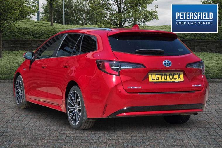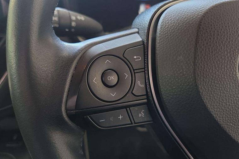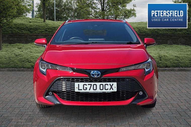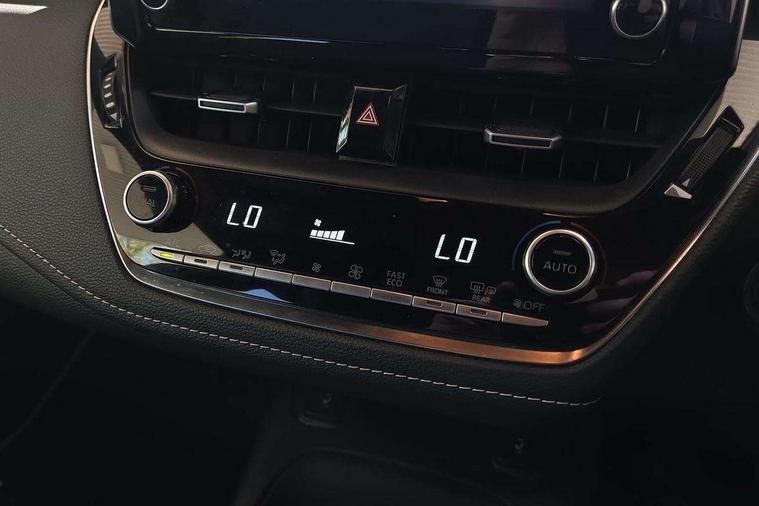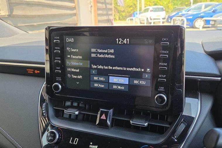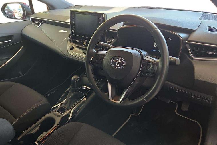 Bluetooth telephone connectivity, E-call, Electrically assisted power steering, Intelligent park assist, Push button start, Reversing camera, Smartphone integration with Apple CarPlay and Android auto, Speed limiter, Voice activation, Vehicle Stability Control (VSC), 2 ring combimeters with 7" colour TFT screen, 6 speakers, 8" multimedia and back monitor, AM/FM radio, DAB Digital radio, Toyota touch 2 with go navigation system, USB and Aux in connectors + 12V front outlet, Anti-jam protection on power windows, Auto dimming inside rear view mirror, Auto up and down function on all power windows, Automatic folding mirrors, Automatic headlights, Body coloured bumpers, LED daytime running lights, LED front fog lights, LED Headlights, LED rear combi lights with LED lightguide, Power adjustable heated door mirrors, Power front windows, Power rear windows, Privacy glass, Rain sensing wipers, Rear window wiper, Reverse tilting door mirrors, Shark fin antenna, 12v power outlet - luggage side, 3 rear headrests, 3 spoke leather steering wheel + gear knob, Clean air filter, Dual zone automatic air conditioning with ECO mode switch, Fabric upholstery, Front head restraints, Heated seats, ISOFIX seat fixing (2 fixings on rear outer seats), Pollen filter, Power lumbar support, Steering wheel switches, Tilt/telescopic steering column, Whiplash Injury Lessening (WIL) feature (active headrest) for seats, Parking pack - Corolla, Toyota safety sense 2 pack - Corolla, 3x3 point rear seatbelts, Adjustable front driver seat belt extender, Anti lock braking system + Electronic brake force distribution, Brake assist function, Electronic parking brake, Front passenger airbag on/off switch, Front seatbelt reminder, HAC - Hill start assist control, Rear seat belt reminder, Seatbelt pretensioners and force limiters, Supplemental restraint system (SRS) 7 airbags - dual driver, dual side curtain, side impact and driver knee airbags, Traction control, Tyre pressure warning system, Alarm/immobiliser, Remote central locking + deadlocks, Tyre repair kit,