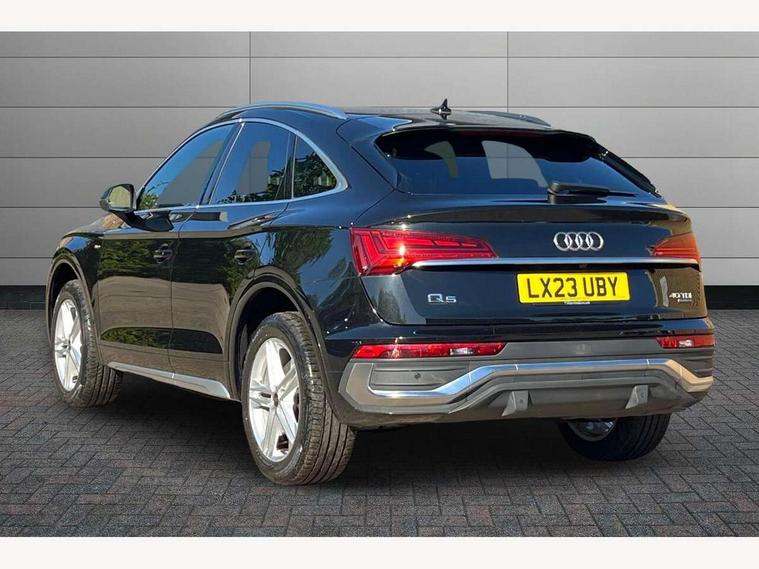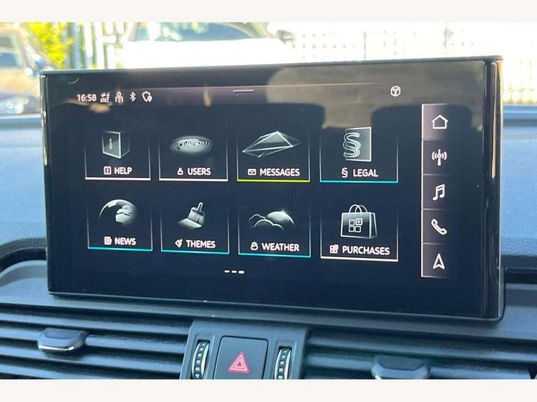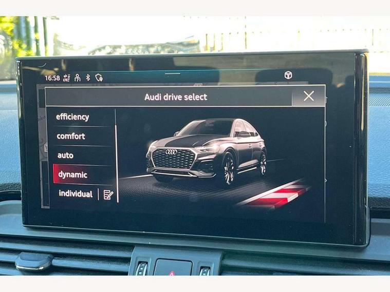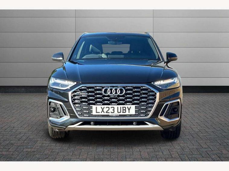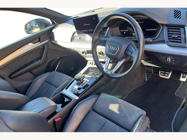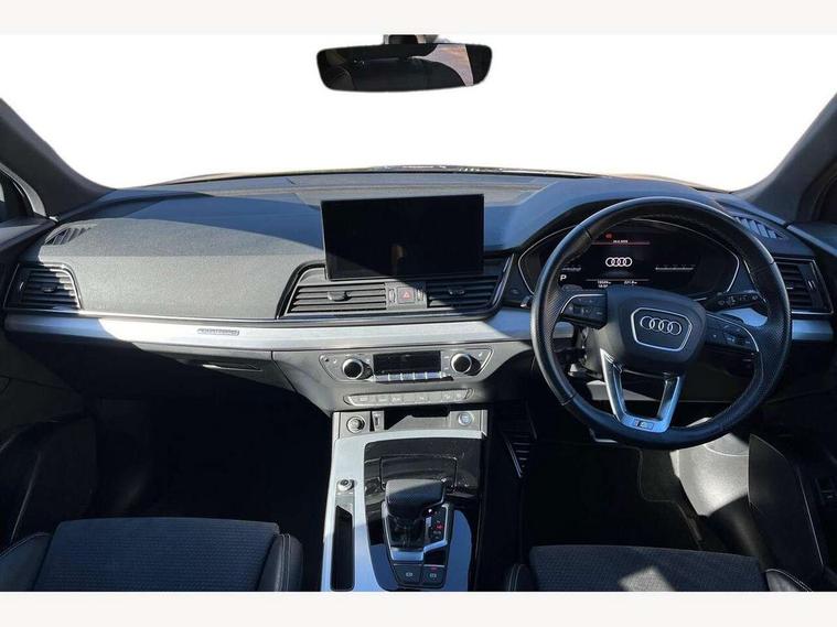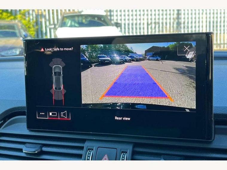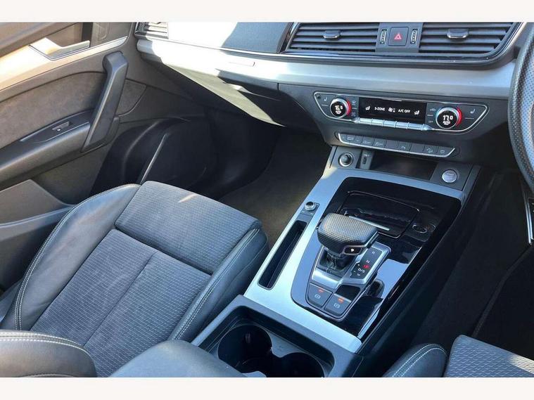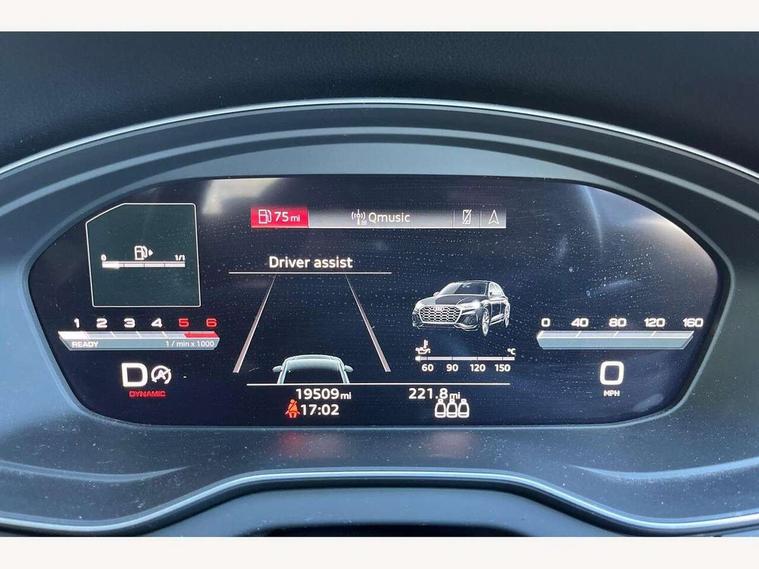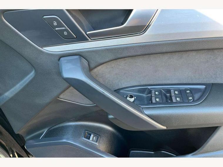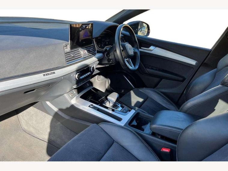 Acoustic front and rear parking sensor, Audi connect safety and service (e-call), Audi connect with Amazon Alexa Integration, Audi drive select, Audi virtual cockpit plus with 12.3" screen and three different layout designs, Audi wireless smartphone interface, Automatic start-stop system with coasting functionality and efficiency programme, Bluetooth interface, Electro - mechanical power assisted steering, MMI navigation plus with 10.1" touch screen, Power tailgate, Reversing camera, Service interval indicator, Voice control system with Audi hotword activation "Hey Audi", Diesel particulate filter, Quattro on demand, S line sports suspension, 2 x USB charging port with aux input socket, 8 loudspeakers, DAB Digital radio, Acoustic windscreen, Aluminium roof rails, Audi matrix LED headlights with dynamic front and rear indicators, Auto dimming door mirrors, Auto dimming frameless rear view mirror, Automatic headlight adjustment, Automatic headlights and windscreen wipers, Body colour door mirrors, Body colour rear diffuser with matt aluminium silver surrounds, Body colour underbody protection, Chrome plated exhaust trims, Daytime running lights, Door sills in Selenite silver, Electric adjustable/heated/folding door mirrors, Front air inlet surrounds in aluminium, Front and rear electric windows, Front radiator grille in honeycomb design, Headlight washers, High level LED brake light, Lower bumpers painted in contrast Manhattan grey, Rear chrome trim strip below lights, Rear privacy glass and rear side windows, Rear side wing doors, Rear wiper, Roof bars, S Line badges on the front wings, S Line front and rear bumpers, S Line rear spoiler, S Line side skirts, 3 rear headrests, 3 spoke leather multifunction steering wheel with S badging perforated leather grips, 40:20:40 split folding 3 rear bench seat in 2nd row with rear centre armrest, Black cloth headlining, Comfort front centre armrest, Contrast stitching on seats, steering wheel and gear lever gaiter, Deluxe 3 zone electronic climate control, Front head restraints, Front/rear floor mats, Gear lever in black leather, Heated front seats, Height/reach adjustable steering column, Illuminated door sill trims with S logo, Manual seat adjustment with 4-way electric lumbar support, Removable luggage compartment floor, Single front passenger seat, Stainless steel pedals, Sunvisors with vanity mirrors, Trunk roller cover, High gloss pack - Q5, LED interior light pack - Q5, 3 point seatbelts on all seats, 6 airbags - Driver, front passenger, curtain and side airbags, Electrically operated child locks on rear doors, Electromechanical parking brake, Electronic stabilisation control including ABS, ASR and EDL, First aid kit with warning triangle and vests, Front passenger airbag deactivation, Hill descent control, Hill hold assist, ISOFIX child seat mounting for front passenger seat and ISOFIX child seat mounting with Top Tether for outer rear seats, Multi collision brake assist, Pop-up bonnet for pedestrian protection, Pre sense city, Seat belt force limiter, Seatbelt monitoring, Tyre pressure warning, Anti theft alarm, Anti-theft wheel bolts, Keyless Go access/ignition system, Remote central locking, Air vents inserts and centre console in gloss black, Matt brushed aluminium inlays,