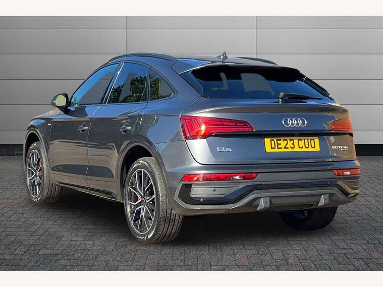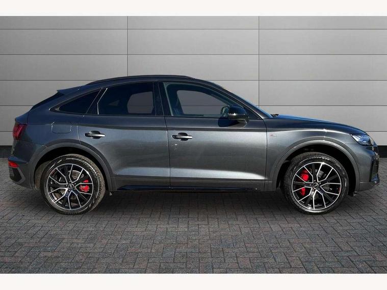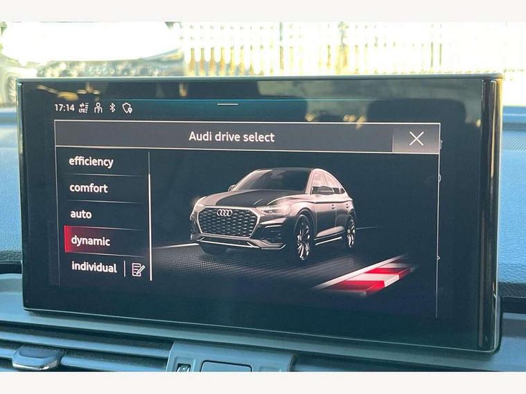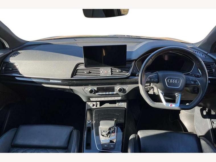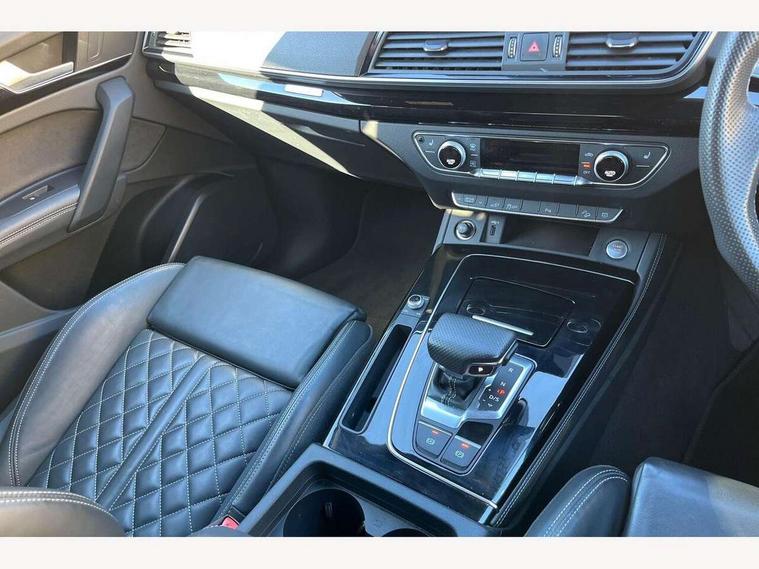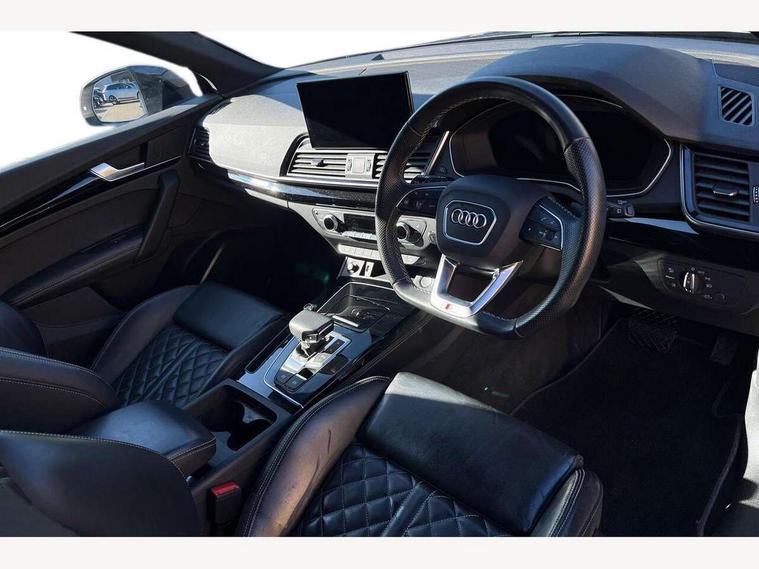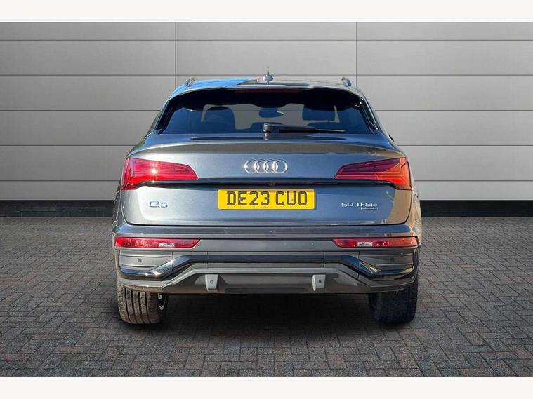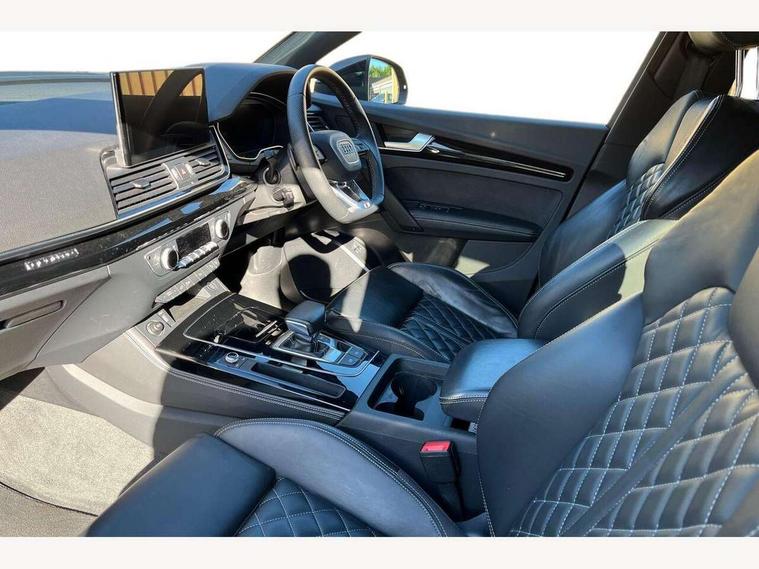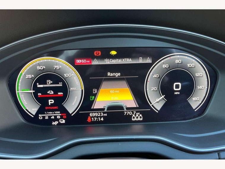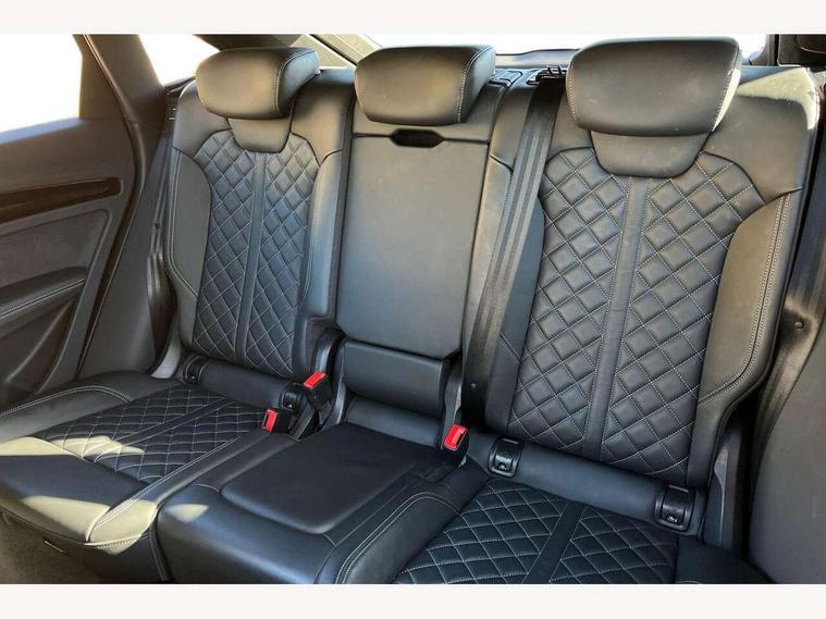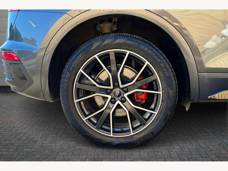 Acoustic front and rear parking sensor, Audi connect safety and service (e-call), Audi connect with Amazon Alexa Integration, Audi drive select, Audi virtual cockpit with 12.3" screen with specific display, Audi wireless smartphone interface, Automatic start-stop system with coasting functionality and efficiency programme, Bluetooth interface, Electro - mechanical power assisted steering, MMI navigation plus with 10.1" touch screen, Power tailgate, Reversing camera, Service interval indicator, Voice control system with Audi hotword activation "Hey Audi", 3 pin 10 amp domestic charging cable, 7.4 kW onboard charger, Dynamic suspension, Industrial connector CEE 32A, 230V, Quattro on demand, Type 2 mode 3 22kW 32 amp charging cable, Type 2 socket for AC charging, 2 x USB charging port with aux input socket, 8 loudspeakers, DAB Digital radio, Acoustic windscreen, Audi matrix LED headlights with dynamic front and rear indicators, Auto dimming door mirrors, Auto dimming frameless rear view mirror, Automatic headlight adjustment, Automatic headlights and windscreen wipers, Black roof rails, Body colour bumpers, Body colour underbody protection, Chrome plated exhaust trims, Daytime running lights, Door sills in Selenite silver, Electric adjustable/heated/folding door mirrors, Front air inlet surrounds in anthracite black, Front and rear electric windows, Headlight washers, High gloss black B pillar trims and triangular rear door trim, High level LED brake light, Rear chrome trim strip below lights, Rear privacy glass and rear side windows, Rear side wing doors, Rear spoiler, Rear wiper, Roof bars, 3 rear headrests, 3 seater rear seat bench, 4 way electric lumbar support for driver and front passenger, Black cloth headlining, Comfort front centre armrest, Contrast stitching on seats, steering wheel and gear lever gaiter, Deluxe 3 zone electronic climate control, Electrically adjustable front seats, Fine Nappa leather upholstery with diamond pattern contrast stitching + front sport seats with S embossed logo, Front/rear floor mats, Gear lever in black leather, Heated front seats, Height adjustable front head restraints, Height/reach adjustable steering column, Illuminated door sill trims with S logo, Rear seat bench plus-adjust for forwards/backwards position/backrest angle, cupholders in the armrest, load through hatch and remote backrest release, Single front passenger seat, Sunvisors with vanity mirrors, Trunk roller cover, Black styling package - Q5 Edition 1, Extended interior upholstery pack - Q5, Extended LED Interior multi coloured Lighting Pack - Q5, 3 point seatbelts on all seats, 6 airbags - Driver, front passenger, curtain and side airbags, Electrically operated child locks on rear doors, Electromechanical parking brake, Electronic stabilisation control including ABS, ASR and EDL, First aid kit with warning triangle and vests, Front and rear brake calipers painted in red, Front passenger airbag deactivation, Hill descent control, Hill hold assist, ISOFIX child seat mounting for front passenger seat and ISOFIX child seat mounting with Top Tether for outer rear seats, Multi collision brake assist, Pop-up bonnet for pedestrian protection, Pre sense city, Seat belt force limiter, Seatbelt monitoring, Tyre pressure warning, Anti theft alarm, Anti-theft wheel bolts, Keyless Go access/ignition system, Remote central locking, Air vents inserts and centre console in gloss black, Piano black finish inlay, Tool kit, Tyre repair kit,