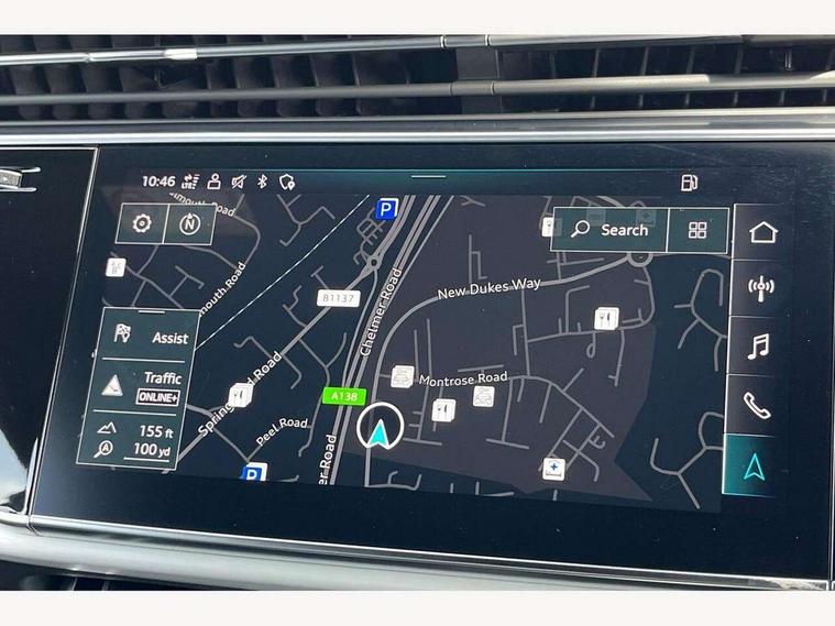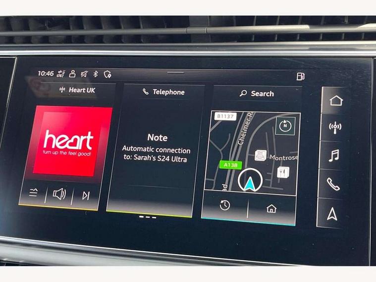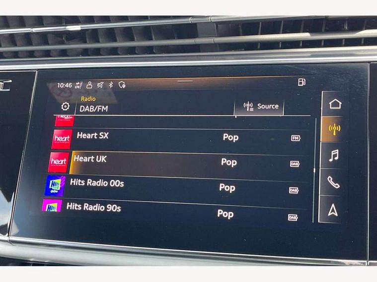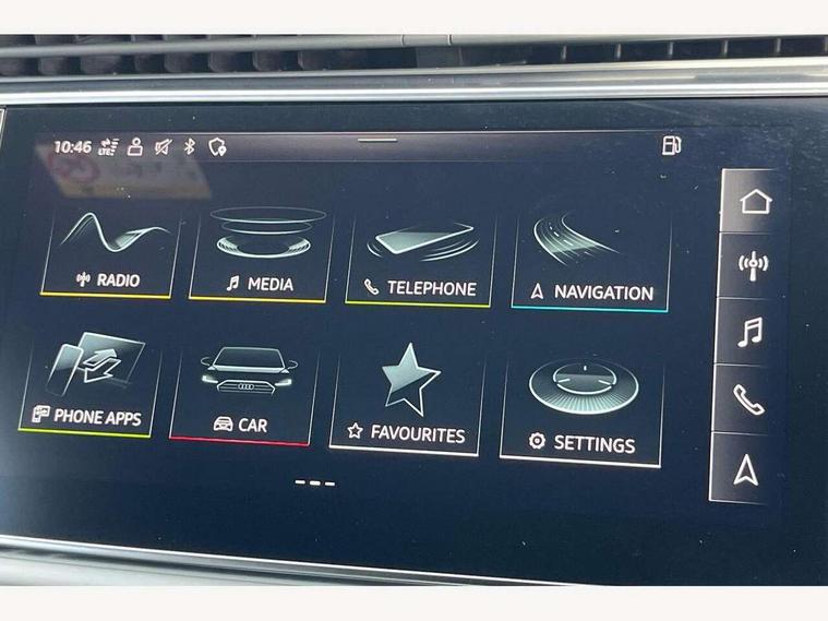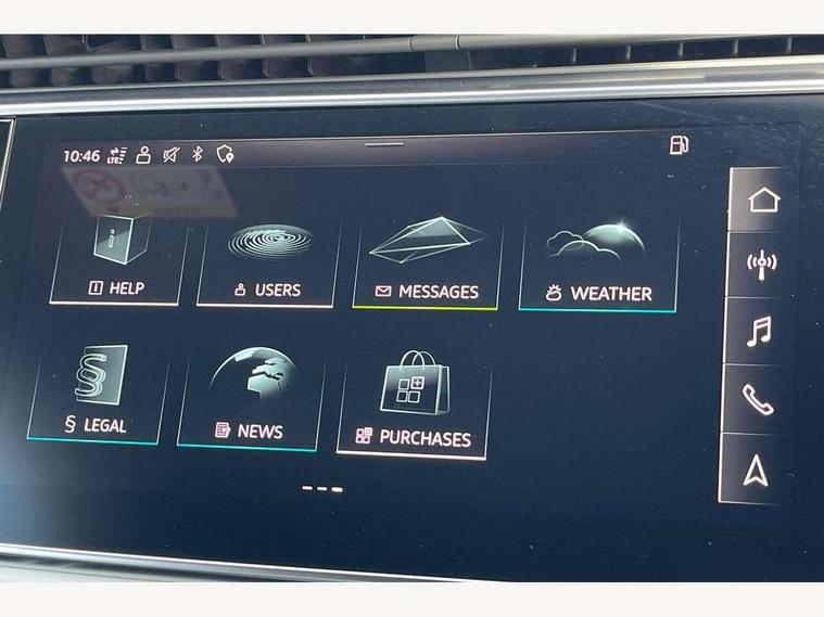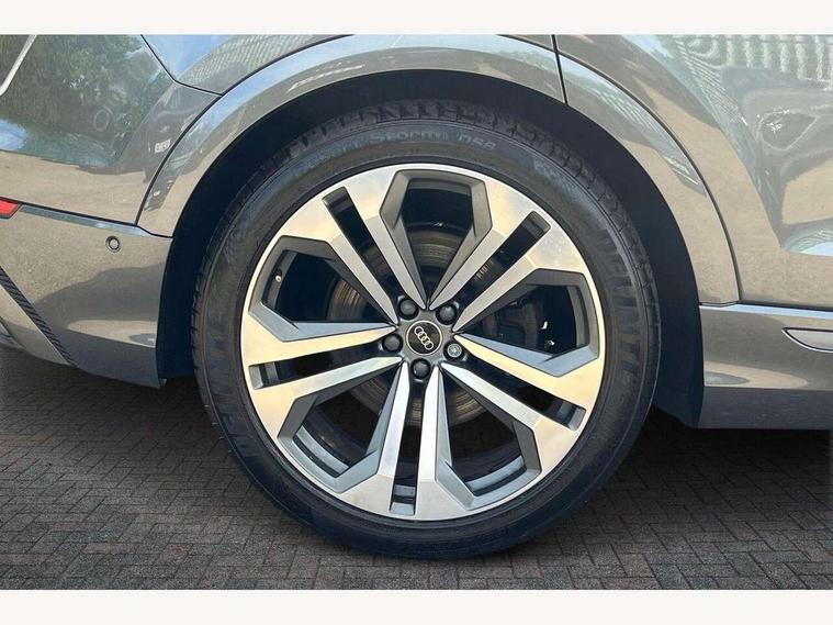 10.1" and 8.6" Dual colour touchscreens, Audi connect safety and service (e-call), Audi connect with Amazon Alexa Integration, Audi drive select, Audi parking system plus includes 360 degree display with front and rear sensors, Audi phone box light with wireless charging, Audi virtual cockpit - 12.3" high resolution LCD display with fully customisable instrument cluster, Automatic start/stop system, Electro-mechanical PAS, Low washer fluid indicator, MMI - Multi Media Interface control system, MMI navigation plus with MMI touch, Natural voice recognition, On board computer, Operating buttons in black, glass look with haptic feedback, Power operated tailgate, Rear view camera, Service interval indicator, Smartphone interface includes wireless Apple carplay/Android Auto, 48V Mild hybrid technology, 85 litre fuel tank, Adaptive sport air suspension, Quattro all wheel drive with self locking centre differential, Audi music interface with 2 USB ports with charge and data functions, Audi sound system with 6 channel amplifier, 180 watt amplifying capacity and 10 loudspeakers including subwoofer, Aux-in socket, DAB Digital radio, 3rd brake light, Acoustic windscreen, Aluminium window trim, Audi HD Matrix LED headlights with dynamic front and rear indicators, Auto dimming frameless rear view mirror, Body colour door mirrors, Coming/leaving home lighting function, Electric front+rear windows, Electrically folding auto dimming/adjustable/heated door mirrors with memory function, LED side indicators and kerb view function for passenger side, Headlight washers, Heat insulating glass in windshield, Illuminated door sill trims with S line logo, LED signature daytime running lights, Platinum grey front spoiler lip and diffuser insert with honeycomb grille in black, Privacy glass - dark tinted rear and rear side windows from B-pillar backwards, Rain and light sensors, Rear side wing doors, Rear wiper, S line badges on front wings, S Line body styling, S line bumpers in full body colour paint finish, S line roof spoiler, S Line side skirts, S line side ventilation grille, 2 zone automatic climate control, 3 bench rear seats in 2nd row, 4-way lumbar support for front seats, 40:20:40 split folding rear bench seat, Audi phone box light, Black cloth headlining, Comfort front centre armrest, Driver seat memory function, Electrically adjustable front seats, Front head restraints, Front/rear floor mats, Heated front seats, ISOFIX child seat mounting for front passenger seat and 2 outer rear seats with top tether child seat mounting for all 3 rear seats, LED interior ambient lighting, Luggage compartment sill protection in stainless steel, Rear centre armrest with 2 cupholders, Rear headrests, Seat cushion displaceable by 100mm in the ratio 60:40, Single front passenger seat, Stainless steel pedals, Sunvisors with illuminated vanity mirrors, 3 point seatbelts on all seats, Audi pre sense front, Child locks on rear doors, Driver and front passenger, front side and curtain airbags, Electromechanical parking brake, Electronic Stability Control (ESC) including ABS, ASR and EDL, Front passenger airbag deactivation, Hill descent control, Hill hold assist, Predictive pedestrian protection, Seatbelt monitoring, Traction control, Tyre pressure loss indicator, Warning triangle and first aid kit, Anti theft alarm with tow away protection, Anti-theft wheel bolts and wheel loosening detection, Immobiliser, Keyless go with remote central locking, Dark matt brushed aluminium inlay, Tool kit, Tyre repair kit,