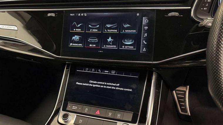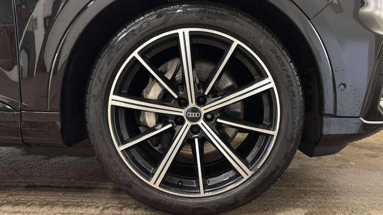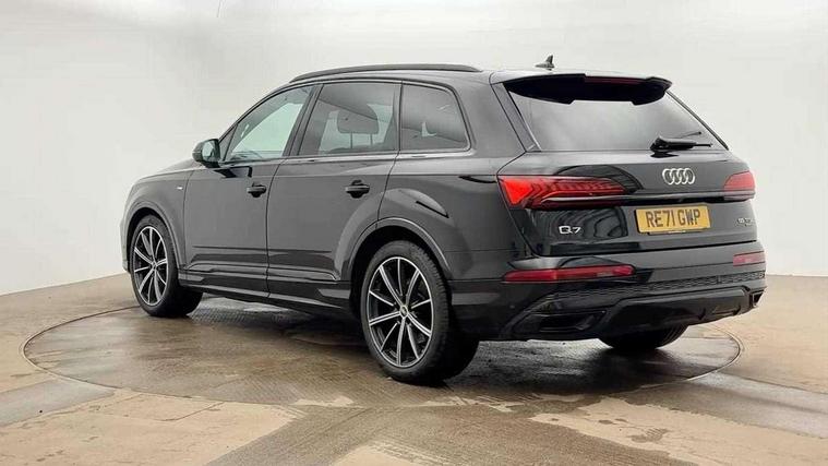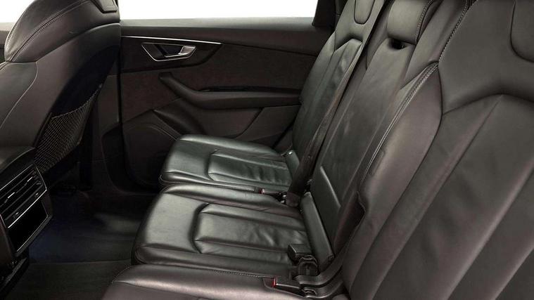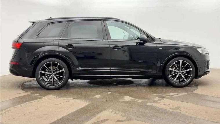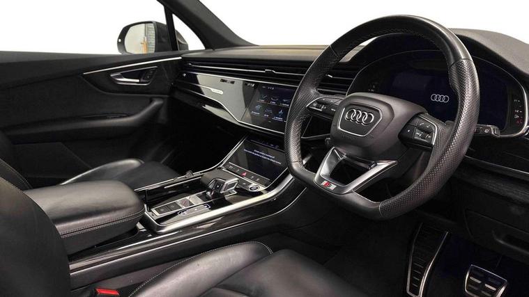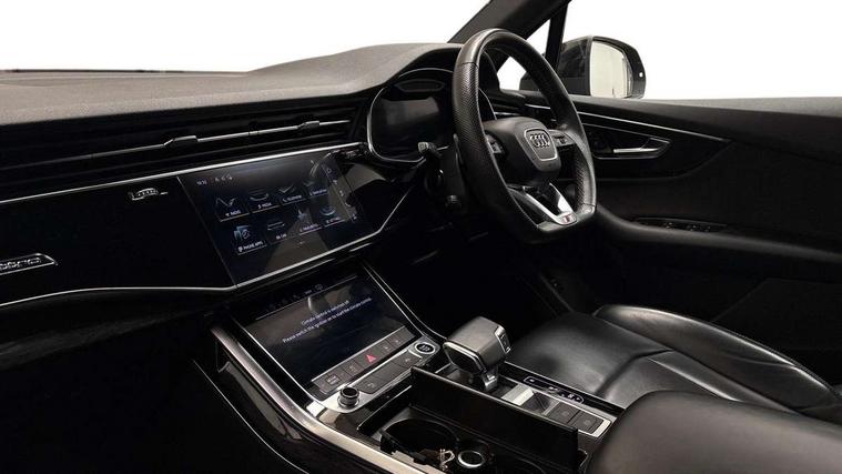 Audi connect safety and service (e-call), Audi connect with Amazon Alexa Integration, Audi drive select (Auto, Comfort, Dynamic, Efficiency, Individual, Off-road and All road), Bluetooth interface, Camera based traffic sign recognition, Electromechanical steering, MMI navigation plus with MMI touch screens includes 10.1" and 8.6" screens with haptic feedback, Natural voice recognition, Parking system plus with 360 degree display (front, rear and side sensors) - acoustic and visual park assist system, Power operated tailgate, Rear view camera, Smartphone interface includes wireless Apple carplay/Android Auto, Start/stop system, 48V Mild hybrid technology, 85 litre fuel tank, Adaptive air sports suspension, Quattro all wheel drive with self locking centre differential, Audi music interface - front 2 USB-C ports with charger and data functions, Audi sound system with 6 channel amplifier, 180 watt amplifying capacity and 10 loudspeakers including subwoofer, DAB digital radio module, 3rd brake light, Audi matrix LED headlights with dynamic front and rear indicators, Auto dimming frameless rear view mirror, Black roof rails, Bumpers in contrast paint scandium grey finish includes door trim and wheel arch trim strips, inlays in door strip contain quattro embossing, Electrically adj heated/folding + automatically dimming exterior mirrors with memory + automatic kerb side function for passenger side exterior mirror, Heat insulating glass in windshield, Integrated LED indications in door mirrors, LED daytime running lights, LED rear tail lights, Privacy glass - dark tinted rear and rear side windows from B-pillar backwards, Rear side wing doors, Rear wiper, 2 seat bench in 3rd row, 3 seat bench in 2nd row, 4 zone deluxe automatic climate control, 7 seat layout with ISOFIX points for the front passenger seat and rear passenger seat, Black cloth headlining, Comfort front centre armrest, Electric adjustable front seat with 4 way lumbar support, driver memory functionality, Folding rear seats, Front head restraints, Front/rear floor mats, Heated front seats, Illuminated door sill trims with S logo, LED interior ambient lighting, Luggage compartment cover, Luggage compartment sill protection in stainless steel, Rear head restraints, Single front passenger seat, Stainless steel pedals, Sunvisors with illuminated vanity mirrors, Titanium black styling pack - Q7/SQ7, 3 point seatbelts on all rear seats, Audi pre sense front, Child locks on rear doors, Driver and front passenger, front side and curtain airbags, Electromechanical parking brake, Electronic Stabilisation Control (ESC) including ABS, ASR and EDL, Extended pedestrian protection measures, Hill hold assist, Seatbelt monitoring, Tyre pressure loss indicator, Warning triangle and first aid kit, Anti theft alarm, Anti-theft wheel bolts and wheel loosening detection, Keyless Go, Remote central locking, Polished oak trim with grey finish inlay, Tool kit, Tyre repair kit,
