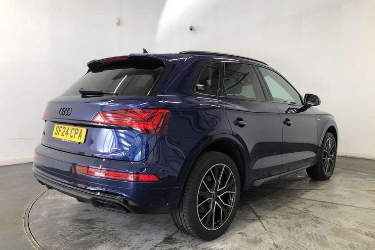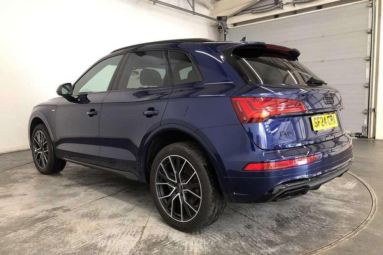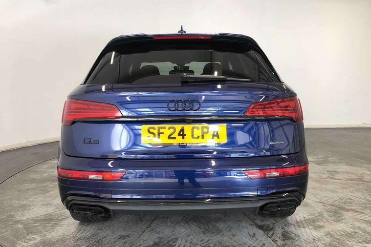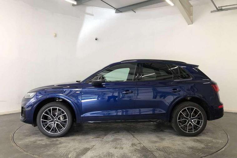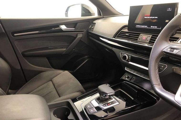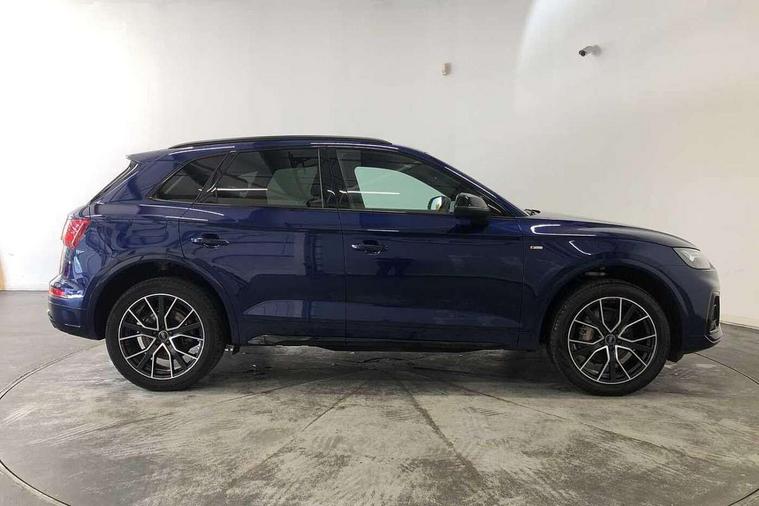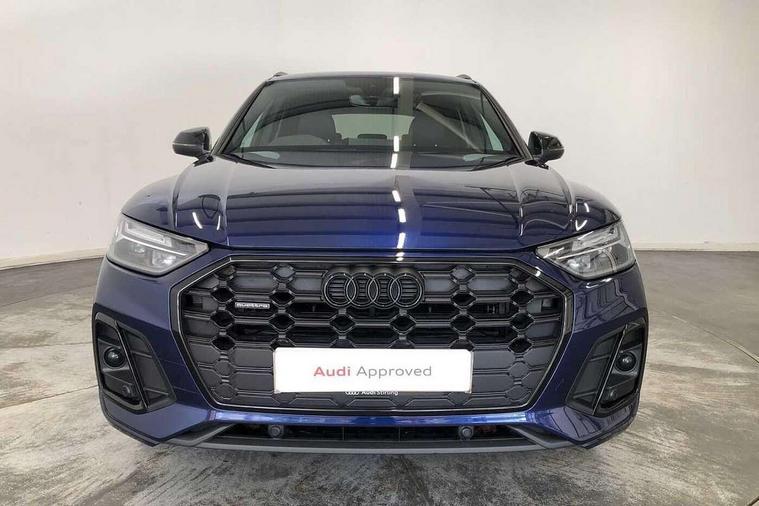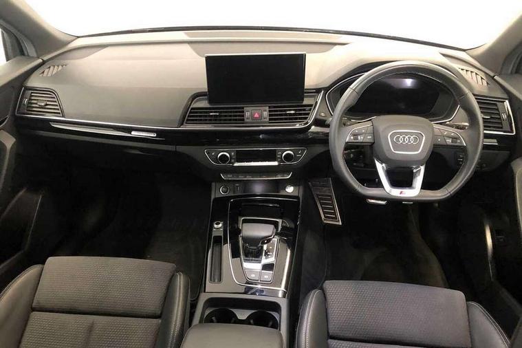 Acoustic front and rear parking sensor, Audi connect safety and service (e-call), Audi drive select, Audi virtual cockpit plus with 12.3" screen and three different layout designs, Audi wireless smartphone interface, Automatic start-stop system with coasting functionality and efficiency programme, Bluetooth interface, Camera based traffic sign recognition, Electro - mechanical power assisted steering, Lane departure warning, MMI navigation plus with 10.1" touch screen, Power tailgate, Reversing camera, Service interval indicator, Voice control system with Audi hotword activation "Hey Audi", Quattro on demand, S line sports suspension, 8 loudspeakers, DAB Digital radio, Acoustic windscreen, Auto dimming door mirrors, Auto dimming frameless rear view mirror, Automatic headlight adjustment, Automatic headlights and windscreen wipers, Black roof rails, Black styling with black rings, Body colour bumpers, Body colour rear diffuser with matt aluminium silver surrounds, Body colour underbody protection, Chrome plated exhaust trims, Daytime running lights, Door sills in Selenite silver, Electric adjustable/heated/folding door mirrors, Front air inlet surrounds in aluminium, Front and rear electric windows, Front radiator grille in honeycomb design, LED 3rd brake light, LED headlights and LED tail lights, Loading edge protection in stainless steel, Lower bumpers painted in contrast Manhattan grey, Rear chrome trim strip below lights, Rear privacy glass and rear side windows, Rear side wing doors, Rear wiper, Roof bars, S Line badges on the front wing panels, S Line front and rear bumpers, S Line rear spoiler, S Line side skirts, 2 x USB charging port with aux input socket, 3 rear headrests, Black cloth headlining, Comfort front centre armrest, Contrast stitching on seats, steering wheel and gear lever gaiter, Deluxe 3 zone electronic climate control, Front head restraints, Front sport seats with S embossed logo, Front/rear floor mats, Gear lever in black leather, Heated front seats, Height/reach adjustable steering column, Illuminated door sill trims with S logo, Luggage compartment cover, Manual seat adjustment with 4-way electric lumbar support, Single front passenger seat, Stainless steel pedals, Sunvisors with vanity mirrors, Tool kit, Top surface of the rear centre armrest in artificial leather, High gloss pack - Q5, LED interior light pack - Q5, 3 point seatbelts on all seats, 6 airbags - Driver, front passenger, curtain and side airbags, Attention and drowsiness assist, Electrically operated child locks on rear doors, Electromechanical parking brake, Electronic stabilisation control including ABS, ASR and EDL, First aid kit with warning triangle and vests, Front passenger airbag deactivation, Hill descent control, Hill hold assist, ISOFIX child seat mounting for front passenger seat and ISOFIX child seat mounting with Top Tether for outer rear seats, Multi collision brake assist, Pop-up bonnet for pedestrian protection, Pre sense city, Seatbelt monitoring, Tyre pressure warning, Anti theft alarm, Anti-theft wheel bolts, Remote central locking, Remote control key with SAFELOCK and keyless go, Air vents inserts and centre console in gloss black, Tyre repair kit,