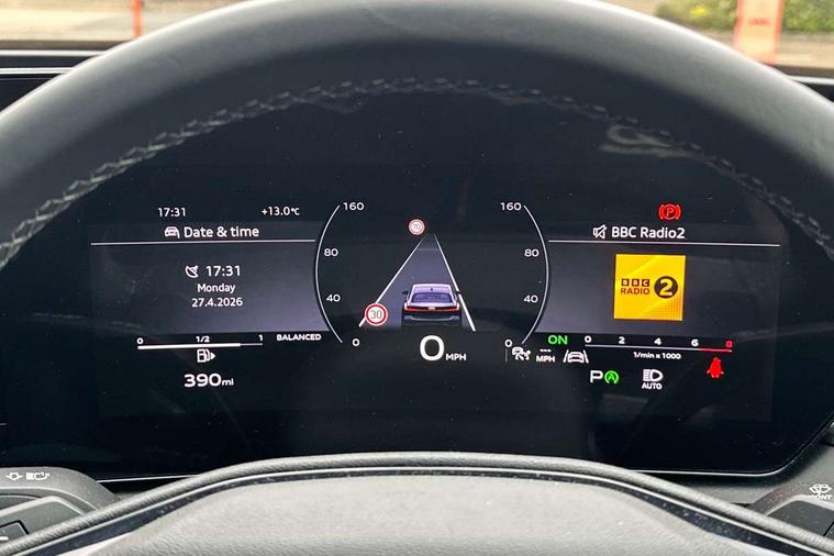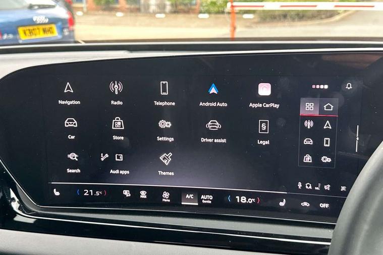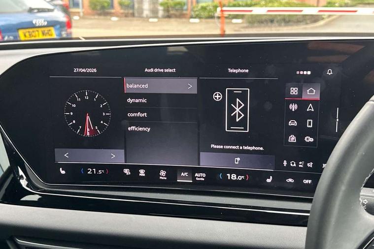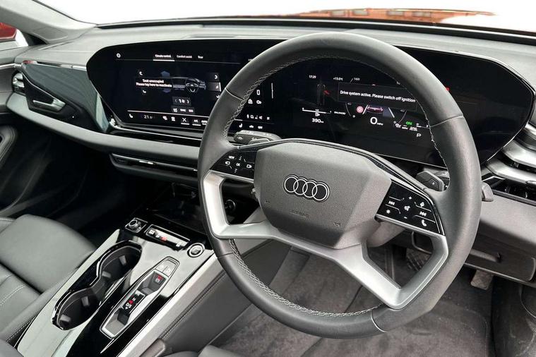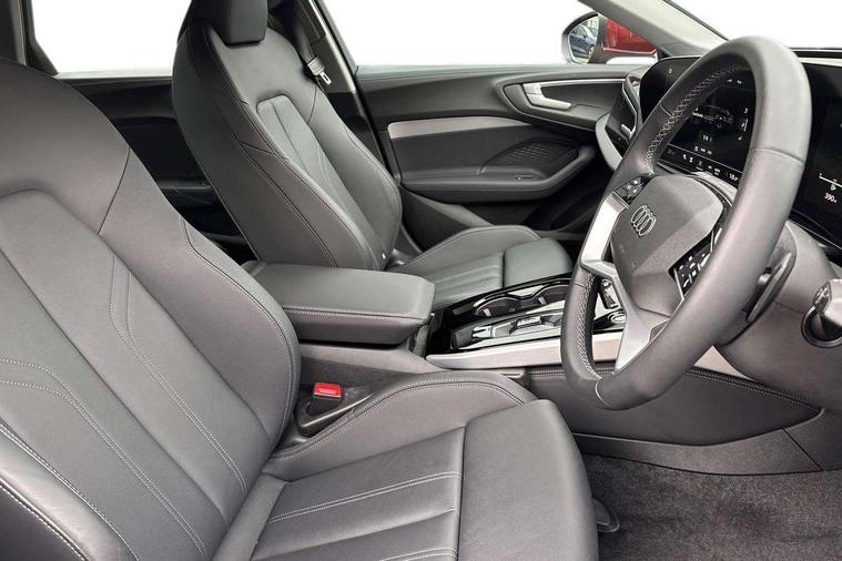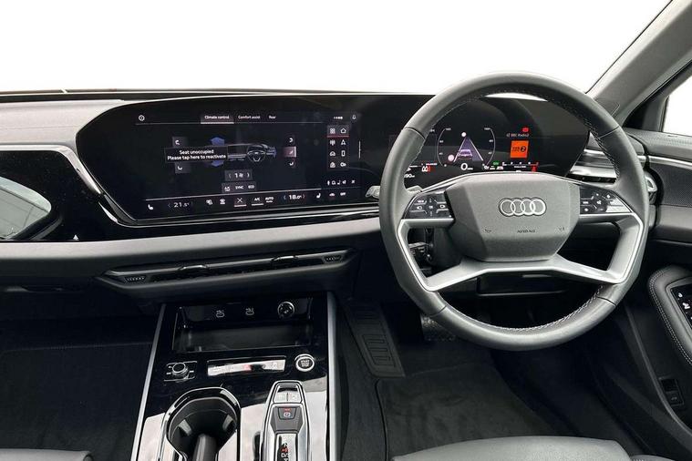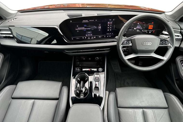 Adaptive cruise control, Advanced driver attention and fatigue montior, Audi application store, Audi assistant, Audi connect emergency call and service, Audi drive select, Audi smartphone interface, Audi virtual cockpit plus with 11.9" OLED colour display, Automatic start/stop system with coasting functionality, Camera based traffic sign recognition, Intersection assist, Lane departure warning, MMI navigation plus with high resolution 14.5" OLED touchscreen colour display, Park assist plus, Parking system plus with 360 display, Progressive steering with servotronic, Rear view camera, Swerve assist and turn assist, Traffic sign based speed limiter, Comfort suspension, 2 USB-C ports in both the front and rear, Audi sound system impressive sound with 10 loudspeakers including centre speaker and subwoofer, 6-channel amplifier with a total output of 180 watts, DAB digital radio reception, Smartphone compartment with wireless charging, Aluminium window trims, Auto dimming rear view mirror, Body colour door mirrors, Door mirrors - electrically adjustable, heated, folding and auto dimming on both sides, Front and rear electric windows, Front door sill trims with aluminium inlays, illuminated, High beam assist, LED headlights Plus incl. digital daytime running lights, turning light, all-weather light, motorway light, manouevring light and intersection light, LED rear lights pro incl. dynamic rear indicators and illuminated light strip with animated coming and leaving home function, LED third brake light, Rear and side windows with heat insulating glass, Rear boot, Rear side wing doors, Sport bumpers, radiator grille and diffuser in scandium grey and diffuser insert in matt selenite silver, White rhombus logo projection light in exterior mirrors, Windscreen with acoustic glazing, 3 rear headrests, 3 seat rear bench, 3-zone automatic climate control, 40:20:40 split folding rear seat bench with centre armrest and cup holders, Comfort front centre armrest, Front and rear floor mats, Front seats with manual adjustment for position and 4-way electric lumbar support, Front sport seats with integrated head restraints, Heated front seats, i-Size child seat mounting on the front passenger side and outer rear seats, i-Size and top tether on the outer rear seats, Luggage compartment lid, electrically opening and closing, Manual steering column height and depth adjustment, Rock grey cloth headlining, Single front passenger seat, Twin leather upholstery, Twin spoke leather steering wheel with multi-function buttons with touch control, shift paddles and trim in chrome look, Ambient lighting package plus - A5, 3x3 point rear seat belts, Driver airbag, Electric child safety locks, First aid kit with warning triangle and vests, Front emergency brake assist, Front passenger airbag, Front passenger airbag deactivation, Front side airbags with head airbag system and front interaction airbag, Hill hold assist, Seat belt monitoring with rear seat occupant reminder, Tyre pressure loss indicator, Anti theft alarm, Anti-theft wheel bolts, Keyless Go, Accent surfaces and control buttons in gloss black, Black dashboard with contrast stitching, Inlays in matt brushed aluminium, silver, Softwrap in leatherette with contrast stitching, Upper and lower interior elements in leatherette, Tyre repair kit,