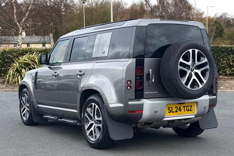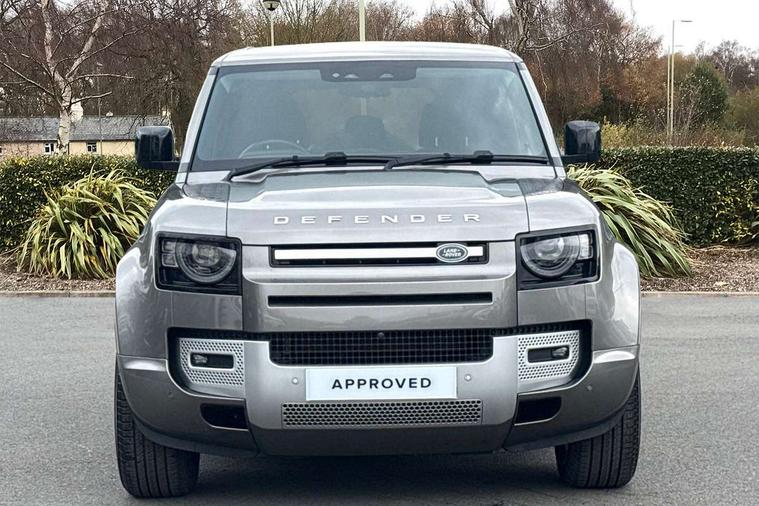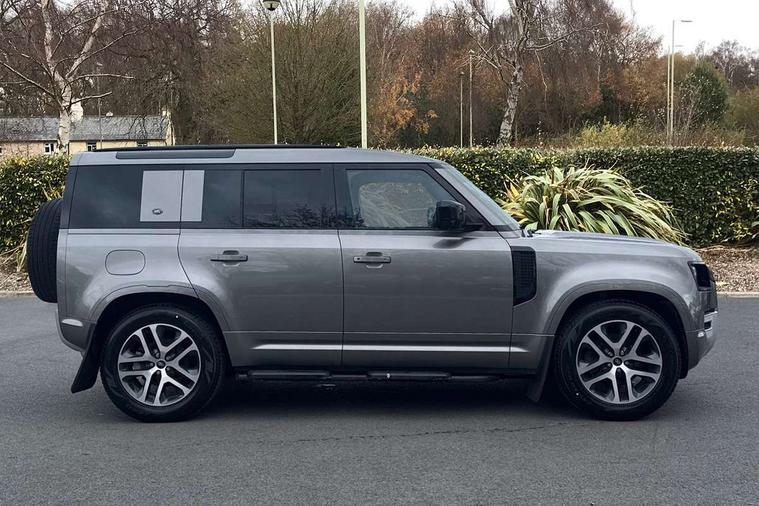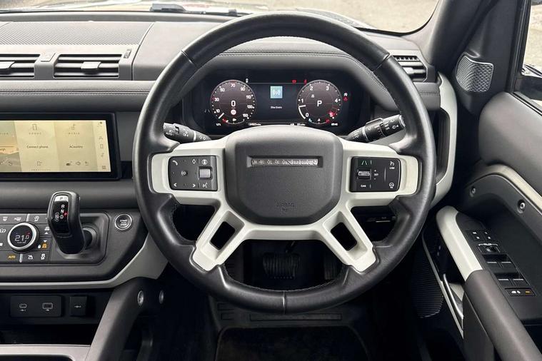 360 degree parking aid, 3D Surround Camera with 360 View, 180 Rear View, Front Traffic Detection, Forward Vehicle Guidance, Tow Hitch Assist and clear sight Ground View, Android Auto, Apple CarPlay, Assisted tailgate with soft close, Blind spot assist, Bluetooth system, Brake pad wear indicator, Clear exit monitor, Connected navigation pro, Cruise control + speed limiter, Driver condition monitor, Electric power assisted steering (EPAS), Interactive driver display, Lane keep assist, Push button start, Rear traffic monitor, Traffic sign recognition with adaptive speed limiter, Trip computer, Wade Sensing, 8 speed automatic transmission, Adaptive dynamics, All wheel drive system, Electronic air suspension, Twin speed transfer box, DAB Radio (Digital Audio Broadcasting), Pivi pro connected, Automatic headlight levelling, Automatic headlights, Body coloured roof, Centre high mounted stop light, ClearSight interior rear view mirror, Electric heated/power fold door mirrors with approach lights and auto dimming driver side, Electric windows with one touch open/close and anti-trap, Follow me home lighting, Front fog lights, Heated rear window with timer, Heated windscreen, Illuminated metal treadplates with brand name script, LED tail lights, Matrix LED headlights with signature DRL, Privacy glass, Puddle lights, Rain sensing windscreen wipers, Rear fog lights, Rear side wing doors, Rear wiper, Side hinged tailgate, Signature graphic (with interior storage), Sliding panoramic roof, Trailer stability assist, 12 way heated and cooled electric memory front seats with 2 way manual headrests, 12V power socket in loadspace, 3 seat bench in 2nd row, 40:20:40 folding rear seats with centre armrest, Alpine lights, Configurable cabin lighting, Durable rubber cabin flooring, Durable rubber loadspace flooring, Electric cabin pre conditioning, Electric reach + rake adjustable steering column, Footwell lights, Front centre console refrigerator compartment, Front passenger isofix child seat attachment, Grained Leather upholstery, Heated steering wheel, Leather gearshift, Light oyster morzine headlining, Loadspace cover, Loadspace Hook, Multifunction steering wheel, Overhead stowage for sunglasses, Premium cabin lighting, Rear headrests, Rear ISOFIX, Rear reading lights, Single front passenger seat, Standard interior, Standard leather steering wheel, Standard seat configuration, Storage glovebox, Sunvisors with illuminated vanity mirrors, Online pack with data plan - Defender, XS Edition exterior pack - Defender, 5 x 3 point seatbelts, ABS, Brake hold function, Cornering brake control (CBC), Cross car beam in light grey powder coat brushed finish, Customer configurable autolock, DSC - Dynamic Stability Control, EBD - Electronic brakeforce distribution, Electric parking brake (EPB), Emergency brake assist, Emergency braking, ESP + traction control, Front airbags with passenger seat occupant detector, HDC - Hill descent control, Hill launch assist, Low traction launch, Power operated child locks, Remote for (e-Call, Optimised assistance call, InControl app, Climate, beep and flash and door), RSC - Roll stability control, Seat belt reminder, TPMS (Tyre pressure monitoring system), Alarm, Immobiliser, Intrusion sensor, Keyless entry, Locking wheel nuts,