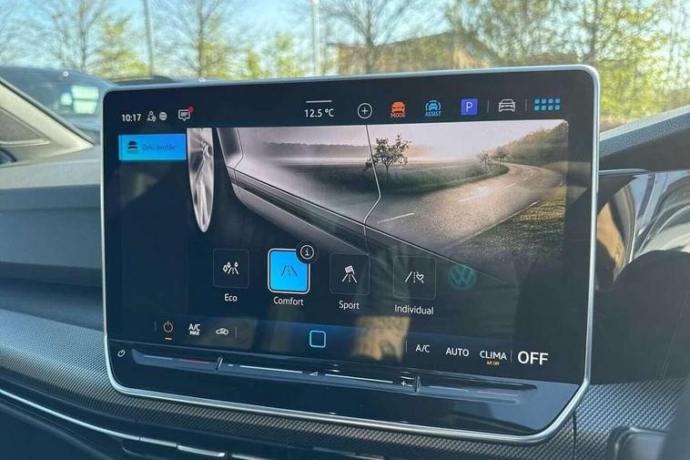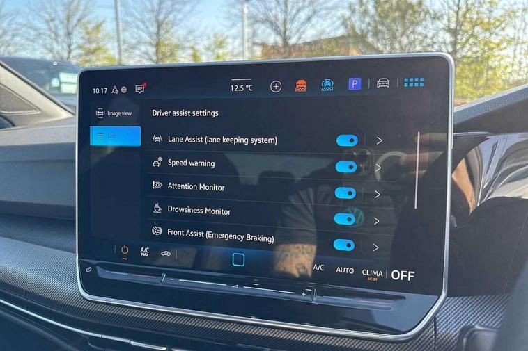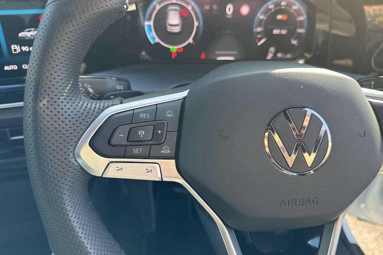 Activated carbon canister, Adaptive cruise control (ACC), Advanced driver attention and drowsiness monitor, Dynamic road sign display, Dynamic steering, E-Sim card for online connectivity, eCall emergency call system, Multi-color Digital cockpit pro, selection of different info profile possible, Multifunction front facing camera for distance control, Navigation system, Oncoming vehicle braking when turning including swerve support, Preparation for light assist system, Speed limiter, Speedo, rev counter, electronic odometer, trip, service interval display, exterior temperature and fuel gauge, Traffic jam assist, Voice enhancer and voice control, Warning signal and warning light for front and rear seatbelts not fastened, We connect plus preparation, We connect preparation, Wireless app connect, Diesel particulate filter, Hybrid propulsion system, Start-stop system with battery regeneration (recuperation - energy recovery during braking), XDS electronic differential lock for improved traction and handling, 2 USB C ports in front, 2 USB charging sockets on the centre console in the rear charging capacity upto 45W, Comfort telephony + wireless charging, without wireless aerial connection, Digital radio reception (DAB), Diversity antenna for FM reception, Gaming platform via car app, Infotainment system with 12.9" display, Mobile phone interface with inductive charging feature, 3rd brake light, Auto headlights, Automatic headlamp activation with Coming home and Leaving home feature, Body colored bumpers in R-Line style, Body colour door handles, Exterior ambient lighting with illuminated door handles, Exterior mirrors convex on the left and aspherical on the right, Front and rear electric windows, Heat insulating windshield made of laminated glass, LED daytime running lights, Rear exhaust tailpipe, Rear fog light on one side and reversing lights on both sides, Rear side wing doors, Rear windscreen washer and wiper with interval delay, Remote electrically foldable door mirrors, puddle lights and reverse activated passenger's door mirror, Welcome light with surround lighting, 12V socket in front centre console, 12V socket in luggage compartment, 3 rear head restraints, 3 seat bench in 2nd row, Ambient lighting with 30 colour including LED light unit in front footwell with selectable light colour, Brushed stainless steel pedals, Carpet mats, front and rear, Chrome plated radiator grille inserts, air vent surrounds and light switch surrounds, Front centre armrest, Integrated front head restraints, ISOFIX anchors for child seats on outer rear bench seats and on front passanger seat compatible for i-Size, Luggage compartment lighting, Plastic gear knob, Premium sports seats in front, Rear cupholder and loadthough, Single front passenger seat, Soul black instrument panel, Split folding backrest with centre armrest and unsplit rear seat bench, Storm grey roof lining, Sun visors with illuminated vanity mirrors, 3 point height adj front seatbelts + pretensioners, 3 rear three point seatbelts, ABS, Autonomous emergency braking front assist with pedestrian and cyclist monitoring, Child locks on rear doors, Driver and front passenger airbag with front passenger airbag deactivation, Electronic parking brake with auto hold, ESC (Electronic Stability Control), Extended pedestrian protection measures, Hill start assist, Rear disc brakes, Two tone horn, Tyre pressure loss indicator, Volkswagen roadside assistance, Anti theft wheel bolts, Preparation for alcohol interlock, Decorative inserts carbon grey for dashboard and front door trim panels,