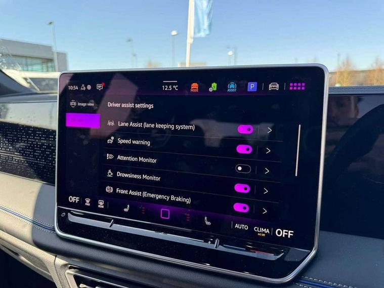 Adaptive cruise control (ACC), Advanced driver attention and drowsiness monitor, Bluetooth mobile phone interface, Digital Cockpit Pro - 10.25" high resolution dash display screen with customisable menus and information, Driving profile selection, Dynamic road sign display, E-Sim card for online connectivity, Easy Open and Close Electric tailgate with virtual pedal activation, eCall emergency call service, Extended safety system (proactive passenger protection system), Front Assist - Autonomous emergency braking with pedestrian and cyclist monitoring, IDA voice assistance with ChatGPT, Inductive smartphone charging without external antenna connection, Lane change system, Side assist, Rear traffic alert and Exit warning system, Multifunction front facing camera, Navigation system, Oncoming vehicle braking when turning including swerve support, Park assist plus with park distance control, Power assisted steering with speed sensitive, Progressive steering, Start/stop system with regenerative braking, Tailgate/trunk lid unlocking from outside, Warning signal and warning light for front and rear seatbelts not fastened, Wireless App-Connect, Adaptive chassis control DCC pro includes driving mode selection, Charging cable Mode 2 Type 2 / G (10A), Charging cable Mode 3 Type 2 / 3 (32A), Front shock absorption G08, Front wheel drive, Rear shock absorption, 12.9" infotainment display, Digital radio reception (DAB), Diversity antenna for FM reception, 3D rear combination light special signal pattern, Ambient lighting with logo projection, Auto dimming interior rear view mirror, Automatic headlight control system, Body coloured door handles, Chrome moldings on the side windows, Coming/leaving home lighting function, Dynamic headlight range control with dynamic cornering light, Exterior mirrors convex on the left and aspherical on the right, Heat insulating glass in side and rear windows, Heat insulating windshield, High Beam Assist, automatic sensing for switching between dipped and main beam, High level 3rd brake light, Highway light, Illuminated door handle recesses, Illuminated lightline between headlamps, Illuminated logo front and rear, Laminated safety glass windshield, LED headlamps, LED separate signature day time running light, Poor weather light, Rain sensor windscreen wipers, Rear fog light on one side, reversing light on both sides, Rear side wing doors, Rear wiper, Remote electrically foldable door mirrors, puddle lights and reverse activated passenger's door mirror, 12V outlet in center console rear and in luggage compartment, 12V socket in centre console, 2 USB-C ports in the front, 2 USB-C charging sockets on the centre console in rear, charging capacity up to 45 W, 3 bench rear seats in 2nd row, Air care climatronic 3 zone air conditioning system with rear air conditioning control panel, Black roof lining, Brushed stainless steel pedals, Carpet mats, front and rear, Centre console with illuminated storage compartment with sliding cover and two drinks holders, Chrome elements on the mirror switch and power window switches and door pulls, Door and side trim panel insert in Art velour, Drivers seat with manual adjustment of seat travel and height and backrest angle with thigh support longitudinally sliding, Front centre armrest, Front integrated head restraints, Front massage seats, Front scuff plates in aluminium, Front seats with manual height adjustment, Greyson sports cloth upholstery with inner side bolsters in artvelours, Interior ambient lighting with 30 colour options, ISOFIX anchors for child seats on outer rear seats and front passenger seat compatible with i-Size, Leather wrapped heated multifunction steering wheel with touch control and paddle shift, Mechanical rear seat release, Power adjustable lumbar support in front, Rear bench seat, split folding, longitudinally movable and folding with load-through hatch and centre armrest, Safety optimised front head restraints, Single front passenger seat, Sports comfort seats in front, Sun visors with illuminated vanity mirrors, Three rear head restraints, 3 point seat belt for centre rear seats, 3 Point seat belts in front with pretensioners, 3 point seatbelts in outer rear with ECE label, Driver and front passenger airbag with front passenger airbag deactivation, Electronic parking brake with auto hold, First aid kit with warning triangle and safety vest, Front and rear curtain airbags, Front centre airbag, Front disc brakes, Hill start assist, Manual child proof rear door locks, Rear disc brakes, Rear side airbags, Two tone horn, Tyre pressure monitoring system, Alarm with interior protection, Central locking system keyless entry, Interior door handle in matte chrome, Soul instrument panel, Tyre mobility kit including compressor and sealing foam,