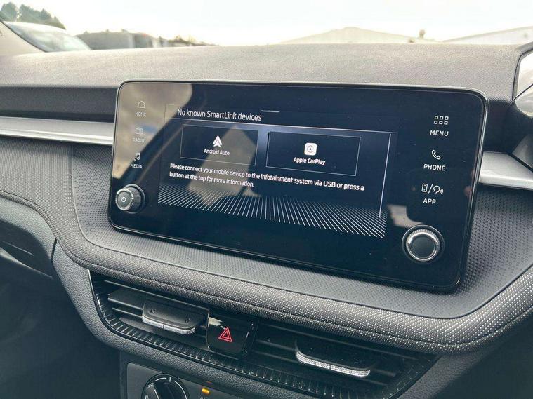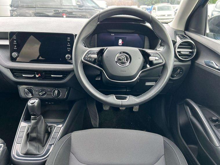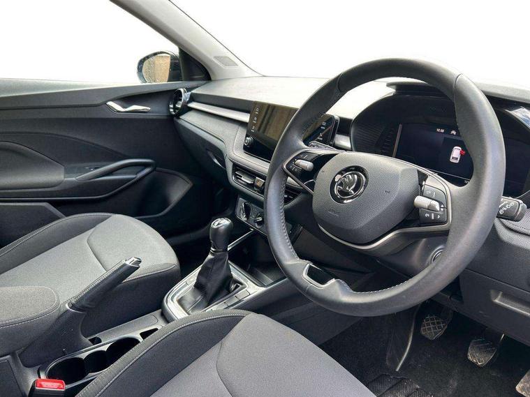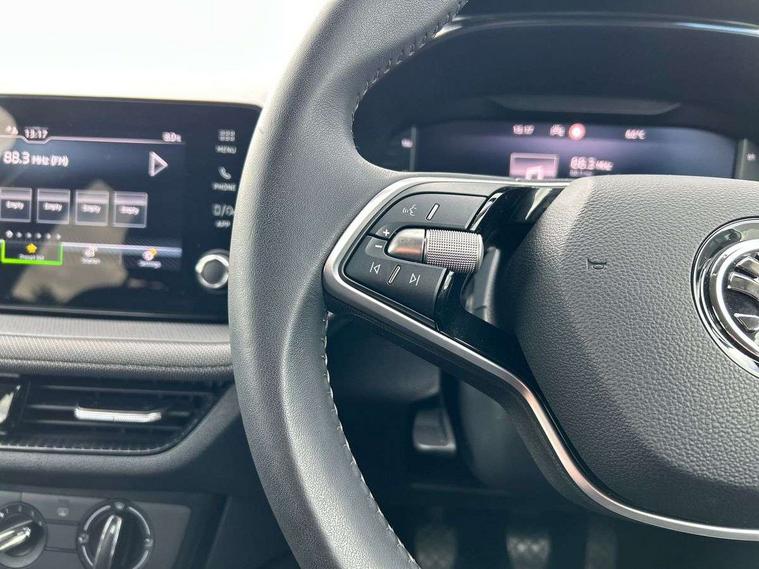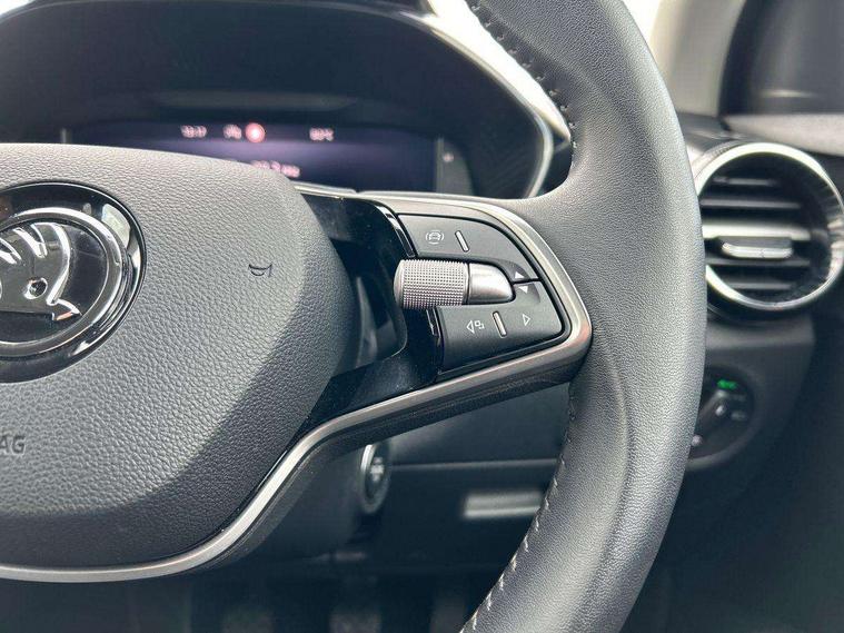 Advanced driver attention and drowsiness monitor, Bluetooth connection, Electromechanical power steering, Exterior temperature gauge, Service interval indicator, Traffic sign recognition, Virtual cockpit with 10.25" colour display, Wireless SmartLink for Apple CarPlay and Android Auto, 6 Speakers (4 in front and 2 in rear), Auxiliary socket for external MP3 player, DAB digital radio reception, Body coloured bumpers, Dimming rear view mirror with black frame, Door mirror integrated indicators, Front and rear electric windows, Front window wiper intermittent control, Headlight range control - Automatic, Ice scraper in fuel cap, LED daytime running lights with coming and leaving home feature, LED rear lights, Privacy glass, Rear LED fog light, Rear side wing doors, Rear window wiper with washing nozzles, Roof mounted spoiler, SKODA tailgate lettering in chrome, Third brake light, 2 reading lights in front and 2 reading lights in rear, 3 rear headrests, Backrest split and folding, Central console with removable cup holder and storage box, Chrome handbrake release button, Fabric upholstery, Front centre armrest, Gearshift knob/handle in leather, Grain satin black interior door handles, Hand brake lever handle in leather, Height adjustable front headrests, Height adjustable steering wheel, ISOFIX and TopTether anchorage points to the outer rear seats, ISOFIX and TopTether on the front passenger seat, Luggage compartment lighting, Manually adjustable lumbar support in front seats, Pollen filter, Rear seat bench unsplit, Single front passenger seat, Storm grey headlining, Sun visors with mirror and airbag label on passenger side, Textile floor mats, Ticket holder, Umbrella in drivers door, 3-point height adjustable front seats belts with pretensioner and force limiter, Automatic warning lights in case of crash, Driver and passengers airbag with switch off function, e-Call+, ESC including ABS, MSR, ASR, EDS, HBA and XDS, Front and rear seat belt warning, FRONT ASSIST (AEB City and AEB Inter Urban), Front side airbags, Head airbags, Hill hold control, One tone horn, Pedestrian protection, Three rear 3-points safety seat belts with pretensioner and force limiter including stop function for outer rear seat belts, Tyre pressure monitoring system, Anti-theft alarm system including immobiliser, interior monitoring, backup horn, and towing protection, Central locking with radio remote control, interior controls, SAFE function and 2 foldable keys, Colour Edition air vents, Grain satin black central console cover, Metallic grey upper decorative trim, Satin black door and side trim panel in front, Textile Kota grey lower decorative inserts, Anti-theft wheel bolts protection, Super-low rolling resistance tyres,