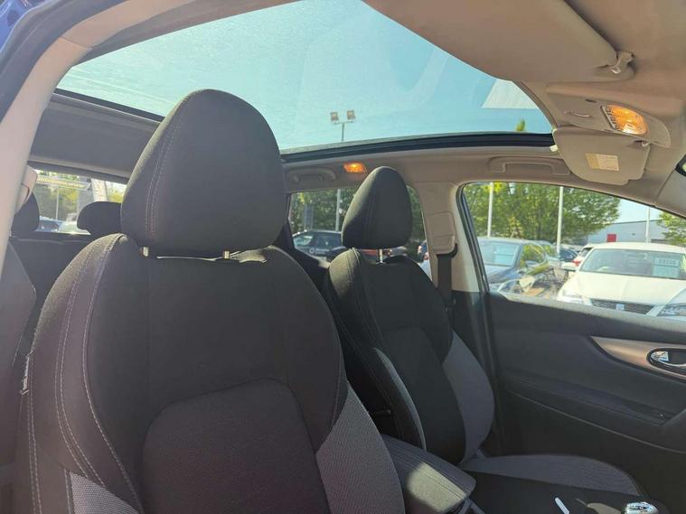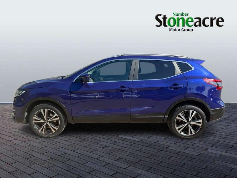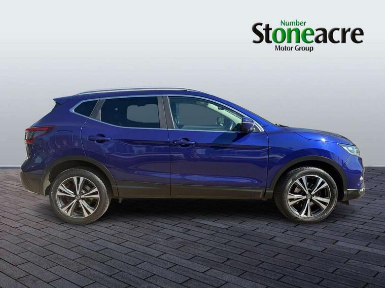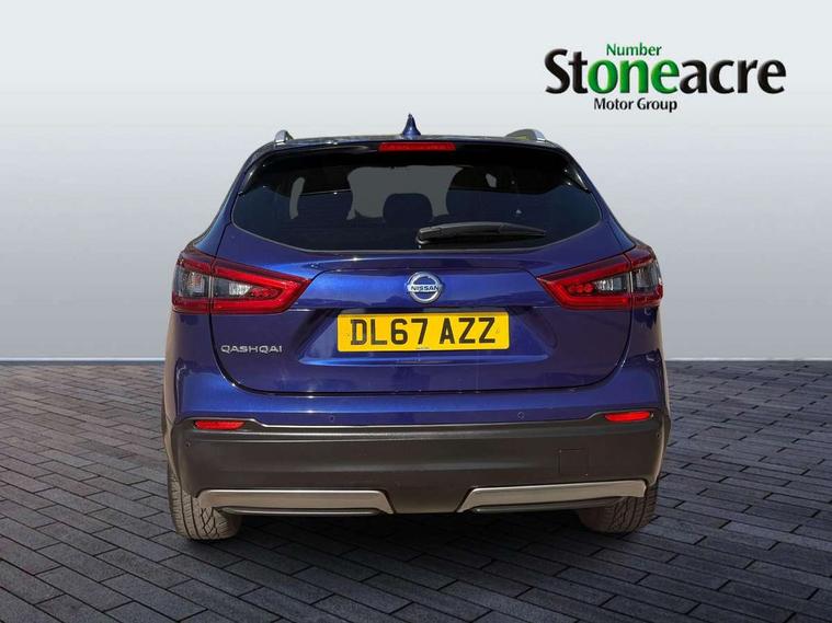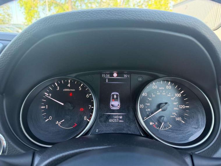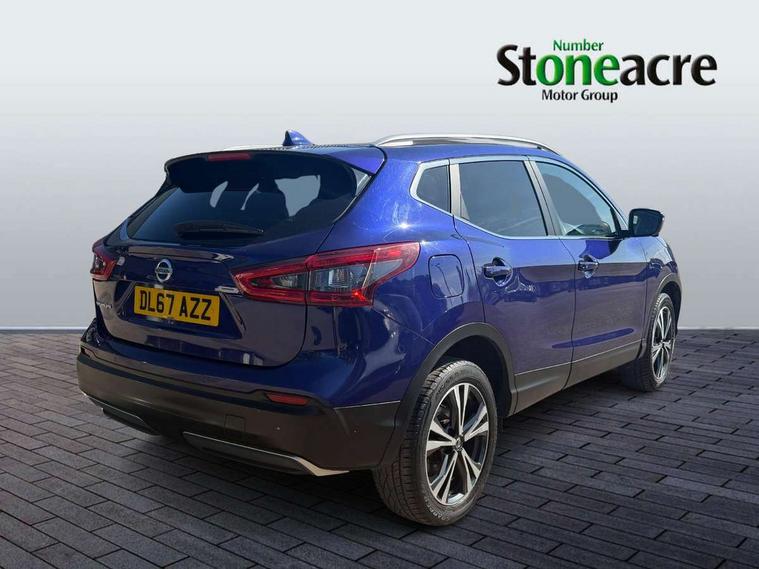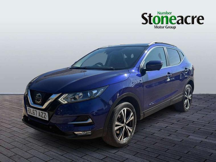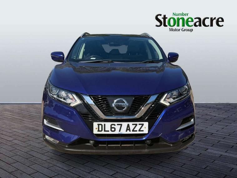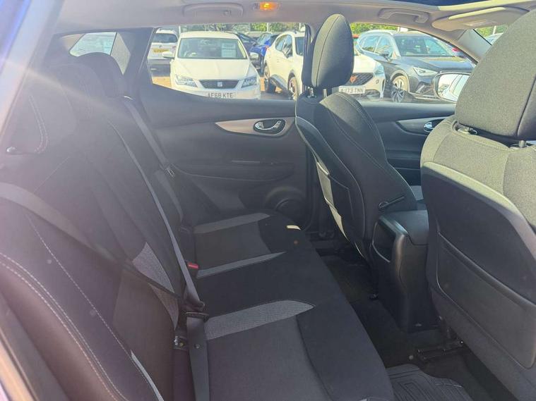 5" TFT driver information centre, Around View Monitor, Bluetooth phone integration system, Cruise control, Electric speed sensitive power steering, Front and rear parking sensors, Lane departure warning system, Nissan connect sat nav system, Outside temperature display, Push button starter, Rear view camera, Service interval indicator, Speed limiter, Traffic sign recognition, Trip computer, 'Shark fin' mobile antenna, 6 speakers, DAB Digital radio, Radio/CD, Smartphone apps, Steering wheel mounted audio controls, USB/aux input socket, Automatic headlamp activation, Body colour bumpers, Body colour door handles, Body colour door mirrors, Chrome window surround, Electric folding and heated door mirrors, High beam assist, Interior mirror with auto anti dazzle, LED indicators in door mirrors, Matt silver roof rails, One touch electric front/rear windows, Privacy glass, Rain sensor windscreen wipers, Rear roof spoiler, Rear wiper, 2 X front 12v power sockets, 60/40 split folding rear seat, Ambient interior lighting, Centre console with armrest, Chrome interior door handles, Cloth upholstery, Configurable luggage board system, Driver + front passenger lumbar support, Dual zone climate control, Front and rear door pockets with bottle holders, Front headrests, Front seat belt pre-tensioners with load limiters, Height adjustable driver's seat, Height adjustable passenger seat, Illuminated electric window switch, Isofix child seat preparation, Leather gearknob, Leather interior door handles, Leather knee rest, Leather steering wheel, Luggage compartment lighting, Parcel shelf, Pollen filter, Rake/reach adjustable steering wheel, Rear headrests, ABS, brake assist and EBD, Child locks on rear doors, Curtain airbags, Driver/front passenger airbag, Electronic parking brake, ESP + traction control, Forward emergency braking, Front passenger airbag deactivation, Height adjustable front seatbelts, Hill start assist, Seatbelt warning, Side airbags, Three 3 point rear seatbelts, Tyre pressure monitoring system, Alarm, Immobiliser, Intelligent Key, Remote central locking, Piano black interior trim, 18" Bi-colour alloy wheels, Tyre puncture repair kit,