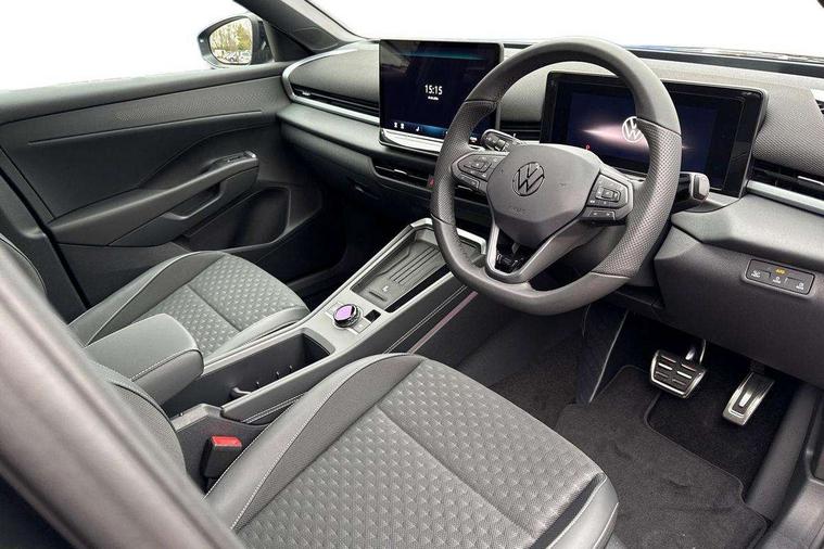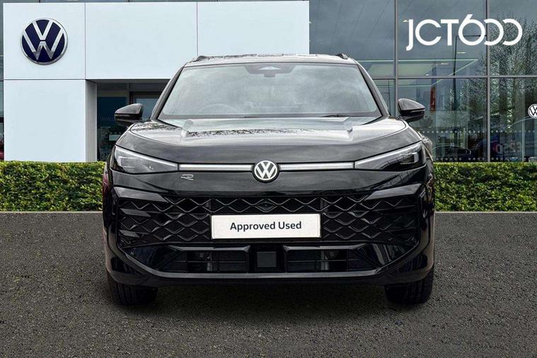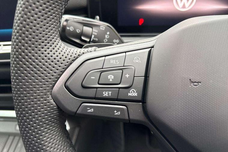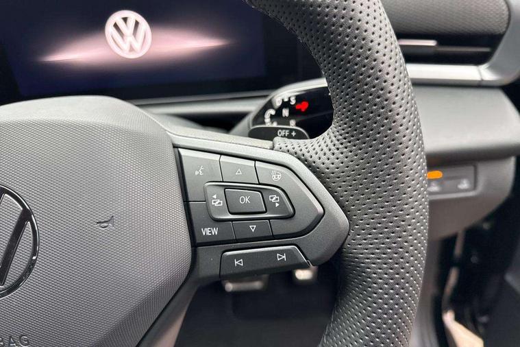 Adaptive cruise control, Driver attention monitor and driver alert system, Driving experience control with atmosphere selection, Dynamic road sign display, E-Sim card for online connectivity, Emergency call service, Front and rear parking sensors, Front cross traffic assist, Lane change system, Side assist, Rear traffic alert and Exit warning system, Lane keeping system Lane Assist, Multi color digital cockpit pro, Navigation system, Oncoming vehicle braking when turning including swerve support, PAS, Rear view camera, Voice activation spoken voice commands for telephone and navigation system, Warning sound and light for front seatbelts unfastened, Wireless app connect, Wireless Smartphone charger, Hybrid drive system MHEV, Sports suspension - Sport +15mm, Start/stop function with battery regeneration, 12.9" infotainment display, 2 USB C ports in front, 1 USB C charging socket on the rear center console, charging capacity up to 45W, DAB Digital radio, Diversity antenna for FM reception, Mobile phone interface with inductive charging feature, We Connect and We Connect Plus functionality, 3D LED rear combination lamps, Auto dimming interior rear view mirror, Automatic headlight control with LED separate daytime running lights with coming/leaving home function, Electrically folding, adjustable and heated door mirrors with front passenger exterior mirror lowering function, High Beam Assist, automatic sensing for switching between dipped and main beam, Illuminated door handle recesses, Illuminated Volkswagen logo and molding, LED 3rd brake light, R-Line design body coloured bumpers, Rain sensor, Rear fog light on one side and reversing lights on both sides, Rear privacy glass, Rear side wing doors, Rear wiper, Surround lighting with welcome light, Without headlamp washer system with washer fluid level indicator, 12V power socket in centre console, 3 rear head restraints, 3 seat bench in 2nd row, Air care climatronic 3 zone air conditioning system with rear air conditioning control panel, Aluminium front scuff plates with R Line logo, Artvelours cloth upholstery, Black roof lining, Brushed stainless steel pedals, Chrome plated radiator grille inserts, air vent surrounds and light switch surrounds, Door and side trim panel with leatherette insert, Driver/front passenger seat height adjustment, Front + rear carpet mats, Front centre armrest, Front comfort sports seats, Front footwell illumination, Heated front seats, Heated leather wrapped multi function steering wheel with paddle shift, Inserts of seats in fabric R-Line, Integrated head restraints on front seats, Interior ambient lighting with 30 colour options, ISOFIX anchors for child seats on outer rear bench seats and on front passanger seat compatible for i-Size, Luggage compartment floor adjustable in 2 heights, for flat cargo area, Non-folding front passenger seat backrest, Power-adjustable lumbar support in front seats, Single front passenger seat, Soul black dashboard, Sports steering wheel with touch control, Sunvisors with illuminated vanity mirrors, Unsplit rear seat bench, asymmetric folding backrest, with centre armrest, 3 point height adj front seatbelts + pretensioners, 3 point seatbelts in outer rear seats, ABS, Automatic emergency braking, Child locks on rear doors, Curtain and side airbags in front with centre airbag, Driver and front passenger airbag with front passenger airbag deactivation, Drivers seatbelt reminder, Electronic parking brake with auto hold function, Electronic stability control (ESC) and Electromechanical brake booster, First aid kit with warning triangle and safety vest, Front Assist with pedestrian and cyclist detection, Front disc brakes, Hill start assist, Rear disc brakes, Tyre pressure loss indicator, Alarm with interior protection, Keyless locking and starting system keyless access with safelock, Decorative inserts in matte pyrite silver, Decorative material set,
