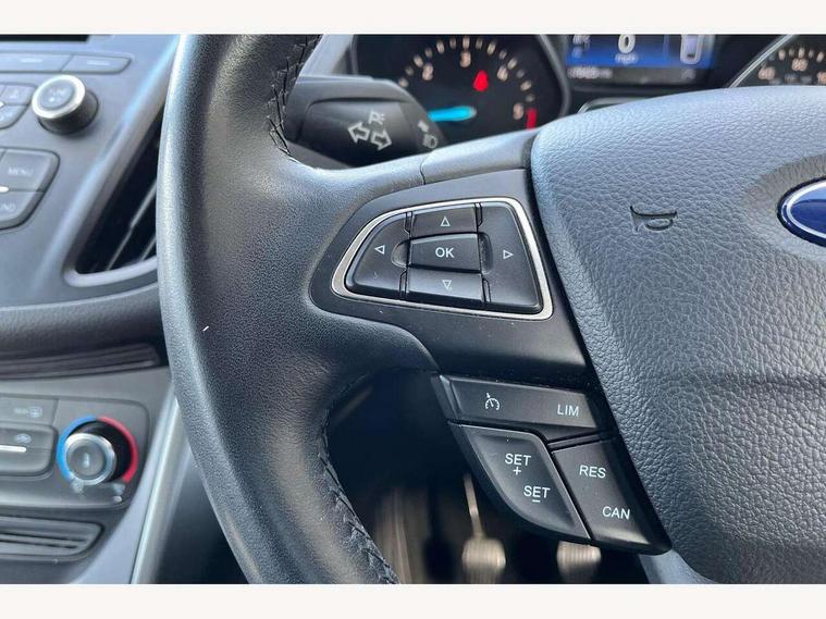 Cruise control + speed limiter, EPAS, Trip computer, 6 speakers, Auxiliary socket for external device, DAB radio/CD with SYNC, voice control + emergency assist, Remote audio controls on steering wheel, USB connection, Body colour bumpers, Body colour rear spoiler, Electrically heated door mirrors, Power front and rear windows, Quickclear heated windscreen, Rear diffuser, Tailgate wash/wipe, Twin exhaust pipes, 60/40 split/folding rear back and cushion, Auxiliary power socket in luggage area, Centre console with stowage tray/bottle holder/CD stowage/front and rear 12V power point, Cloth upholstery, Driver seat lumbar adjustment, Driver/passenger front seatback pockets, Driver/passenger seats fore/aft adjustment, Footwell courtesy lights front and rear, Front floor mats, Front head restraints, Front overhead courtesy lights with theatre style dimming and delay, Front/rear reading lights, Isofix system on outer rear seats, Leather gearknob, Leather steering wheel, Manual air conditioning, Reach + rake adjustable steering column, Rear head restraints, Sports style front seats, Stowage unit in upper instrument panel, Tie down hooks, Tonneau cover, Variable intensity instrument illumination, 3 point seatbelts on all 3 rear seats, ABS/EBD, Driver and passenger airbags, Driver and passenger side airbags, Electric traction assist system, ESP+EBA, Front and rear curtain airbags, Hill start assist, Intelligent Protection System (IPS), Tyre pressure monitoring system, Immobiliser, Keyless start, Locking wheel nuts, Remote central locking, Thatcham Cat.1 alarm, Mini steel spare wheel,
