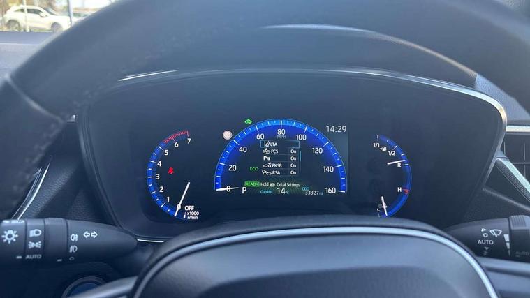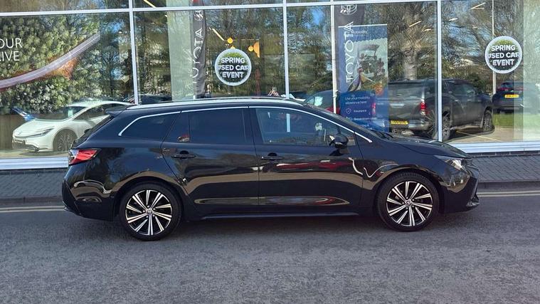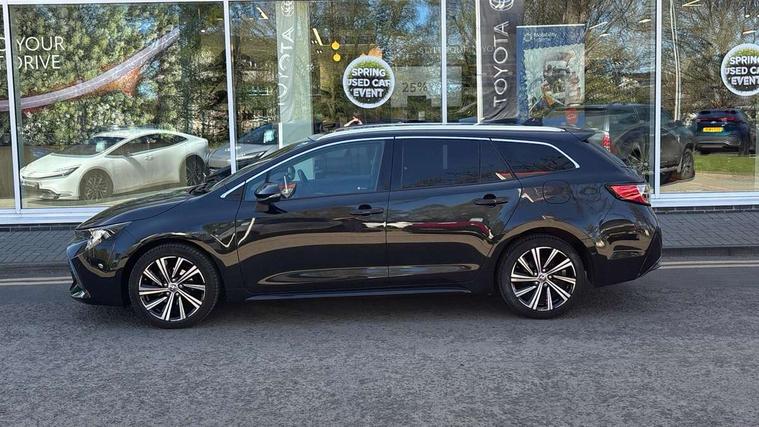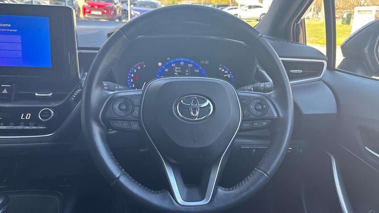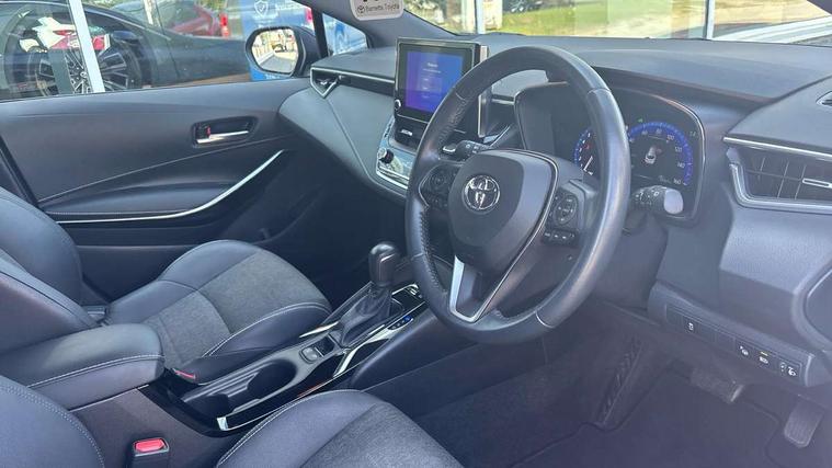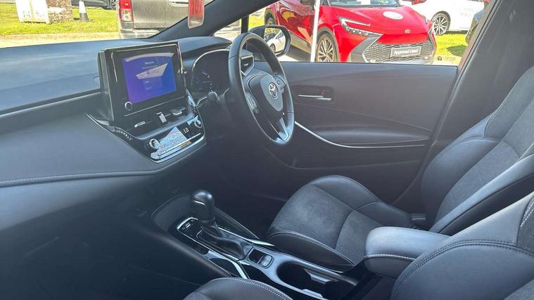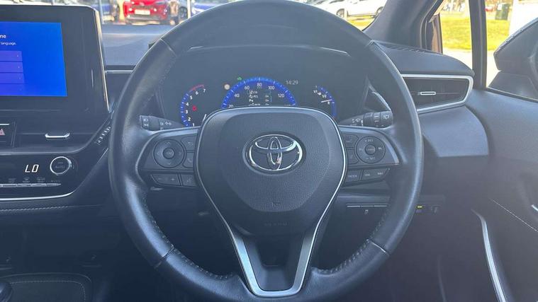 7" Multi information display screen, Bluetooth telephone connectivity, Connected car functionality upgrade, tracker, remote status and e-care, Door trim and centre console material, Dynamic radar cruise control (with RSA) including switch on steering wheel, E-call, Electrically assisted power steering, EV drive indicator, Intelligent park assist, Lane Departure Alert (LDA) switch on steering wheel, Memory on adjustable speed limiter, Push button start, Reversing camera, Smartphone integration with Apple CarPlay and Android auto, Gasoline particulate filter, Vehicle Stability Control (VSC), 6 speakers, 8" Touchscreen with MM19 Multimedia system and voice recognition, AM/FM radio, DAB Digital radio, Toyota touch 2 with go navigation system, USB and Aux in connectors + 12V front outlet, USB charging port in centre storage box, Aluminium roof rails, Anti-jam protection on power windows, Auto dimming inside rear view mirror, Auto up and down function on all power windows, Automatic folding mirrors, Automatic headlights with high beam assist, Black metallic surround on lower front grille, Black toyota logo in front, Body colour rear spoiler, Body coloured bumpers, Body coloured door mirrors, Body coloured outside door handles, Follow me home headlights, LED daytime running lights, LED front fog lights, LED Headlights, LED High mounted stop light, LED rear combi lights with LED lightguide, Noise reduction layer on front windows, Power adjustable heated door mirrors, Power front windows, Power rear windows, Privacy glass, Rain sensing wipers, Rear side wing doors, Rear window defogger, Rear window wiper, Reverse tilting door mirrors, Shark fin antenna, Time adjustment on intermittent wiper, Turning signal integrated indicators in door mirrors, Unique lower skirt, Unique side rocker with black insert, UV-filter on driver and passenger windows, 12v power outlet - luggage side, 3 rear headrests, 3 seat bench in 2nd row, 3 spoke leather steering wheel + gear knob, 60/40 split folding rear seat, Adjustable speed limiter switch on steering wheel, Audio, multimedia and telephone switches on steering wheel, Blue ambient interior illumination to centre tray, front cup holders and front door trim, Boot light, Boot underfloor storage, Clean air filter, Driver and front passenger personal light, Driver and passenger assist grip, Driver and passenger sun visor with mirror and light, Dual sided deck board in boot, Dual zone automatic air conditioning with ECO mode switch, Fabric/synthetic leather upholstery, Front and rear cup and bottle holders, Front and rear door pockets, Front head restraints, Front passenger seat, Heated driver and front passenger seats, Illuminated entry system in room lamp, ISOFIX seat fixing (2 fixings on rear outer seats), Leather gear shift with satin chrome on gear shift console, Leather style armrests, Manual height adjustable for driver and front passenger seat, Passenger seat back pocket, Pollen filter, Power adjustable lumbar support on driver seat, Power window switches with satin chrome inserts, Rear armrest with 2 cupholders, Rear passenger air vents, Rear passenger coat hooks (2), Rear passenger personal lights, Retractable tonneau cover with luggage partition net, Satin chrome inside door handles, Shopping bag hooks in luggage compartment, Side storage in boot, Sliding armrest on centre console box, Slow opening glovebox with lights, Tilt/telescopic steering column, Tonneau cover with under floor storage, Voice recognition switch on steering wheel, Whiplash Injury Lessening (WIL) feature (active headrest) for seats, Parking pack - Corolla, Toyota safety sense 2 pack - Corolla, 3x3 point rear seatbelts, Adjustable driver and front passenger seat belt extender to top anchor point, Anti lock braking system + Electronic brake force distribution, Brake assist function, Child locks on rear doors, Downhill Assist Control (DAC), Electronic parking brake, Emergency brake light signal (EBS), Front passenger airbag on/off switch, Front seatbelt reminder, HAC - Hill start assist control, Rear seat belt reminder, Seatbelt pretensioners and force limiters, Supplemental restraint system (SRS) 7 airbags - dual driver, dual side curtain, side impact and driver knee airbags, Traction control, Tyre pressure warning system, Acoustic vehicle alert system (AVAS), Alarm with motion sensor and immobilizer, Remote central locking + deadlocks, Smart entry, Satin chrome dash trim, Soft touch texture on upper dashboard, Stitching on lower dashboard, Tyre repair kit, Unique wheel finish with red wheel cap,