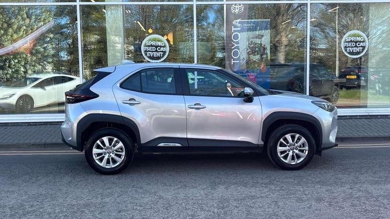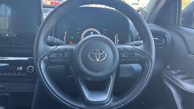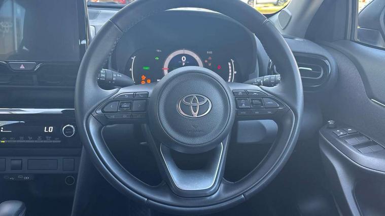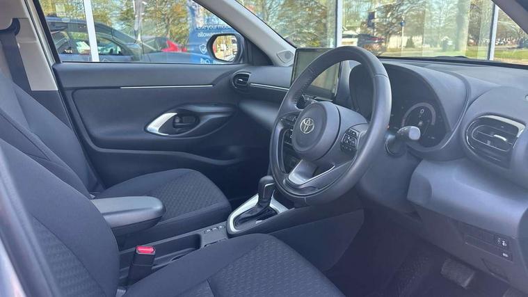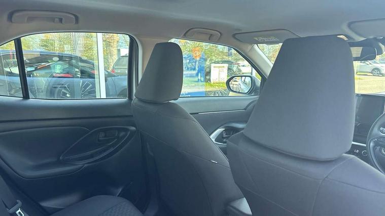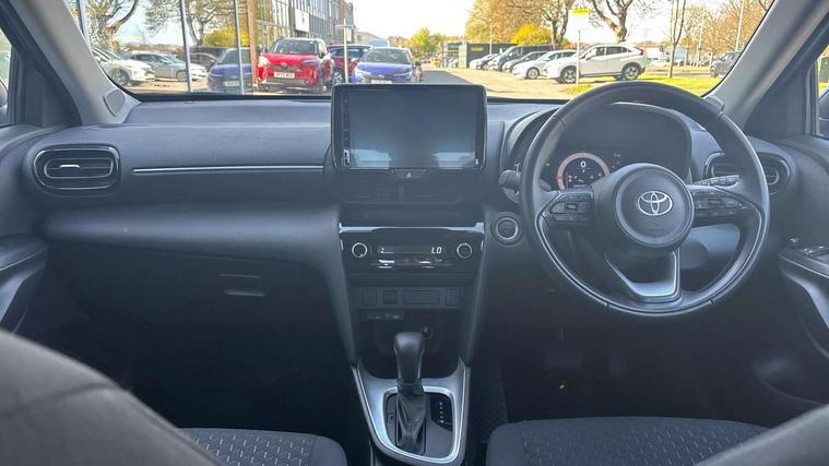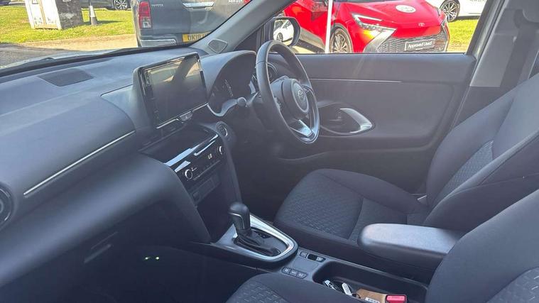 7" Multi information display screen, 9" Toyota touch 3 multimedia system with Smartphone integration with Apple CarPlay and Android auto, Adaptive cruise control, multi info switches on steering wheel, Adjustable speed limiter, Bluetooth connectivity, Color multi-information display, Digital speedometer, Digital tachometer, Drive mode selector, Driver attention alert system, eCall emergency system, Electric power steering, Emergency driving stop system, Full range intelligent adaptive cruise control, Hybrid system indicator, Intersection turn assist, Key reminder warning, Lane trace assist, My T Connected services, Pre-collision system enhanced with emergency steering assist, Reversing camera, Road sign assist - RSA, Static guide lines on reversing camera, Tailgate, Telephone switch on steering wheel, Steering assisted vehicle stability control, 6 speakers, DAB Digital radio, Front USB Type-C connector, Front USB-C device charger, 3rd brake light, Acoustic windscreen glass, Anti-jam protection on power windows, Auto high beam [AHB] with on/off switch, Auto intermittent windscreen wipers, Automatic headlights, Automatic headlights cut-off, Black door moulding, Black lower front grille, Black protection moulding on side doors, Black upper front grille, Black wheel arch mouldings, Body colour door handles, Body colour front bumper, Body colour rear bumper, Electric adjustable heated door mirrors, Follow me home headlights, Front and rear electric windows with auto up/down function, Halogen projector headlights, Headlight cut off reminder, Indicators integrated on door mirrors, Intermittent rear wiper, LED daytime running lights, LED front fog lights, LED front light guide, LED Indicators, Manual day/night rear view mirror, Manual headlight levelling, Manually retractable door mirrors, Noise reduction layer on windscreen, Pre wiring for towing hook, Privacy glass, Rain sensor, Rear roof spoiler, Rear side wing doors, Rear window defogger, Shark fin antenna, 12v power outlet - front, 2x Rear coat hooks, 3 seat bench in 2nd row, 3 spoke leather steering wheel, 60/40 split folding rear seat, Adjustable rear headrests, Adjustable speed limiter switch on steering wheel, Auto air conditioning, Boot light, Central armrest, Driver and front passenger personal lights, Driver and front passenger Whiplash injury Lesseing seats, Fabric door trim, Fabric upholstery, Front console box, Front cup holders, Front door pockets, Front head restraints, Front/rear assist grips, Gear shift indicator, Grey roof lining, Height adjustable driver's seat, Height adjustable front passenger seat, ISOFIX child restraint system, Lane departure alert switch on steering control, Leather gearshift, LED centre room light, Manual telescopic and tilting steering wheel, Mirror on driver and passenger sun visor, Pollen air filter, Rear cup holders, Rear door pockets, Rear head restraints, Remote air-conditioning system, Single compartment glovebox, Single front passenger seat, Soft tonneau cover, Storage box under boot floor, Voice recognition switch on steering wheel, Yaris cross floor mats, 3x3 point rear seat belts, ABS+EBD+Brake assist, Driver and passenger central airbags, Driver and passenger front airbags, Driver and passenger side airbags, Electronic parking brake, Emergency brake light system (EBS), Front seat belt reminder, Hill start assist control (HAC), Passenger airbag on/off switch, Pre-collision system with pedestrian and cyclist detection, Rear door child safety locks, Rear passenger side airbags, Rear seat belt reminder, Traction control, Tyre pressure warning system, Immobiliser, Intrusion alarm, Keyless smart entry with push button start, Power door locks, Power passenger window lock, Remote door lock, Gloss black side air vent surrounds, 16" 10 spoke silver alloy wheels, Tyre repair kit,
