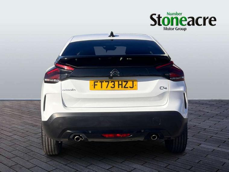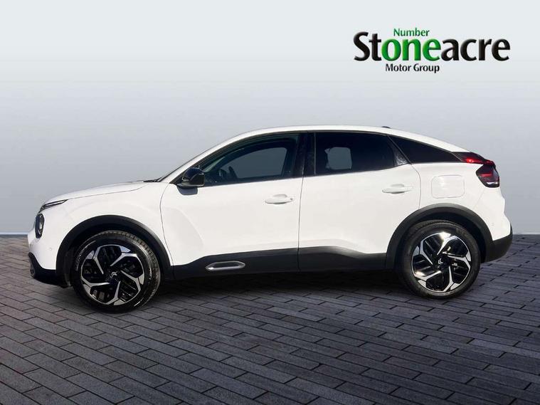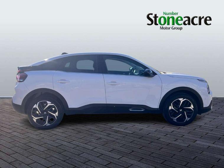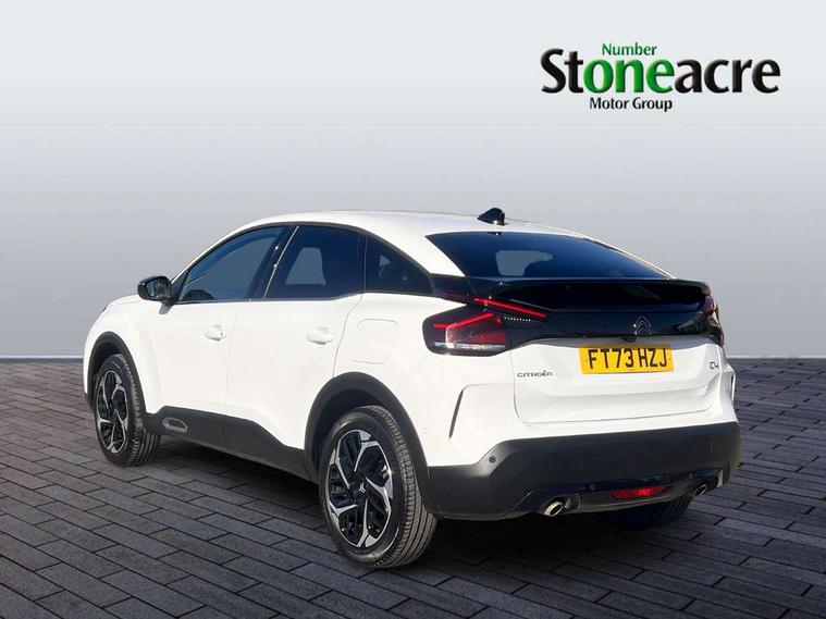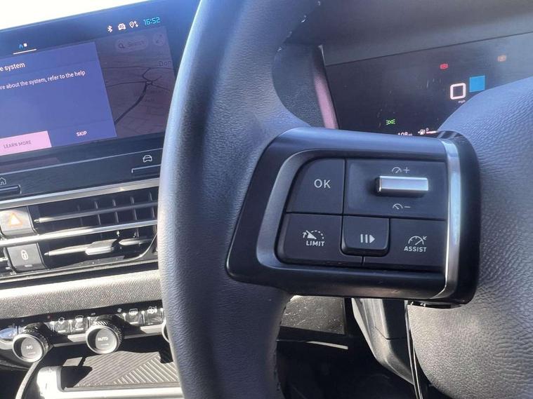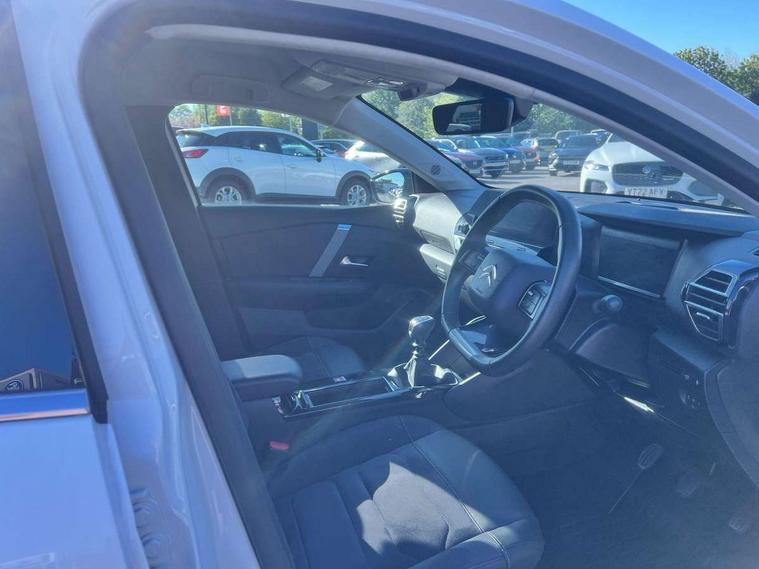 5.5 inch backlit full TFT driver's instrument cluster with LED ambient lighting, Active blind spot detection, Apple car play and Android auto, Citroen connect box emergency and assistance system, Citroen Smart Pad Support - integrated support for attaching a tablet computer for front passenger, Cruise control + speed limiter, Driver's head-up display, Electronic Power Steering (EPS), Front, rear and lateral parking sensors, In-crash braking, My Citroen Drive Plus: 10" high-resolution touchscreen user interface, controlling media, connectivity, vehicle settings + connected nav, Tailgate, Voice commands, Advanced comfort suspension - double hydraulic stops on front and rear suspension, 6 speakers, Bluetooth telephone and audio streaming, DAB Digital radio, 3rd brake light, Automatic headlights, Body colour bumpers, Body colour door handles, Boot spoiler, C-Series badging on front wing, Dark tinted rear windows and side windows with chrome detail, Electrically heated, folding and adjustable external rear view mirrors with courtesy lighting, Electrochrome interior rear-view mirror with automatic day-night switching, Front and rear electric windows, Gloss black rear skirt, Intelligent beam headlights, LED daytime running lights in V signature, LED front fog lamps with static cornering function, LED front headlamps, Perla Nera black painted external rear view mirrors, Rain sensing automatic front windscreen wipers, Rear side wing doors, Rear wiper, Shark fin roof aerial, Welcome and goodbye lighting, 12V power outlet, 1x USB Type-C socket & data connection, 1x USB Type-A socket at 1st row + 1x USB Type-A socket , 1x USB Type-C socket in 2nd row, 3 rear headrests, 3 seat bench in 2nd row, Alcantara and black leather effect textile seats, Boot light, Dashboard tray in front cabin, Deluxe leather steering wheel with two command blocks, Driver and passenger sunvisors with illuminated vanity mirrors, Dual zone automatic air conditioning, Electrically heated front seats, Front and rear LED interior lighting, Front head restraints, Height adjustable driver's seat with adjustable lumbar support, Height adjustable front passenger seat, Height and reach adjustable steering wheel, Map pockets in rear of front seats, Raised centre console with armrest and two cup holders, Rear central folding armrest with cupholders and ski hatch, Single front passenger seat, Split folding rear seats, Two position boot floor, XXL storage in front cabin, High level acoustic insulation pack - C4/C4 X/e-C4 X, Safety pack plus - C4/C-Series Edition/Max, 3x3 point rear seatbelts, ABS, Driver and front passenger airbags, Electric parking brake, ESP, Front seatbelt pretensioners, Hill start assist, Manual child lock in second row, Manual deactivation of front passenger airbag, Row 1 and 2 curtain airbags, Row 1 side thorax airbags, Seatbelt unfastened on the move warning, Tyre underinflation detection, Anti-theft alarm (volumetric protection), Immobiliser, Keyless entry and start, Remote locking with deadlocks, 18" Bi-tone diamond-cut aeroblade alloy wheels with anti-theft locking wheel nuts, Puncture repair kit with compressor,