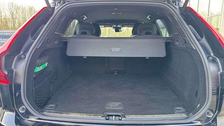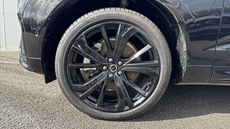 11.2" centre console touch screen, 12.3" Progressive Driver Display, 360 degree surround view parking camera with side proximity sensors, Adaptive cruise control, Adjustable steering wheel force, Android auto (Wired), Apple carplay (wired), Bluetooth handsfree system, Drive mode settings, Driver alert control with lane keeping aid, Emergency services call system, Front and rear park assist, Google Automotive Services, Intelligent speed assistance, Oncoming Lane Mitigation, PAS, Power operated tailgate with handsfree opening and closing, Service interval indicator, Speed limiter, Speed sensitive steering, Trip computer, Volvo cars services with app, Volvo on call with App, Wireless/Inductive Mobile Phone Charging, 2 phase on board charger 6.4kW (home charging limited to 3.7kW), 6m 3 phase 16amp Type 2 / mode 3 charge cable, 8 speed automatic transmission with start/stop + manual change functions, Electric rear axle drive, Recharging port located in nearside front wing, DAB Digital radio, Low speed exterior sound speaker, Premium Sound by Harman Kardon, dirac unison, dolby pro logic II surround sound, 13 speakers/600W output and fresh air subwoofer, Steering wheel remote infotainment controls, Adaptive brake lights with high level LED brake lights, Auto dimming interior + exterior mirrors, Automatic headlight levelling system, Automatic LED Headlights + Active high beam incorporating daytime running lights, Dark tinted windows for rear side windows and cargo area, Electric adjustable/heated/auto power folding door mirrors, Electric front+rear windows, Front aluminium tread plates, Heated front windscreen, High gloss black door mirrors and window surround, High gloss black front and rear bumper decoratives, High gloss black front grille, Surround, Strikethrough and Ironmark, High gloss black rear model, engine and volvo logo badges, Home safe and approach lighting, Integrated roof rails in high gloss black, Puddle lights, Rain sensor with automatic windscreen wiper activation, Rear side wing doors, Rear wiper, Roof antenna, Roof spoiler, Tinted windscreen, Visible VIN plate, 12V socket in front tunnel console and luggage compartment, 2 zone electronic climate control with Clean zone air quality system and pollen filter, 3 seat bench in 2nd row, 3 Spoke tailored steering wheel with chrome trim, A-pillar parking ticket holder, Air purifier particulate matter (PM) 2.5 filter, B Pillar ventilation, Bright metal luggage scuff plate, Centre console cupholders and storage, Charcoal floor mats, Contour sports seats with nappa soft leather/textile upholstery, Front and rear courtesy lights, Front and rear door pocket illumination, Front cupholder illumination, Front footwell illumination, Front reading lights, Front seat cushion extensions, Glovebox compartment with illumination, Head restraints for all seats, Heated front seats, Heated steering wheel, Height/reach adjustable steering column, Illuminated luggage compartment, Illuminated vanity mirrors + ticket holder, Inner door release handle illumination, ISOFIX attachment on outer rear seats, Load cover, Load protection net, Multi directional lumbar support, Power driver seat with memory + exterior mirrors memory, Power height adjustable passenger seat, Power passenger seat with memory, Rear armrest with cupholder, Rear footwell and front and rear side step illumination, Rear reading lights, Rear seat concealed storage, Single front passenger seat, Tailgate illumination and ambient door lighting, Underfloor stowage compartment, Versatile split folding rear seat - 60/40, Driver assist pack without Adaptive cruise control - XC60, 5 three point seatbelts, City safety with steering support with Pedestrian + cyclist + front collision warning with full auto brake and rear auto brake, Drivers knee airbag, Dual stage driver/passenger airbags, Electronic parking brake with auto hold, First aid kit, Front seats SIPS airbags, Hill descent control - Off-road drive mode, Hill start assist, IC (Inflatable Curtains) - Full Length, Passenger airbag cut-off device, Power child locks on rear doors, Road sign information display, Run off Road Mitigation, Run off Road Protection, Seatbelt reminder and pretensioners, SIPS (Side Impact Protection System), Slippery road and hazard light alert, Stability and Traction Control with Spin control, Engine Drag Control and Corner Traction Control, Tyre pressure monitoring system, Vehicle deceleration control with Anti-lock Brake System, Electronic Brake Distribution and Emergency Brake Assist, Warning triangle, WHIPS whiplash protection system - front, Anti-theft alarm including immobiliser/volume sensor + level sensor, Key integrated remote control central locking + fuel flap with deadlocking system and auto open/close power windows, Keyless Drive (includes Keyless Entry and Keyless Start), Locking wheel nuts, Private locking for tailgate, 21" 5 Double spoke high gloss black alloy wheels, Summer tyres, Tyre sealant kit + 12v compressor,