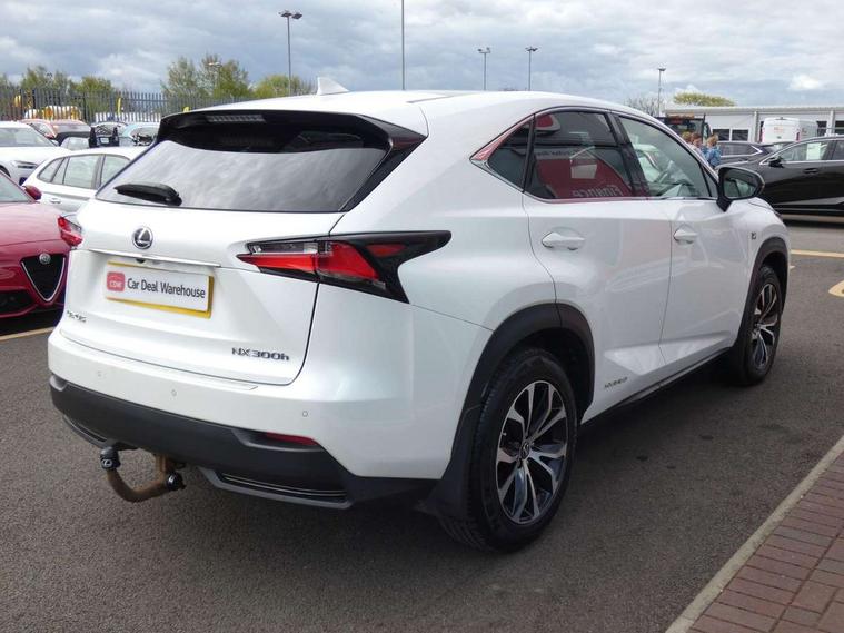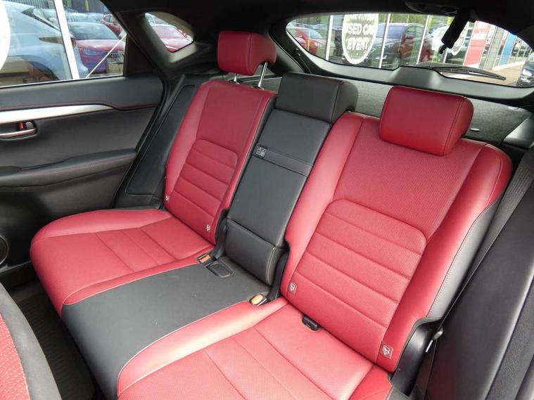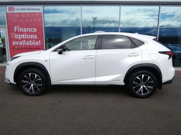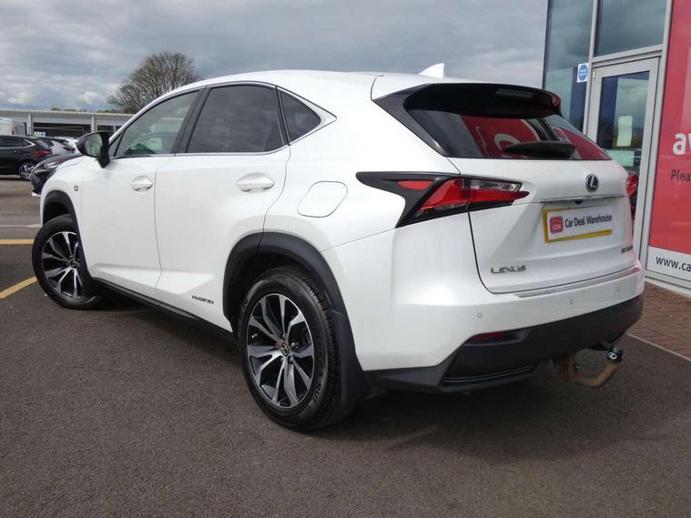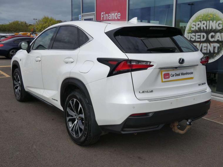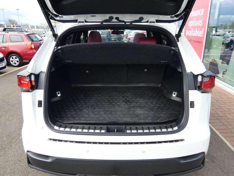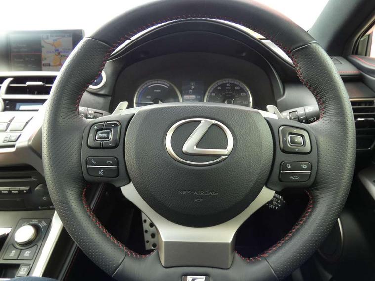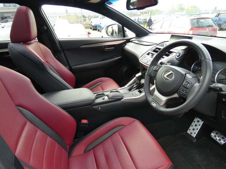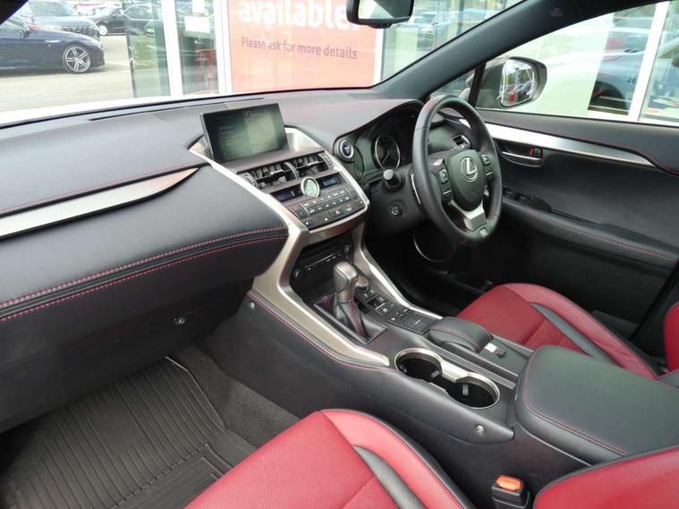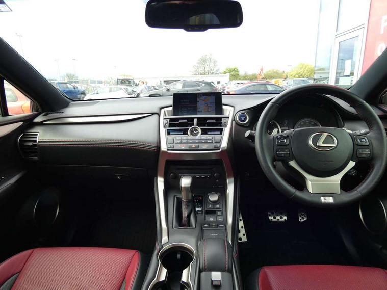 Adaptive cruise control + pre-crash system, Analogue clock, Bluetooth telephone connectivity, Drive mode selector, Front and rear parking sensors, Multimedia display, PAS, Push button starter, Reversing camera, Service interval indicator, Trip computer, Performance dampers, VDIM, Vehicle Stability Control (VSC), 8 Speakers, Aux input, DAB Digital radio, Radio/CD, Steering wheel mounted audio controls, USB connection, Black mirror caps, Body colour bumpers, Electric/heated/folding door mirrors, Electrochromatic rear view mirror, Front and rear electric windows, Headlight washers, Illuminated door handles, LED daytime running lights, LED front fog lights with static cornering light function, LED Headlights, Privacy glass, Puddle lights in exterior door handles, Rain sensor windscreen wipers, Rear wiper, Roof rails, Roof spoiler, Scuff plates, Shark fin roof aerial, 3 spoke leather steering wheel, 60/40 split folding rear seat, 8 way electrically adjustable front seats, Aluminium foot rest, Aluminium pedals, Black roof lining, Driver's lumbar support, Dual climate control air conditioning system, Electric adjustable steering column, Front armrests, Gearshift paddles, Heated front seats, Isofix child seat attachment, Leather gear lever, Leather upholstery, Rear armrest, Rear headrests, Convenience pack - NX, 3x3 point rear seatbelts, ABS, Active front headrests, Curtain airbags, Driver/Front Passenger airbags, Driver/front passenger side airbags, EBD + Brake Assist, Electronic parking brake, Front/rear seatbelt pre-tensioners, Hill start assist, Passenger airbag cut-off device, Rear passenger side airbags, Traction control, Tyre pressure warning, Alarm, Immobiliser, Remote central double locking, Smart keyless entry, Speed sensitive power door locks, Carbon interior trim, Space saver spare wheel,