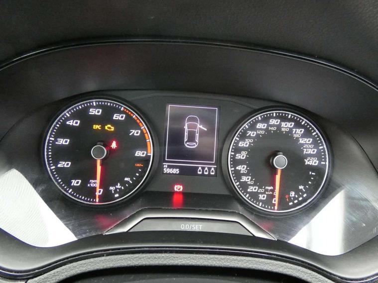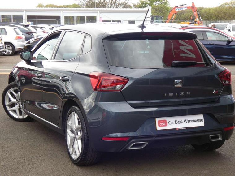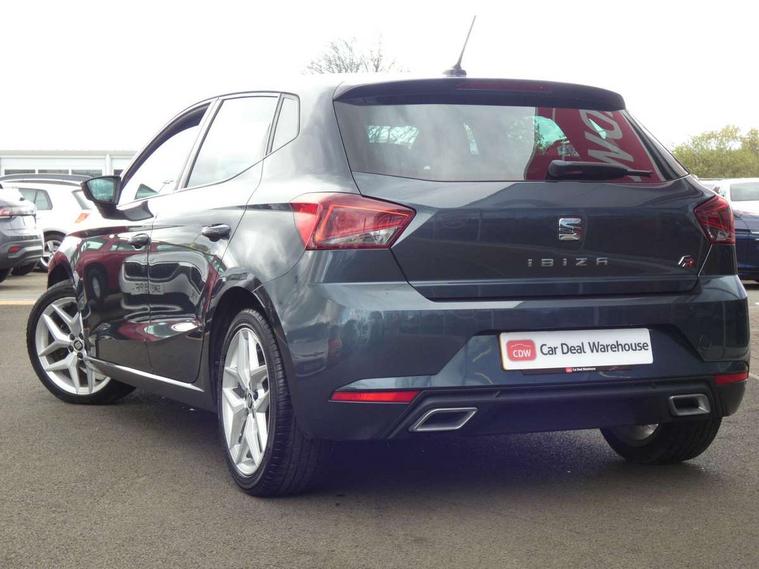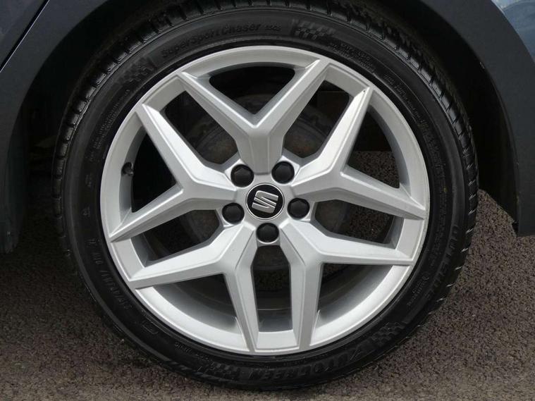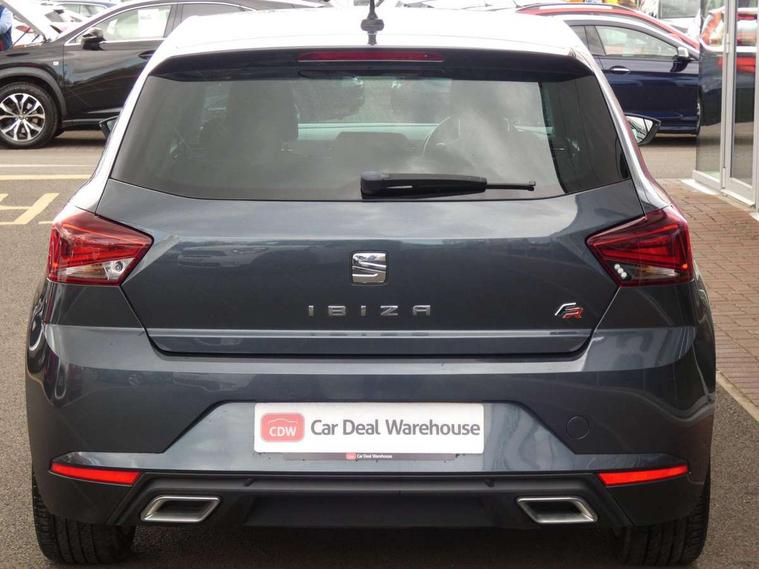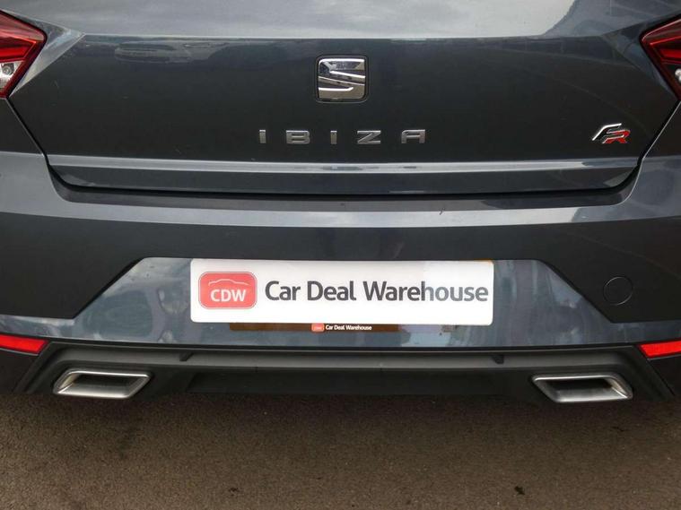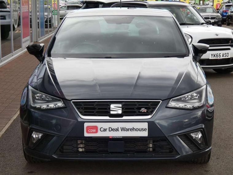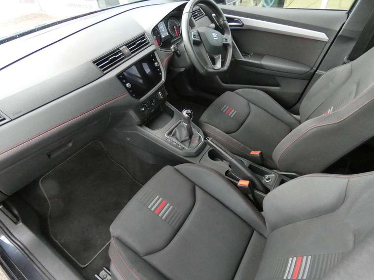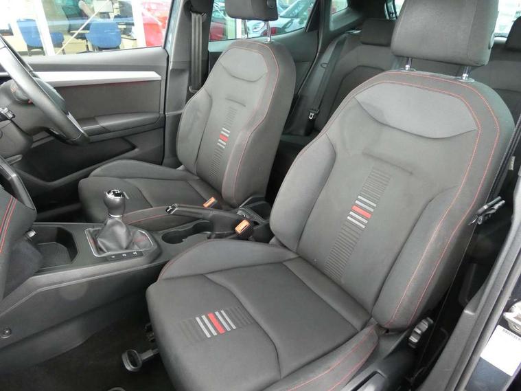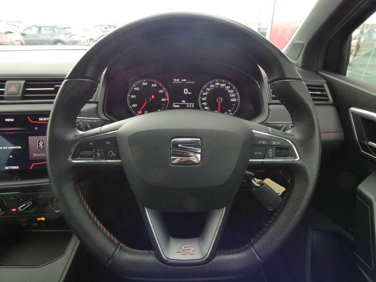 'Lights On' Reminder warning buzzer, Bluetooth Handsfree Phone Connection, Cruise control, Digital clock, Full Link Smartphone Integration with Mirror Link, Apple Car Play, Google Android Auto, Low fuel warning light, Outside temperature gauge, Power Steering, Satellite navigation system with 3D mapping, 8" touch screen, voice control and additional USB port, SEAT Drive profile, SEAT logo boot release, Trip computer, Sports suspension, 6 speakers, Auxiliary input socket, CD player, Digital Audio Broadcast (DAB) Tuner, Radio/MP3 player, SD card slot, SEAT USB media cable, Steering wheel mounted controls, USB port, Anti theft roof antenna, Auto dimming rear view mirror, Automatic headlights, Automatic rain sensing wipers, Body colour bumpers, Body colour door handles, Brilliant black door mirrors, Chrome front grille frame, Chrome grille, Coming/leaving home lighting function, Cornering front fog lights, Dark tinted rear windows, Electric folding door mirrors, Electric front windows, Electric headlight adjustment, Electrically adjustable and heated door mirrors, Exclusive FR rear bumper, Full LED headlights, LED daytime running lights, LED tail lights, Rear fog lights, Twin exhaust pipes, 3 rear headrests, 60/40 split folding rear seat, Air conditioning, Door and steering wheel ice metal decorative inserts, Driver's sunvisor with ticket holder/vanity mirror, Dust/pollen filter, Flat bottomed perforated leather steering wheel with red stitching and FR logo, Front courtesy lights, Front cupholders x 2, Front reading lights, Gear shift indicator, Glovebox, Height adjustable driver's seat, Height adjustable front/rear head restraints, Height adjustable passenger seat, Height/reach adjust steering wheel, Illuminated boot, Instrument lighting with brightness control, Leather handbrake, Multi-colour ambient interior lighting, Nora cloth upholstery, Passenger sunvisor, Rear top tether child seat ISOFIX attachment, Sports seats, Full LED headlight pack - Ibiza, 3 point seatbelts on all 3 rear seats, ABS, Active front headrests, Child locks on rear doors, Curtain airbags, Driver/Front Passenger airbags, ESP+EBA, Front assist (AEB), Front passenger airbag deactivation, Front side airbags, Hill hold control, Multi-Collision braking, Seatbelt warning, Tiredness recognition system, Tyre pressure monitoring system, Electronic engine immobiliser, Locking wheel bolts, Remote central locking + deadlocks, Volumetric alarm with back up horn, Leather dashboard, 17" Dynamic alloy wheels,