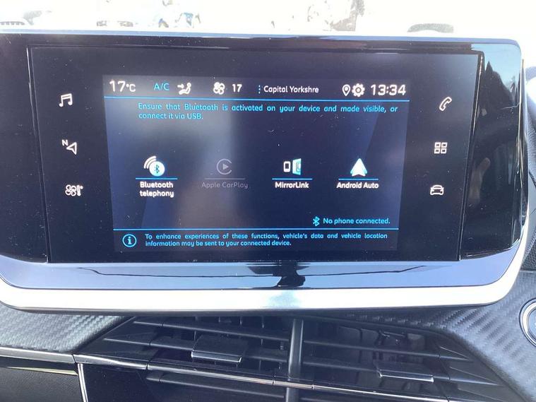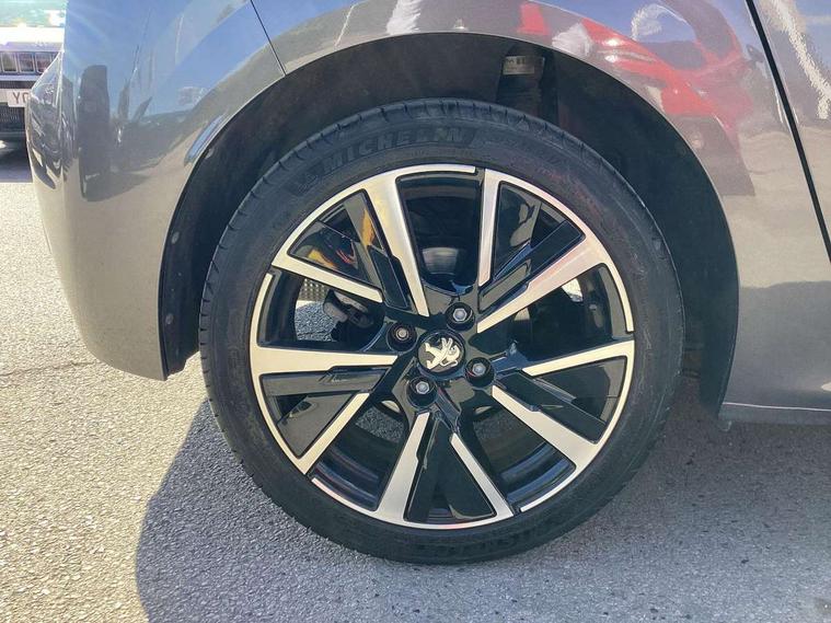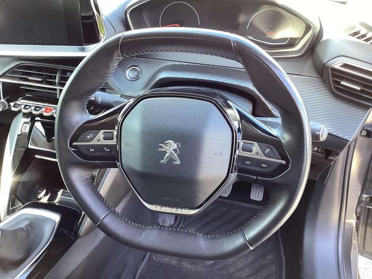 Bluetooth telephone facility, Driver attention warning, Exterior temperature indicator with ice warning, Lane keep assist, Mirror screen with mirror link, apple carplay and android auto, Multi function trip computer, Peugeot connect SOS and assistance, PEUGEOT i-Cockpit with 7" capacitive colour touchscreen, PEUGEOT i-Cockpit with compact steering wheel, PEUGEOT i-Cockpit with configurable 3D headup instrument panel, Programmable cruise control and speed limiter, Push button start, Rear parking sensors, Smart phone docking station, Smartphone charging plate, Speed limit recognition and recommendation, 2 front USB socket with USB-C, 2x USB sockets in rear, 6 speakers radio with mp3 compatible, DAB Digital radio, Voice recognition for radio, navigation and telephony features, 2 X Rear number plate lights, Automatic lights, Automatic windscreen wipers, Body coloured exterior door handles, Colour coded door mirror shells, Dark tinted Rear side and tailgate windows, Diamond black rear spoiler, Electric front windows + one touch + anti-pinch, Electric rear windows with one touch/anti-pinch, Electrically adjustable, heated and power folding door mirrors, Electrochrome rear view mirror, Follow me home headlights, Front windscreen wiper with magic wash cleaning system, Gloss black finish on B pillar, Gloss black rear cluster connecting strip, Headlights left on audible warning, Model designation badges front and rear, Radiator grille chrome chequered, Rear bumper with gloss black finish, Rear full LED 3D peugeot signature claw effect lights with daylight function, Rear reversing lights, Rear windscreen wiper triggered automatically in reverse gear, Tailgate with heated rear windscreen and wiper blade, 1/3 to 2/3 split folding rear seats, 12V socket, Driver and front passenger comfort seats, Driver and front passenger seat manual adjustment in longitudinal and back rest angle, Driver seat mechanical height adjustment, Dual zone electronic climate control, Electric power steering with reach and rake adjustable steering column, Front centre armrest with storage compartment, Front interior light with 2 reading spotlights, Gear shift indicator, High centre console with 2 cup holders, Leather steering wheel, Map pockets on the backs of the front seats, Piano keys gloss black plated toggle switches to access main functions of the vehicle, Roof lining - light grey, Satin chrome gear lever, Seatbelt unfastened on the move audible and visual alert for front and rear seats, 2x 2nd row ISOFIX child seat mountings, 3 rear 3 point seatbelts, ABS (Anti-lock Braking System) with EBD (Electronic Braking Distribution) and EBA (Emergency Braking Assistance), Child locking functionality on rear doors, Driver and passenger airbags with Passenger airbag deactivation system, Driver/front passenger side airbags, Electric parking brake, ESP with Hill Assist, Front and rear curtain airbags, Front and rear disc brakes, Front optimised safety headrests and 3 x rear retractable headrests with height adjustable, Front three point retractable seatbelts with force limiters, Pedestrians active safety brake, Tyre pressure sensor, Automatic door locking when moving off, Automatic hazard light activation upon heavy brake application, Deadlock, Electronic code immobiliser, Thatcham Cat.1 alarm, Carbon effect Dashboard, front and rear door panel finish, 17" Jordaan diamond cut alloy wheels, Space saver spare wheel,