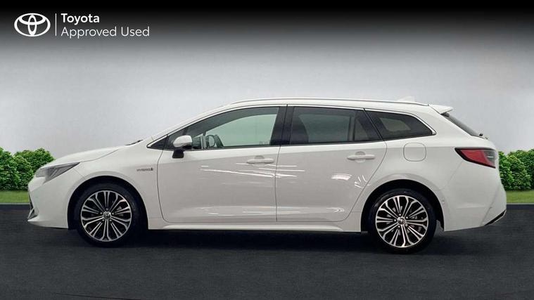 Bluetooth telephone connectivity, E-call, Electrically assisted power steering, Intelligent park assist, Kick sensor for power tailgate, Push button start, Reversing camera, Smartphone integration with Apple CarPlay and Android auto, Speed limiter, Voice activation, Vehicle Stability Control (VSC), 2 ring combimeters with 7" colour TFT screen, 6 speakers, 8" multimedia and back monitor, AM/FM radio, DAB Digital radio, Toyota touch 2 with go navigation system, USB and Aux in connectors + 12V front outlet, Anti-jam protection on power windows, Auto dimming inside rear view mirror, Auto up and down function on all power windows, Automatic folding mirrors, Automatic headlights, Automatic wipers, Bi-LED headlights with LED lightguide, Body coloured bumpers, LED daytime running lights, LED front fog lights, LED rear combi lights with LED lightguide, Power adjustable heated door mirrors, Power front windows, Power rear windows, Privacy glass, Rain sensing wipers, Rear window wiper, Reverse tilting door mirrors, Shark fin antenna, 12v power outlet - luggage side, 3 rear headrests, 3 spoke leather steering wheel + gear knob, Clean air filter, Dual zone automatic air conditioning with ECO mode switch, Front head restraints, Full leather upholstery, Heated seats, Interior illumination, ISOFIX seat fixing (2 fixings on rear outer seats), Pollen filter, Power lumbar support, Sports seats, Steering wheel switches, Tilt/telescopic steering column, Whiplash Injury Lessening (WIL) feature (active headrest) for seats, Parking pack - Corolla, Toyota safety sense 2 pack - Corolla, 3x3 point rear seatbelts, Adjustable front driver seat belt extender, Anti lock braking system + Electronic brake force distribution, Brake assist function, Electronic parking brake, Front passenger airbag on/off switch, Front seatbelt reminder, HAC-Hill-start Assist Control, Rear seat belt reminder, Seatbelt pretensioners and force limiters, Supplemental restraint system (SRS) 7 airbags - dual driver, dual side curtain, side impact and driver knee airbags, Traction control, Tyre pressure warning system, Alarm/immobiliser, Remote central locking + deadlocks, Smart entry, 17" Alloy wheels, Tyre repair kit,