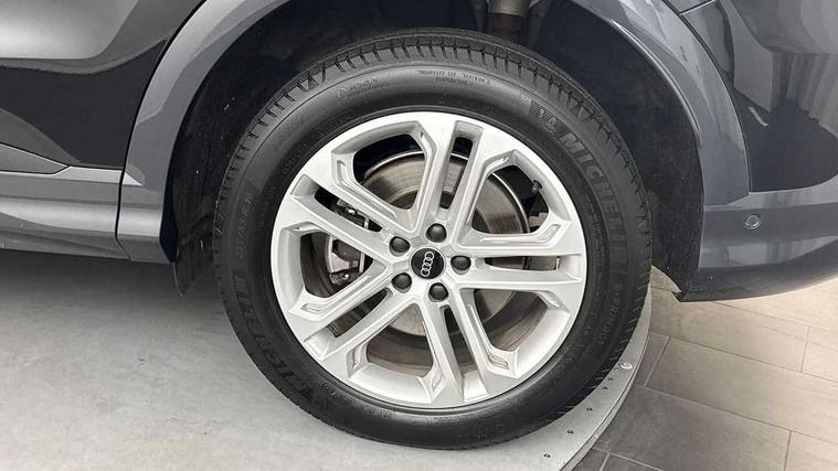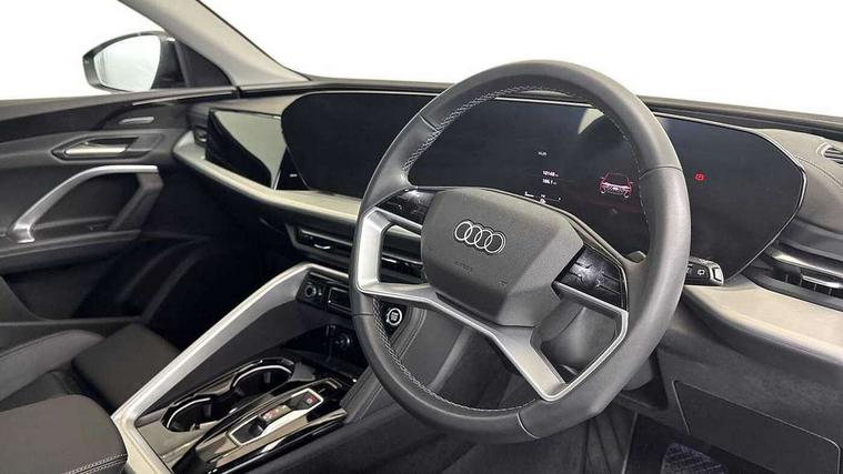 Adaptive cruise control, Advanced driver attention alert, Audi application store, Audi connect emergency call and service, Audi drive select, Audi smartphone interface, Audi virtual cockpit plus with 11.9" OLED colour display, Camera based traffic sign recognition, Fatigue monitor, Front cross traffic intersection assist, Lane departure warning system, MMI navigation plus with high resolution 14.5" OLED touchscreen colour display, Park assist plus, Parking system plus with 360 display, PAS, Reversing camera, Swerve assist and turn assist, Traffic sign based speed limiter, Comfort suspension, 2 USB-C ports in both the front and rear, Audi sound system impressive sound with 8 loudspeakers including centre speaker and subwoofer, 6-channel amplifier with a total output of 180 watts, DAB Digital radio, Smartphone compartment with wireless charging, Aluminium roof rails, Auto dimming rear view mirror, Body coloured door mirrors, Coming/leaving home lighting function, Contrast bumpers in Volcano grey metallic paint finish, Electrically adjustable heated and folding + automatically dimming exterior mirrors, Front and rear electric windows, Front door sill trims with aluminium inlays, illuminated, Headlight cleaning system, Heated rear window, High beam assist, High gloss window surrounds, LED headlights plus incl. digital DRL, dynamic coming and leaving home function with turning/all weather/motorway/manouevring and intersection lights, LED rear lights pro incl. dynamic rear indicators and illuminated light strip with animated coming and leaving home function, LED third brake light, Logo projection light in exterior mirrors, Rear and side windows with heat insulating glass, Rear side wing doors, Rear wash/wipe, Towbar preparation, Windscreen with acoustic glazing, 3 rear head restraints, 3 seat bench in 2nd row, 40:20:40 split folding rear seat bench with centre armrest and cup holders, Comfort centre armrest front, Deluxe 3 zone electronic climate control, Front and rear floor mats, Front seats with manual adjustment for position and 4-way electric lumbar support, Front sport seats with integrated head restraints, Heated front seats, i-Size child seat mounting on the front passenger side and outer rear seats, i-Size and top tether on the outer rear seats, Interior trim in aluminium look, Luggage compartment lid, electrically opening and closing, Manual steering column adjustment, Rock grey cloth headlining, Single front passenger seat, Softwrap in leatherette, Twin leather upholstery, Twin spoke leather steering wheel with multi-function buttons with touch control, shift paddles and trim in chrome look, Ambient lighting package plus - Q5, 3x3 point rear seatbelts, ABS, Acoustic vehicle alerting system, Driver and front passenger airbag with passenger airbag deactivation, Electric child safety locks, First aid kit with warning triangle and high visibility vests, Front emergency brake assist, Front side airbags with head airbag system and front interaction airbag, Hill hold assist, Rear seat occupant reminder, Tyre pressure loss indicator, Anti theft alarm, Anti-theft wheel bolts, Remote control key with SAFELOCK and keyless go, Accent surfaces and control buttons in gloss black, Black dashboard with contrast stitching, Matt brushed aluminium inlays, Steel grey seat stitching, Upper and lower interior elements in artificial leather, Tyre repair kit,