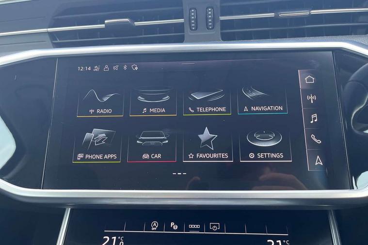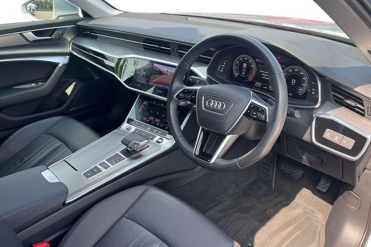 7" high resolution colour driver information display system, Audi connect safety and service (e-call), Audi connect with Amazon Alexa Integration, Audi drive select, Audi parking system plus - acoustic and visual park assist system for front and rear, Automatic start/stop system with coasting functionality, Bluetooth interface, Cruise control + speed limiter, Electric boot lid release, Lane departure warning system, Progressive steering, Rear view camera, Service interval indicator, Smartphone interface includes wireless Apple carplay/Android Auto, Voice control system, Standard suspension, Audi front music interface, Audi sound system, Auxiliary input socket, DAB Digital radio, USB connection, All weather LED headlights, Body colour bumpers, Body coloured door mirrors, Daytime running lights, Electric front/rear windows, Frameless auto dimming interior rear view mirror, Front intermittent wipers, Heat insulating darkened glass in side and rear windows, Heat insulating glass in windshield, LED rear lights, LED third brake light, Matt black rear diffuser with diffuser strip and tailpipes in chrome, Matt black side air intake grille with inlay in matt aluminium, Radiator grille in titanium black matt, single frame in chrome and horizontal struts in matt aluminium silver, Rain and light sensors, Rear boot, Rear side wing doors, 2 zone deluxe electronic climate control, 3 spoke high multi-function leather steering wheel with shift paddles, 4 way electric lumbar support for driver and front passenger, 40/20/40 split folding 3 rear seat bench in 3 parts with rear centre armrest, Black steering wheel insert, Centre armrest matches seat colour, Door sill trims with aluminium inlay, Front centre armrest, Front head restraints, Heated front seats, Height/reach adjust steering wheel, Illuminated sun visors with vanity mirrors, ISOFIX child seat mounting and Top Tether with front passenger airbag deactivation, Leather gear knob, Lunar silver cloth headlining, Rear headrests, Single front passenger seat, LED Interior Ambient Lighting Pack - A6, Non smoking pack - A6, Technology pack - A6, 3 point seatbelts on all seats, Airbags - Front side, front and rear including head, Audi pre-sense front, EBD - Electronic brakeforce distribution, Electromechanical parking brake, Electronic Stability Control (ESC) including ABS, ASR and EDL, Extended pedestrian protection measures, Manual child proof rear door locks, Seatbelt monitoring, Tyre pressure warning light, Warning triangle and first aid kit, Anti theft alarm with tow away protection, Anti-theft wheel bolts and wheel loosening detection, Immobiliser, Keyless Go, Remote central locking, Aluminium fragment inlay,