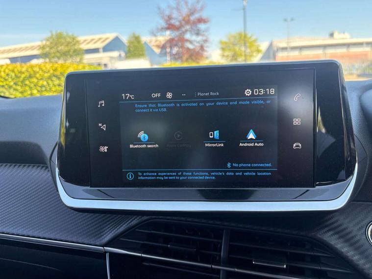 Bluetooth telephone facility, Driver attention warning, Emergency call service, Exterior temperature indicator with ice warning, Lane keep assist, Mirror screen with mirror link, apple carplay and android auto, Multi function trip computer, PEUGEOT i-Cockpit with 3.5" instrument panel display, PEUGEOT i-Cockpit with compact steering wheel, Programmable cruise control and speed limiter, Push button start, Rear parking sensors, Smart phone docking station, Speed limit recognition and recommendation, Start/stop system, 1x USB socket in front, 6 speakers radio with mp3 compatible, DAB Digital radio, Voice recognition for radio, navigation and telephony features, 2 X Rear number plate lights, Automatic hazard light activation upon heavy brake application, Automatic lights, Automatic windscreen wipers, Body coloured exterior door handles, Dark tinted rear side and tailgate windows, Diamond black rear spoiler (roof), Eco LED headlights, Electric front windows + one touch + anti-pinch, Electric rear windows with one touch/anti-pinch, Electrically adjustable, heated and power folding door mirrors, Electrochrome rear view mirror, Follow me home headlights, Gloss black rear cluster connecting strip, Headlights left on audible warning, LED daytime running lights with distinctive tooth design, LED third brake light, Model designation badges front and rear, Nera black door mirror shells, Radiator grille chrome chequered, Rear reversing lights, Rear side wing doors, Rear windscreen wiper triggered automatically in reverse gear, Roof mounted aerial, Roof spoiler, Single exhaust tailpipe, Tailgate with heated rear windscreen and wiper blade, Variable front intermittent wipers, 1/3 to 2/3 split folding rear seats, 12V socket, 3 seat bench in 2nd row, Automatic air conditioning, Driver and front passenger comfort seats, Driver and front passenger seat manual adjustment in longitudinal and back rest angle, Driver seat mechanical height adjustment, Electric power steering with reach and rake adjustable steering column, Front interior light with 2 reading spotlights, Gear shift indicator, Leather steering wheel, Low centre console, Map pockets on the backs of the front seats, Piano keys gloss black plated toggle switches to access main functions of the vehicle, Rear centre headrest, Roof lining - light grey, Seatbelt unfastened on the move audible and visual alert for front and rear seats, Single front passenger seat, Tri material cloth upholstery, 2x Isofix child seat fitting on outer rear seats, 3 rear 3 point seatbelts, ABS (Anti-lock Braking System) with EBD (Electronic Brakeforce Distribution) and EBA (Emergency Braking Assistance), Adaptive driver and front passenger airbags with passenger airbag deactivation function, Child locking functionality on rear doors, Driver/front passenger side airbags, ESP with Hill Assist, Front and rear curtain airbags, Front and rear disc brakes, Front optimised safety headrests and 3 x rear retractable headrests with height adjustable, Front three point retractable seatbelts with force limiters, Manual parking brake, Pedestrians active safety brake, Tyre pressure sensor, Acoustic vehicle alert system (AVAS), Automatic door locking when moving off, Deadlock, Electronic code immobiliser, Remote central locking, Thatcham cat. 1 alarm with anti lift sensor, Carbon effect Dashboard, front and rear door panel finish, 16" Soho diamond cut alloy wheels,