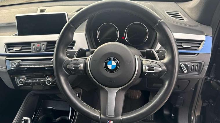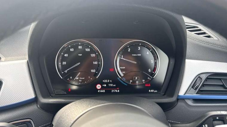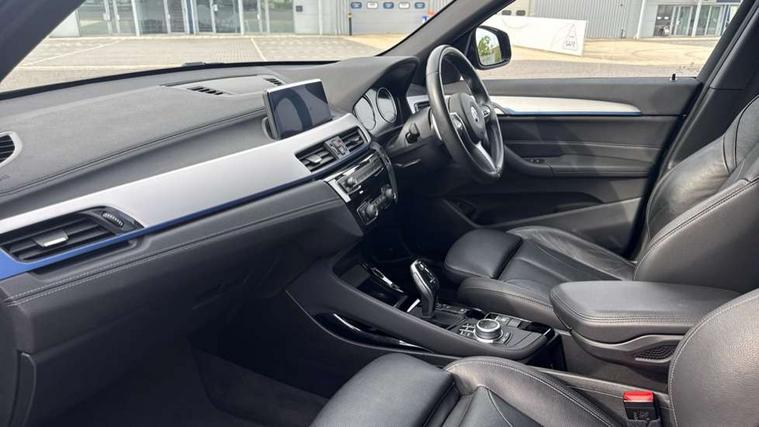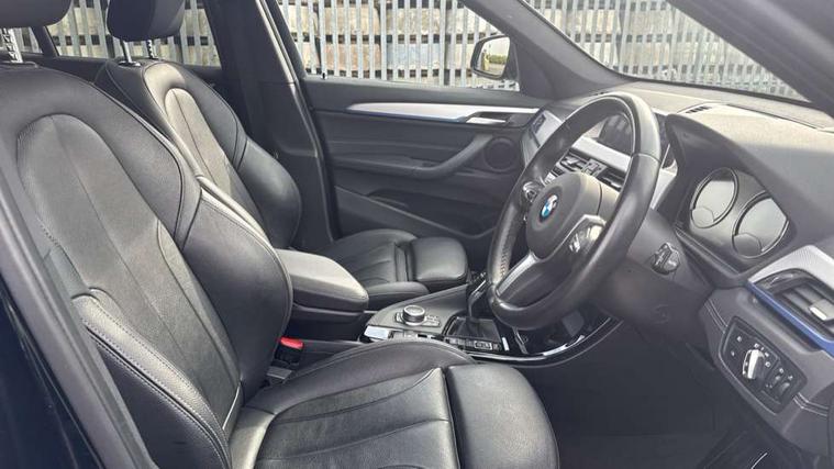 Ambient temperature display, Apple CarPlay, Arrow pointers, north up, direction of travel and perspective map displays, Attentiveness assist, Automatic tailgate opening, BMW ConnectedDrive, BMW Navigation system with 8.8" monitor and 800X480 pixel resolution, BMW Online services, BMW remote services, BMW Teleservices, Brake pad wear indicator in front and rear, Characteristic map controlled oil pump system, Electro hydraulically controlled multi plate clutch in rear axle, Energy efficient operating strategy, Front/rear park distance control (PDC), Instrument cluster with Black optic display featuring superimposed dials and 5.7" colour display, Instrument cluster with speedometer with miles per hour read out, tachometer and fuel gauge, Integrated hard drive with map data updates via USB interface, Lights on warning by audio warning signal when ignition is switched off, On board computer, Operation by iDrive with direct selection buttons and 8 programmable buttons, Optimum shift indicator, Outside temperature gauge, Park assist system, Personal Profile - automatic lock when driving away selectable, Real time traffic information, Rigidly mounted rear subframe - Multi link construction with separate spring / damper configuration and excellent driving characteristics, Service interval indicator, Servotronic PAS, Tyre puncture warning system, Variable and stepless distribution of drive torque between front and rear axle, 12V compressor with integrated sealant injection bottle and hose, Aluminium lightweight construction including crankcase, Anti-roll bars, Balancer shaft, Diesel particulate filter, DOHC valvetrain with two upper camshafts, Double VANOS, Drive performance control with ECO PRO comfort + sport mode, Eight speed sport automatic transmission, Electronic differential lock control (EDLC), High precision injection, Incorrect fuelling protection, Performance Control, Stop/start function, Transmission of power to rear axle via front axle differential and two-part cardan shaft, Twin tube gas filled shock absorbers with degressive characteristic curve, xDrive intelligent four wheel drive system, DAB Digital radio, Adjustable headlights, Aero curtain, Automatically dimming rear view mirror, BMW Icon design LED daytime driving lights, Body colour bumpers, Body colour door handles, Body colour door mirrors, Body colour wheel arches and side sills, Direction indicator side lights integrated exterior mirrors, Dynamic brake lights, Electric windows - front and rear, with open/close fingertip control, anti-trap facility and comfort closing, Electrically adjustable door mirrors with aspheric on driver side, convex on passenger side with integrated indicators, Exterior mirrors - electrically folding with anti-dazzle, Follow me home headlights, Front air guide finished in black silver, Front air inlets in matt black with silver finisher matt, Front and rear bumper system, Front bumper air intakes with dark shadow finisher, Green tinted heat protection glazing glass, Headlight beam throw control, Heated door mirrors, Heated windscreen washer jets, High level third brake light, Kidney grille with 14 chrome high gloss black vertical bars, LED direction indicator lights in headlight eyebrow, LED front fog lights, Lightweight engineering, M aerodynamic body styling, M logo designation in side chrome, Model designation, Rain sensor including auto headlights activation, Rear bumper with dark shadow and underbody protection in body colour, Rear fog lights, Rear window aerial, Rear window wash/wipe, Reversing light in rear light cluster, Roof mouldings in matt black, Shark fin antenna, Sill cover matt black with matt silver insert, Twin chrome exhaust tailpipes x2, Two eye face design on light, Visible VIN plate, Welcome lighting, 12v power point in centre console, 2 cup holders in front, 3 rear headrests, 40:20:40 split folding rear bench seat, Anthracite floor mats with M specific designation, Anthracite headlining, Boot light, Centre armrest in 20 degree part rear seat backrest, Child seat ISOFIX attachment for two outer rear seats and front passenger seat with anchorage points, Conditioned based service, Dakota leather upholstery with perforation and contrast stitching, Driver and front passenger heated seats, Driver/front passenger seat backrest back with luggage net, Driver/passenger sunvisors with ticket holders, Dual zone automatic air conditioning, Four grab handles integrated in roof linings, Front and rear side armrests integrated into door trim, Front centre armrest/sliding cover, Front centre interior light over interior mirror and rear centre automatic interior light when door is opened/ignition switched off or via remote key, Front door sill finishers with M designation, Front sports seats, Front/rear adjustable head restraints, Illuminated glovebox, Leather gearknob/gaiter/handbrake grip, Luggage area underfloor compartment, Luggage compartment access via recessed handle below tailgate, Luggage compartment lighting, Luggage compartment loading edge with stainless steel insert, M Sport nappa leather 3-spoke steering wheel, Manually adjustment steering wheel column, Multifunction steering wheel, Rear coded belt buckles, Single turbo charger, Standing free front adjustable armrest and fixed in different positions, Steering wheel gearshift paddles, Extended lights pack - X1, Extended storage package - X1, ABS/EBD, Audio/visual collision warning system, Automatic Stability Control (ASC), Battery safety cut-off, BMW emergency call, Brake drying, Brake energy regeneration, Braking readiness, Cornering brake control (CBC), Crash Sensor - activates hazard/interior lighting + unlocks doors, Driver/Front Passenger airbags, Driver/front passenger side airbags, Dynamic brake control, Dynamic stability control + (DSC+), Dynamic Traction Control - DTC, Electronic parking brake, Front and rear head airbags, Front passenger airbag deactivation, Front seatbelt force limiters, Front ventilated disc brakes, Hil